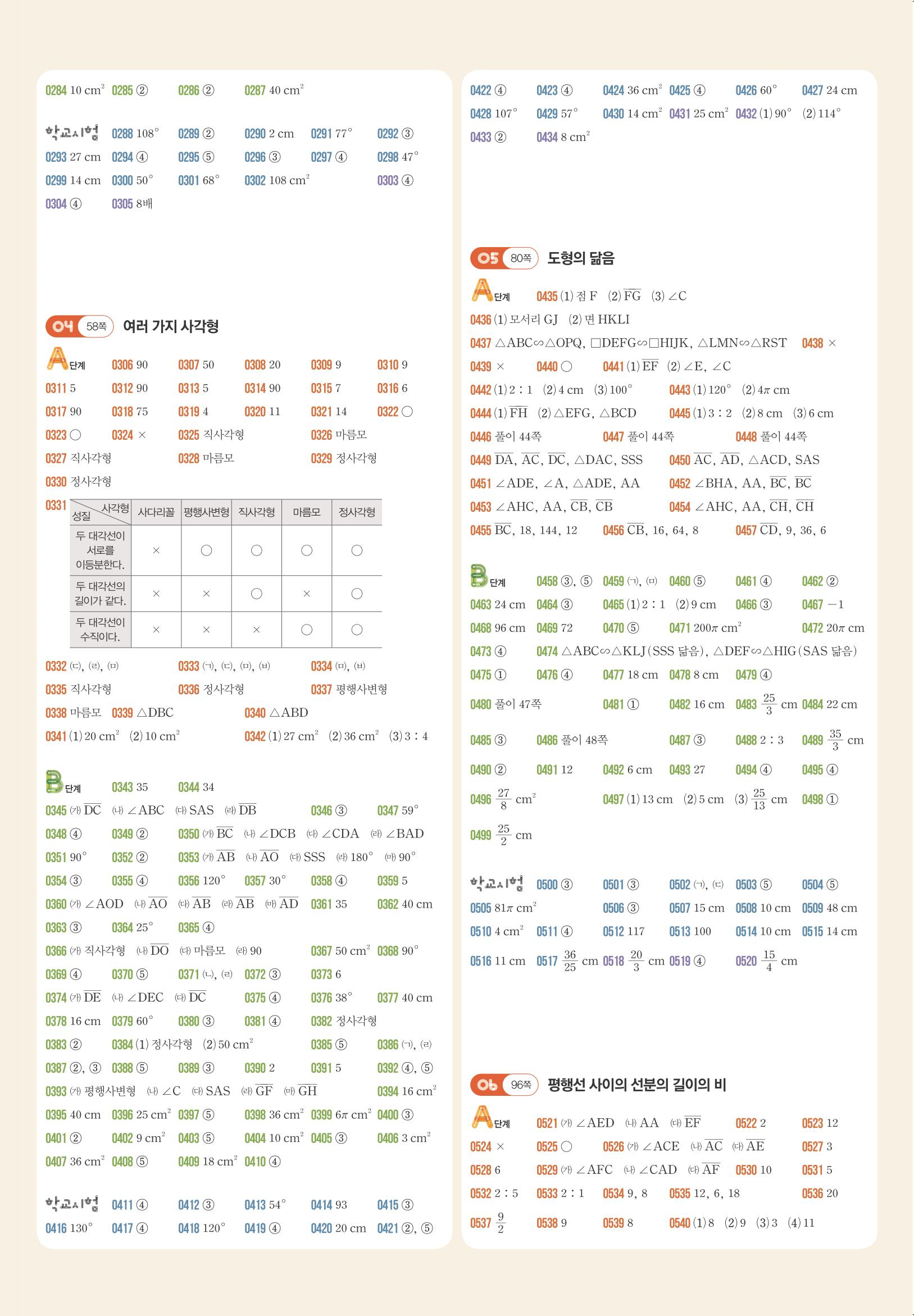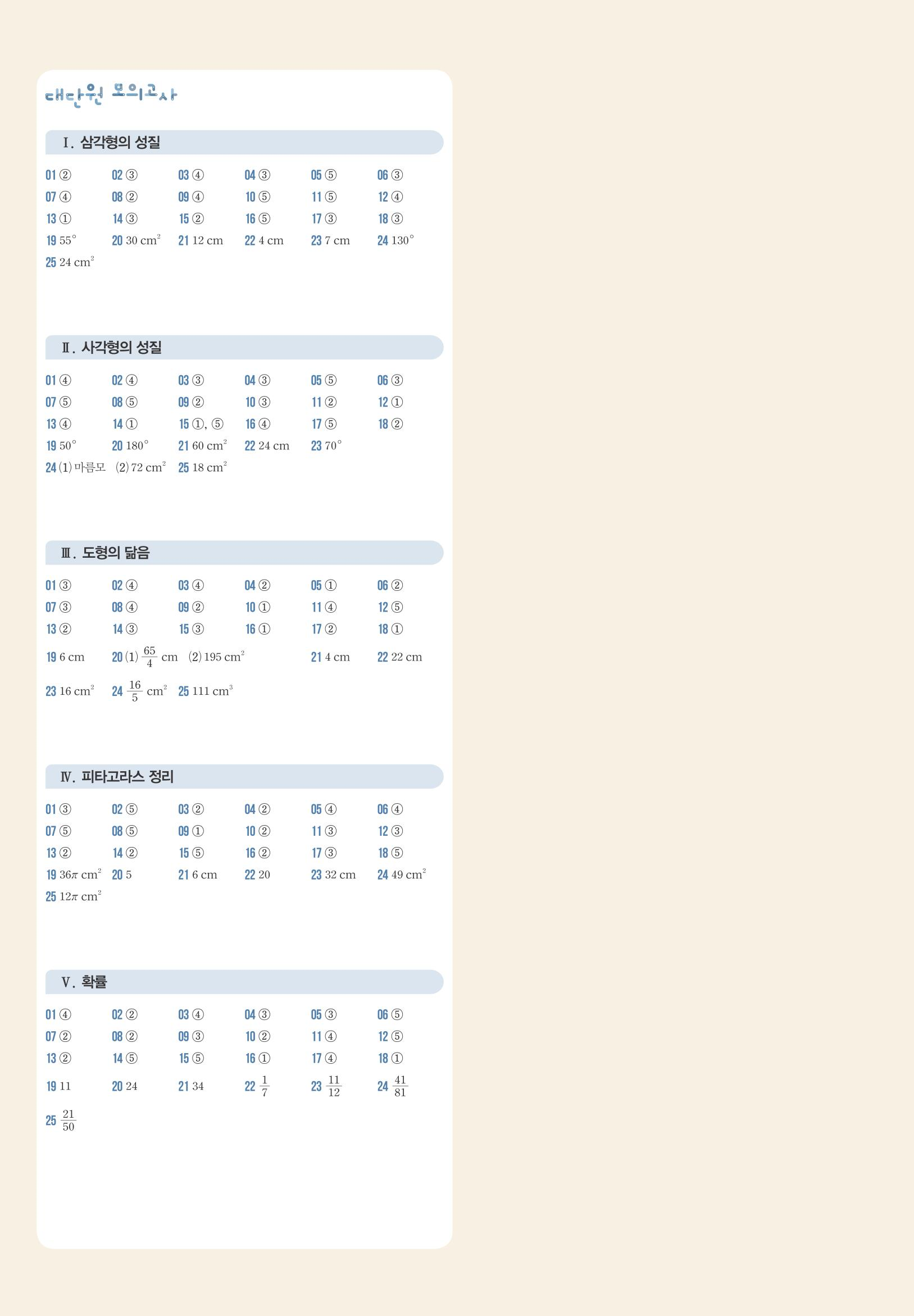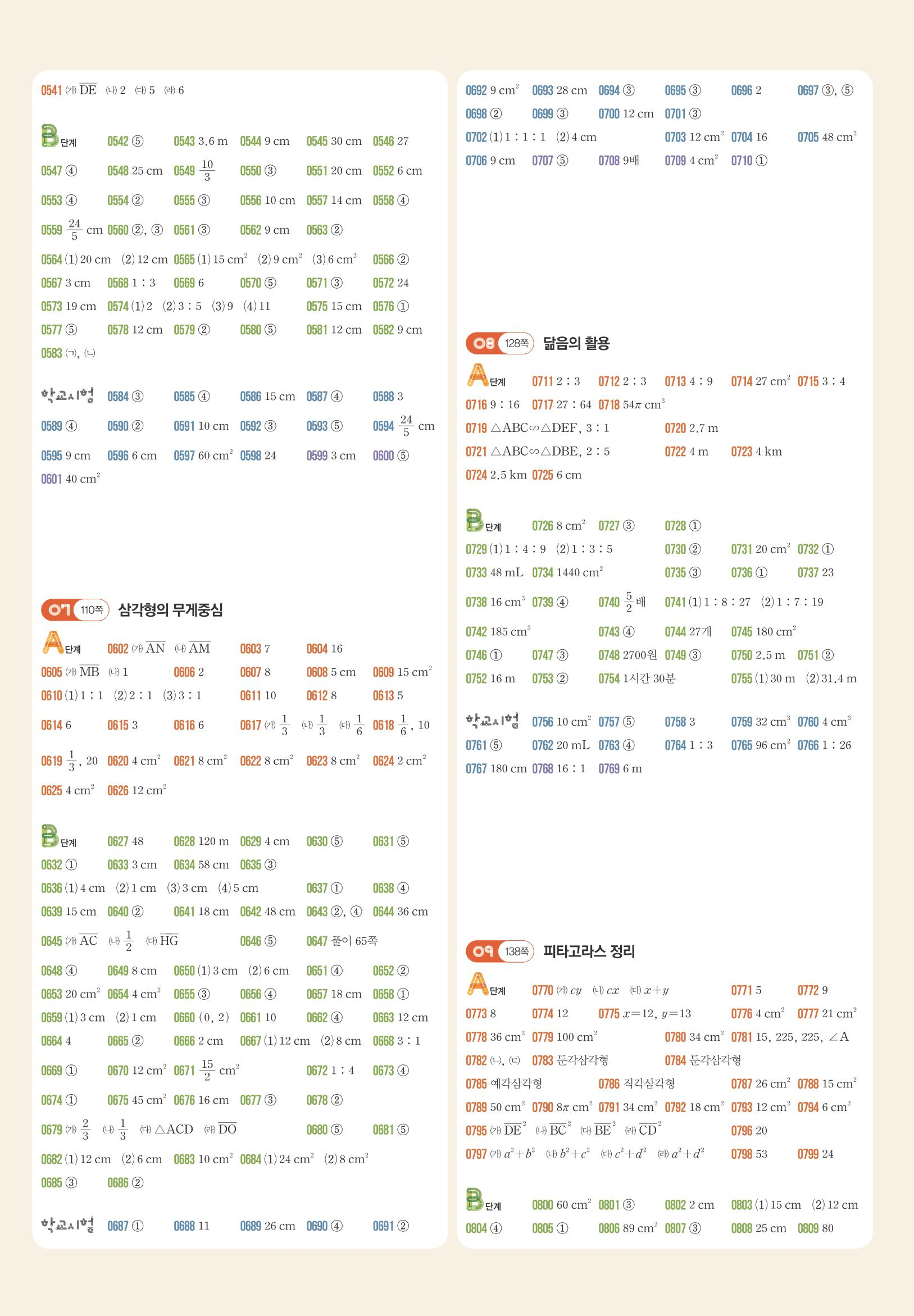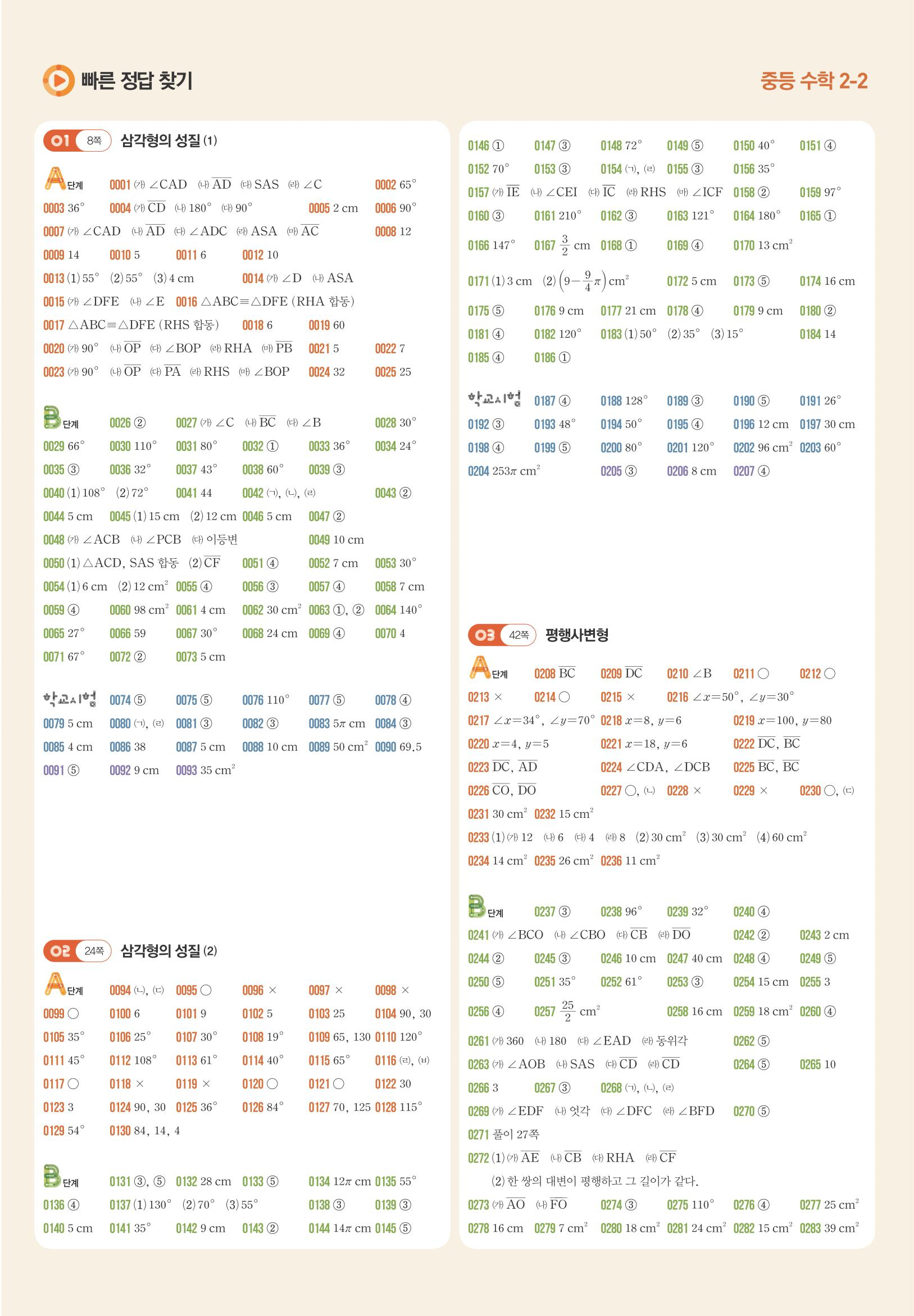 2025최신 개정 라이트쎈 중등 2-2 빠른답지 바로보기