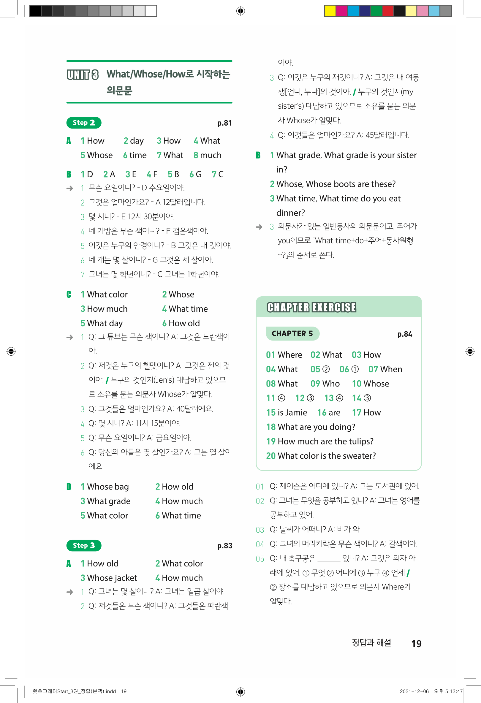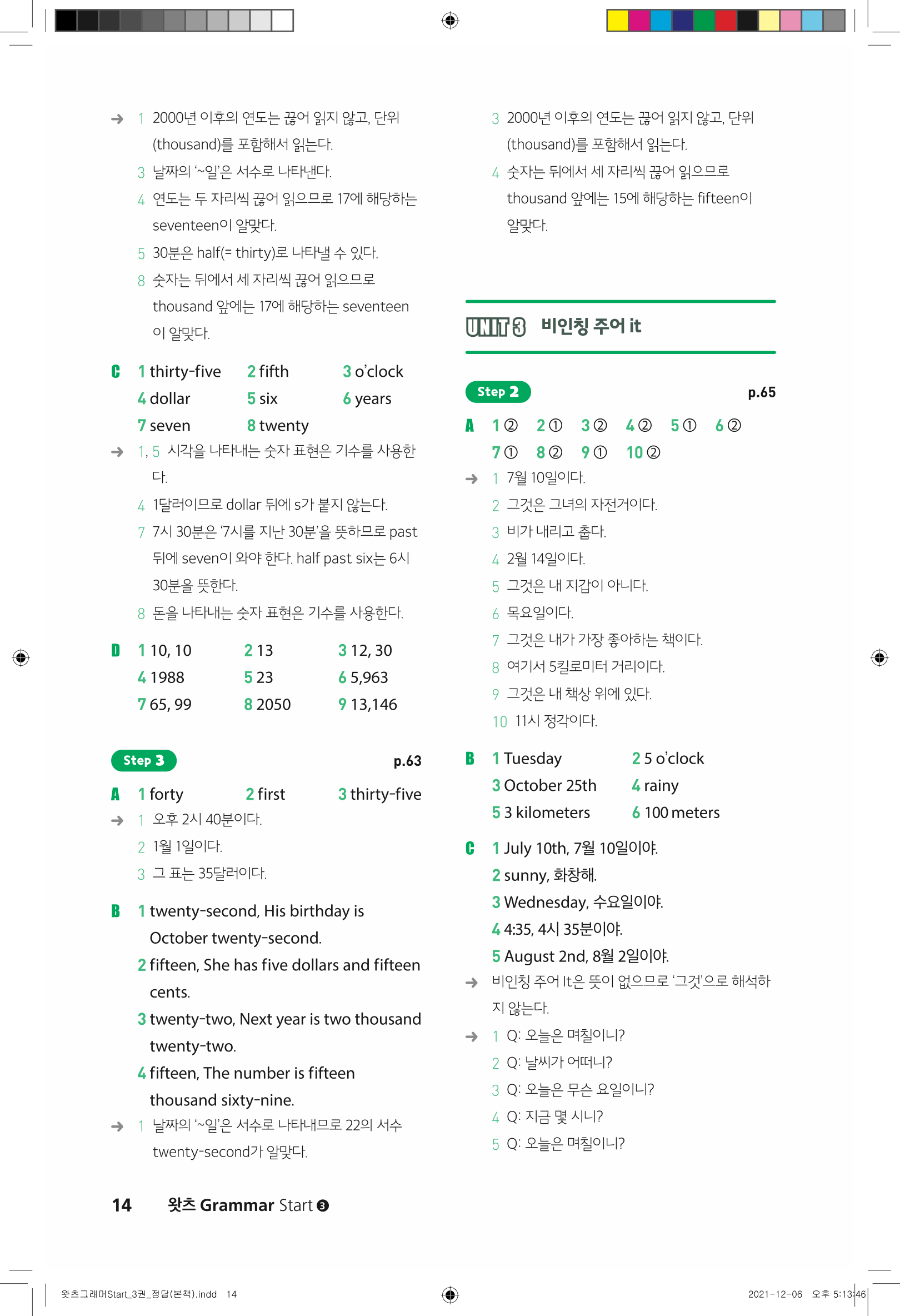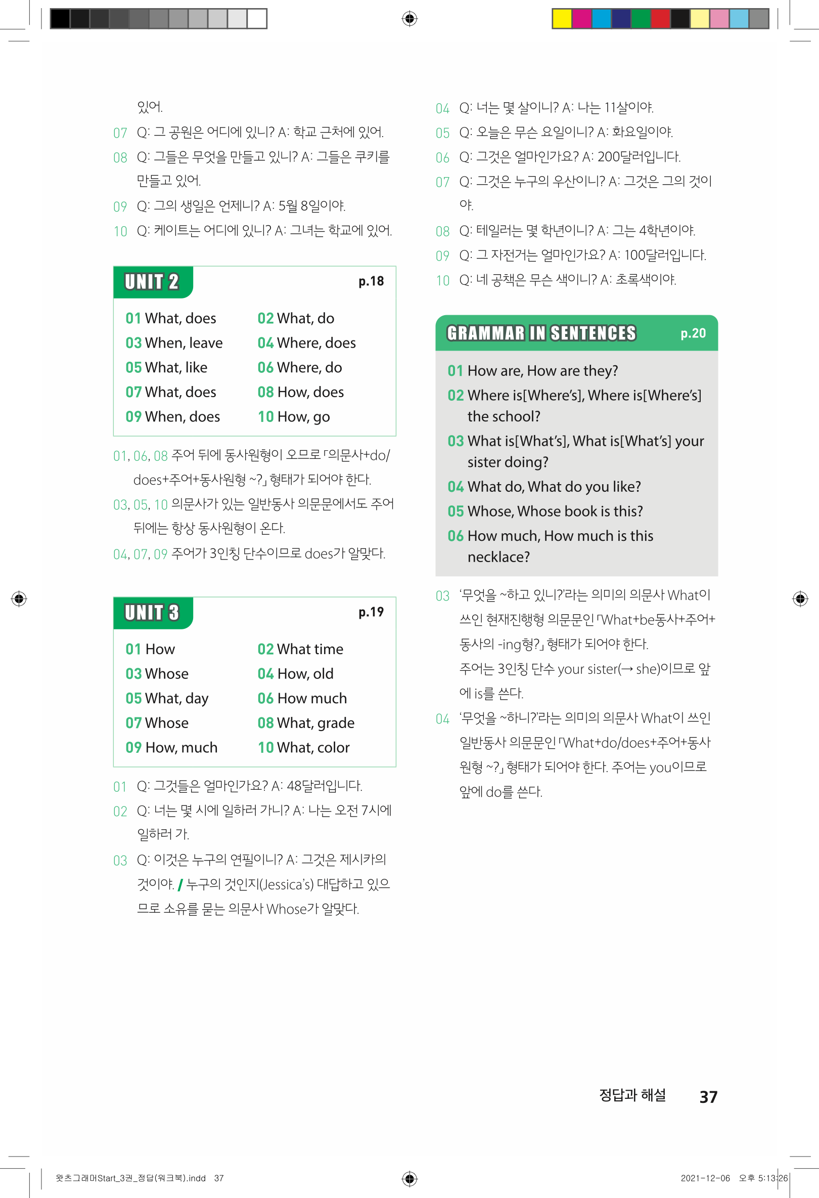 📥 쎄듀 왓츠그래머 스타트3 답지 해설 풀이 빠른답지 PDF 다운로드