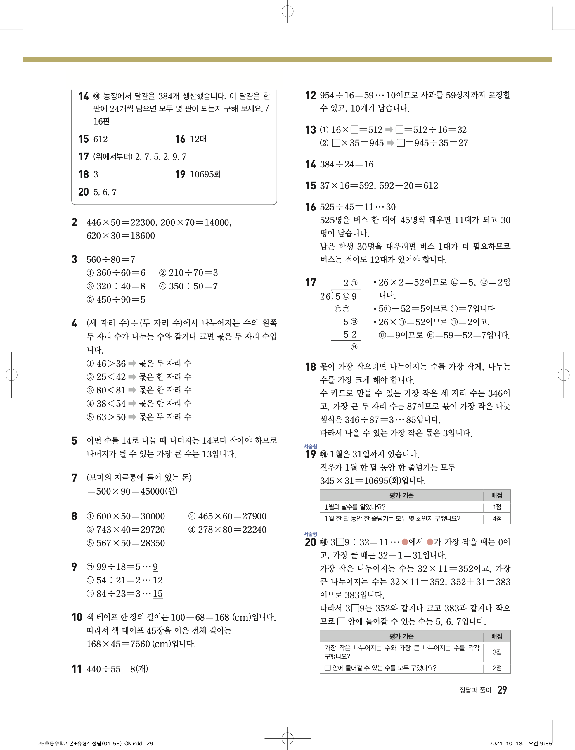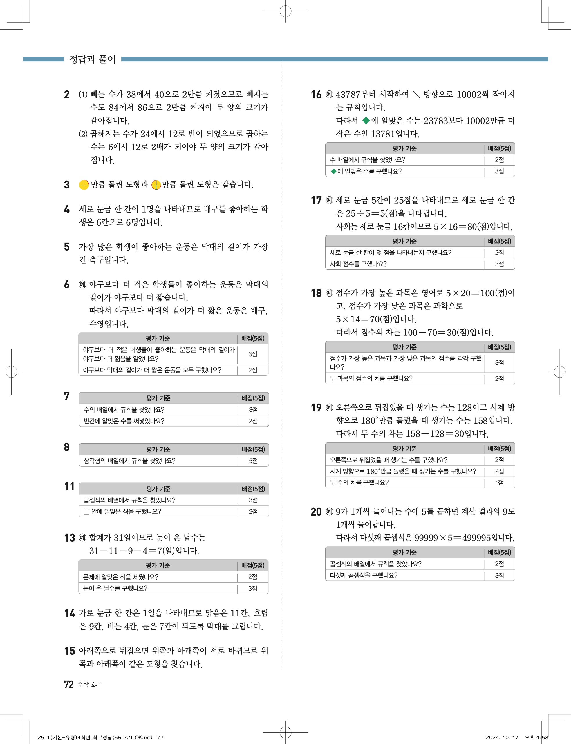 🔗 2025 최신개정 디딤돌 기본유형 4-1 빠른답지 PDF