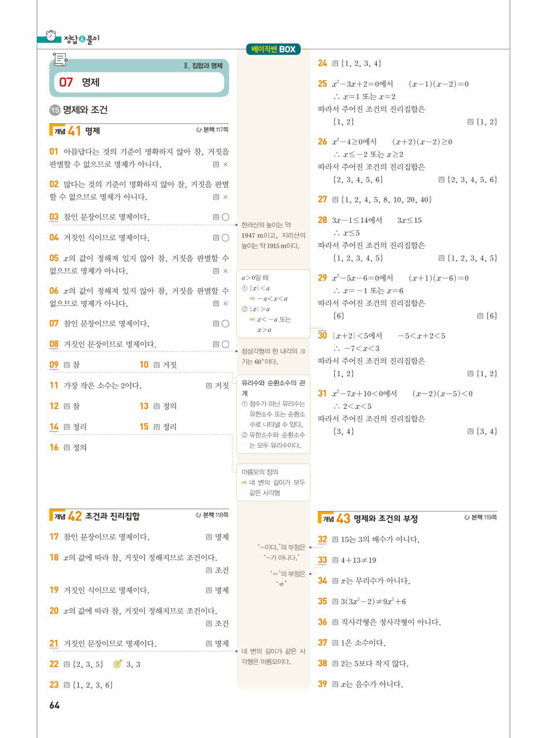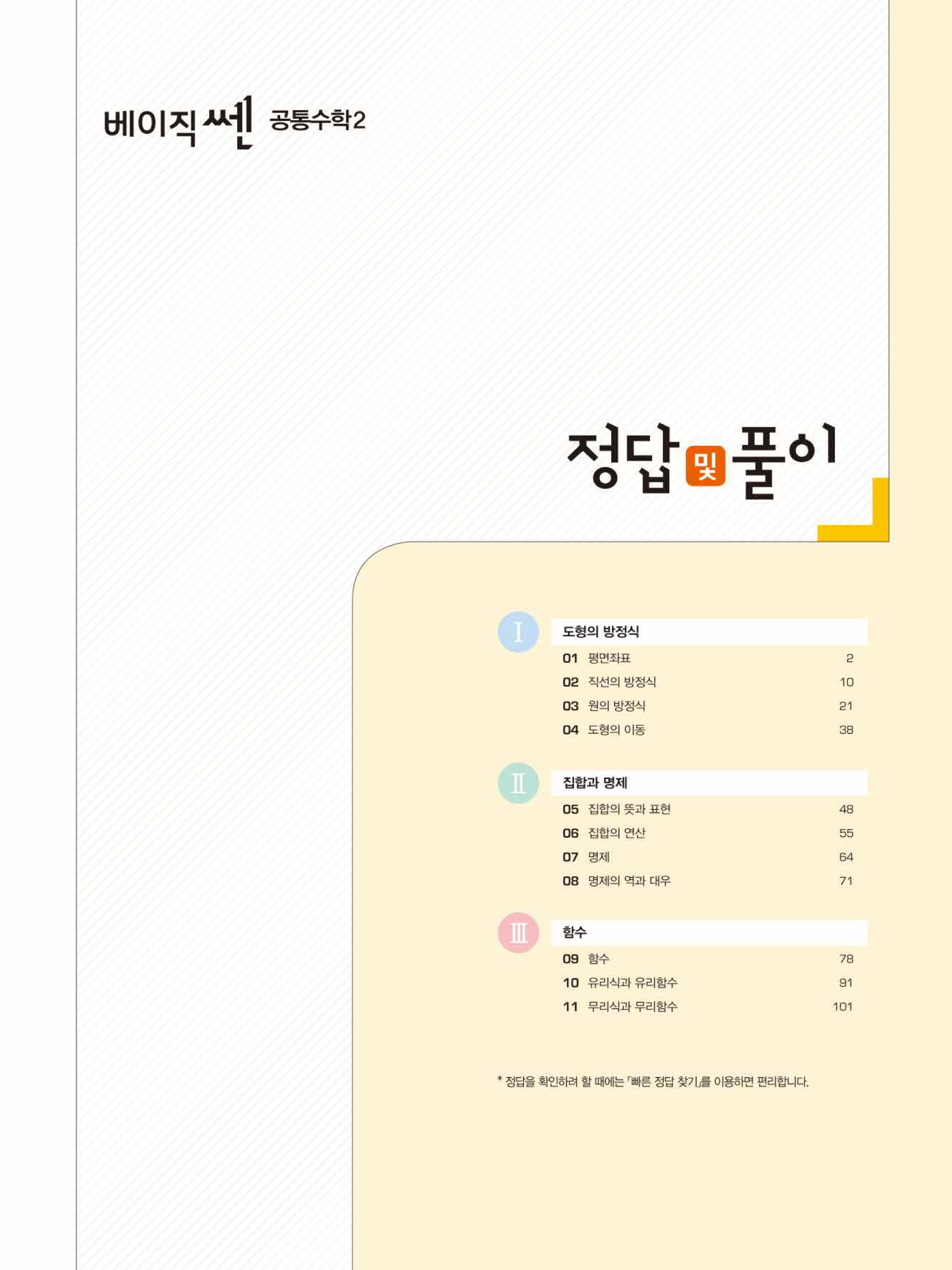 📌 베이직쎈 공통수학2 공수2 빠른답지 PDF 다운로드