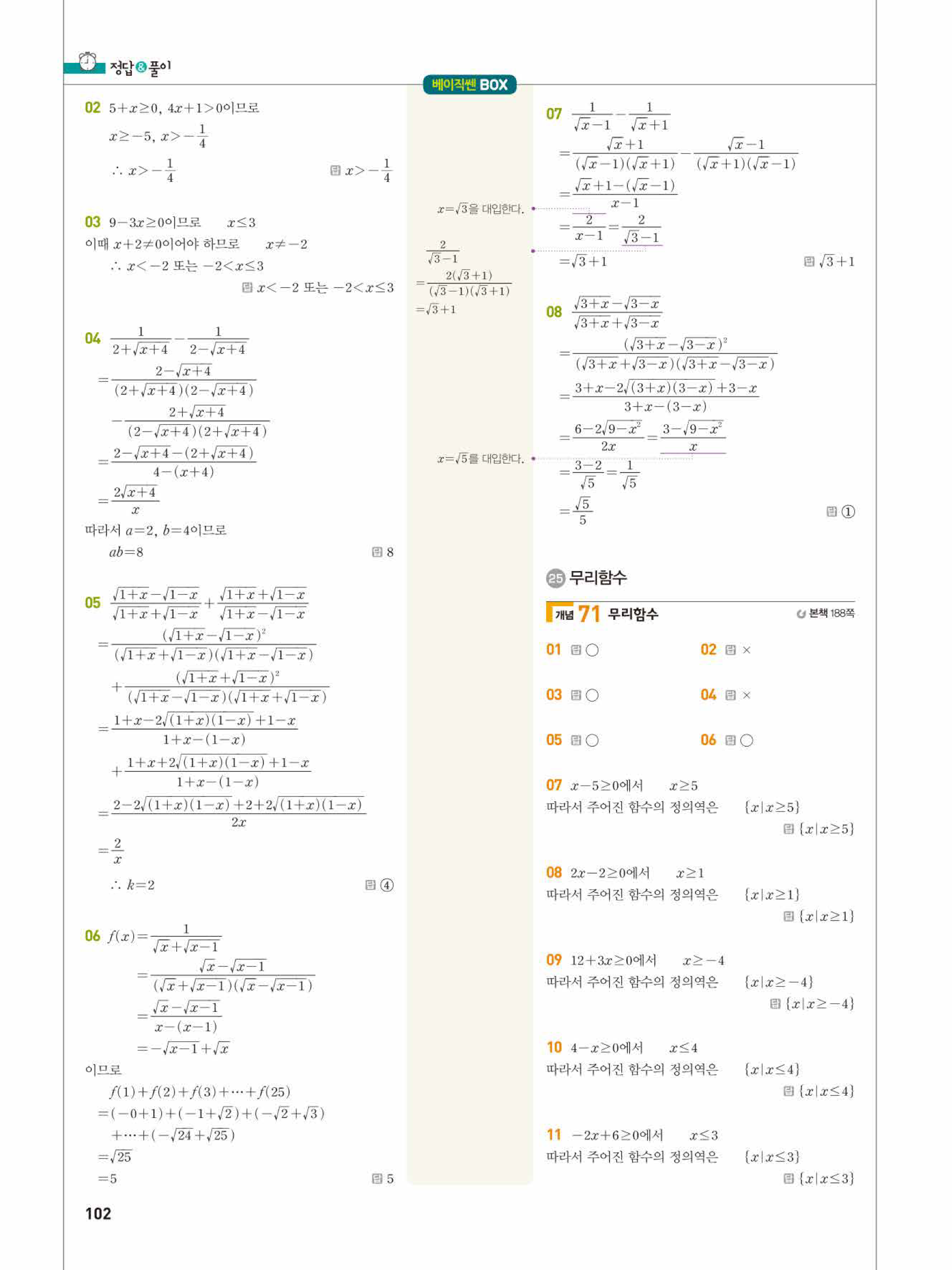🔗 2025 최신개정 베이직쎈 공통수학2 공수2 빠른답지 PDF