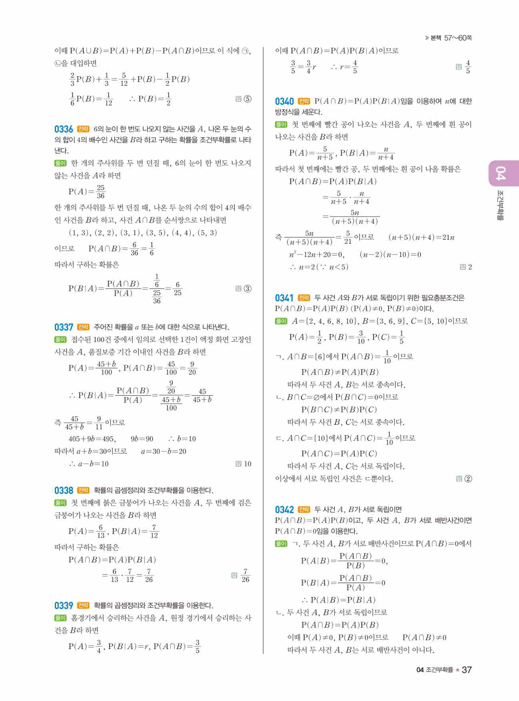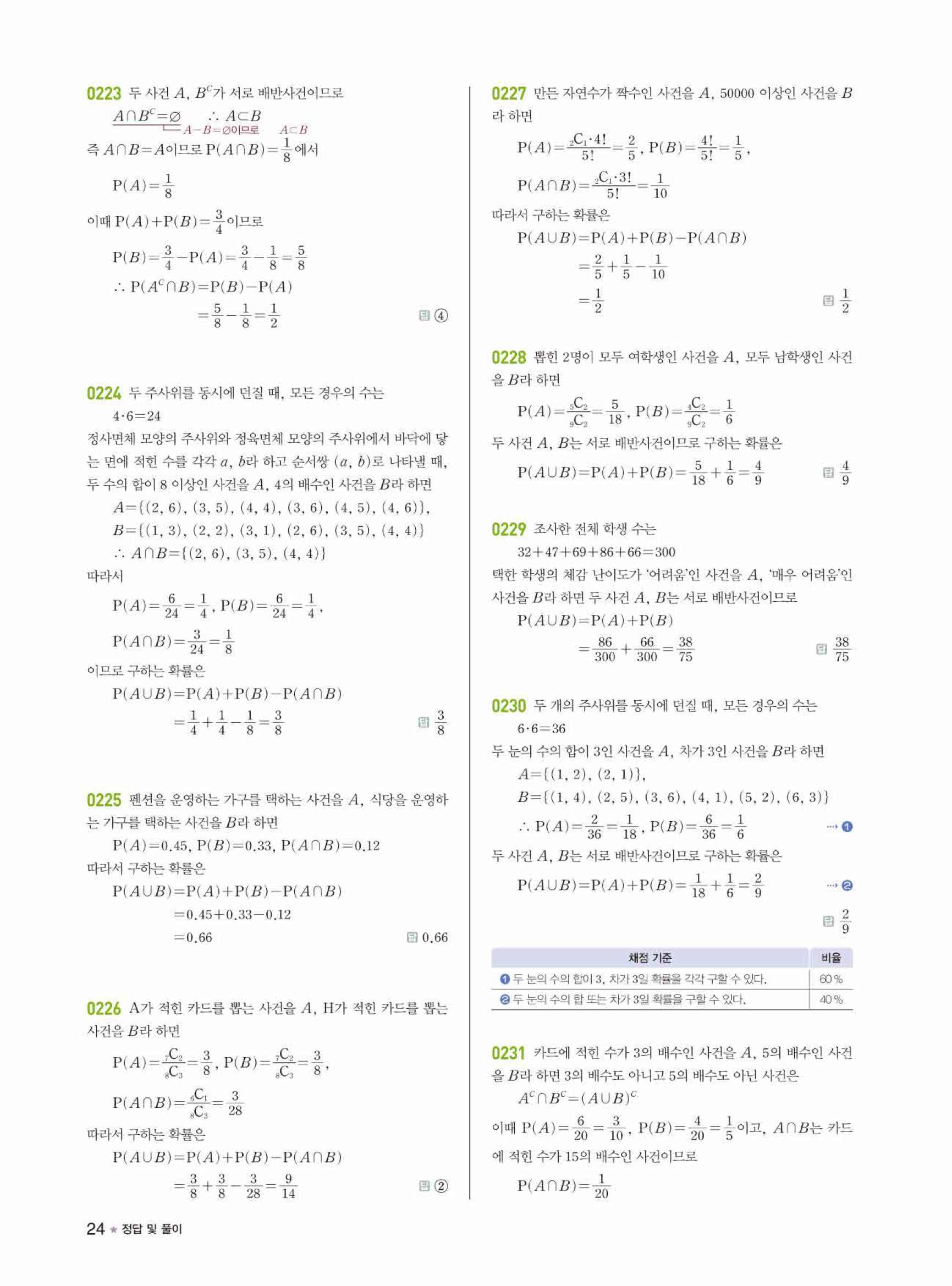 📥 라이트쎈 확률과통계 라쎈 확통 답지 해설 풀이 빠른답지 PDF 다운로드
