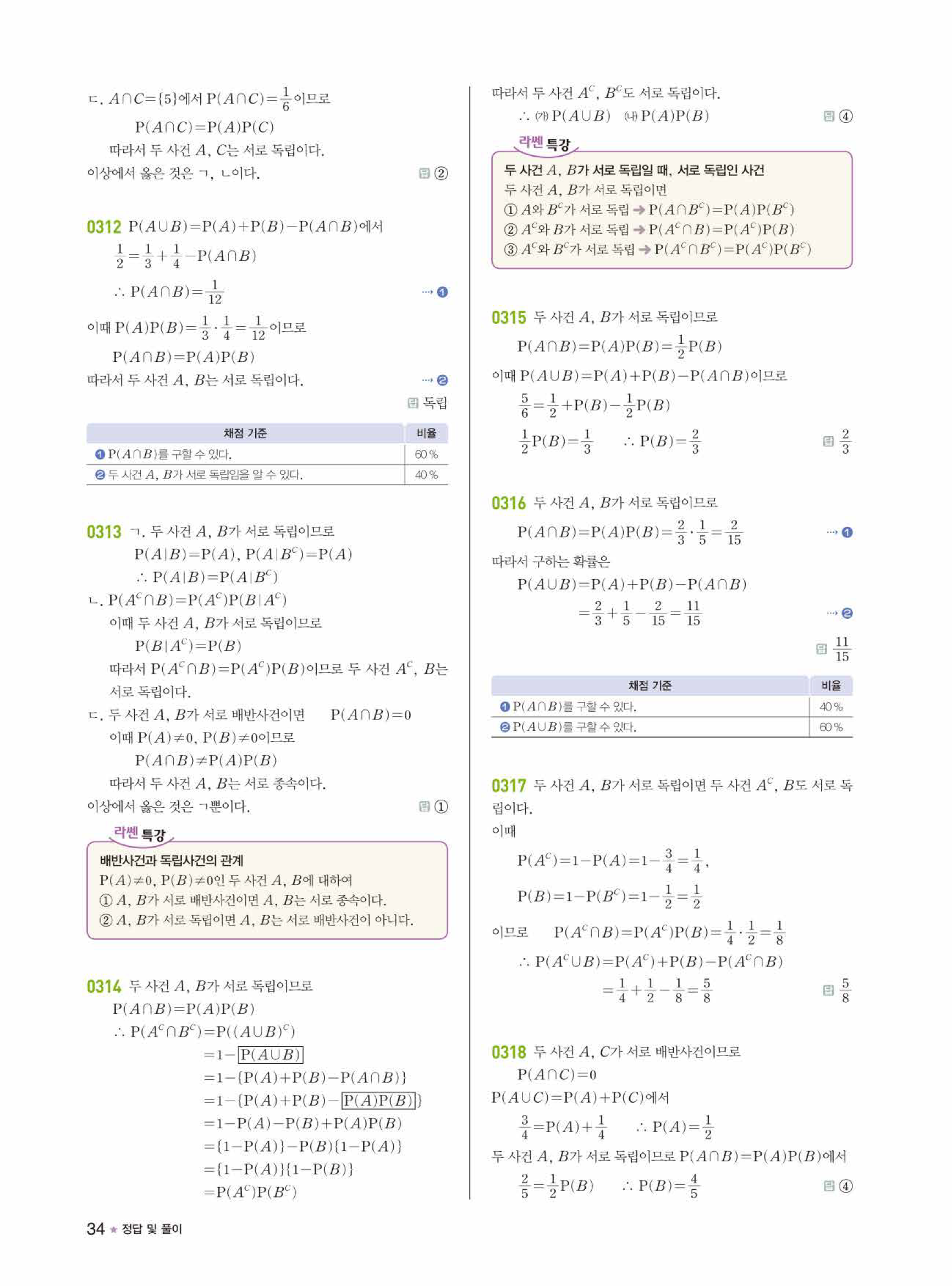 📌 라이트쎈 확률과통계 라쎈 확통 빠른답지 PDF 다운로드