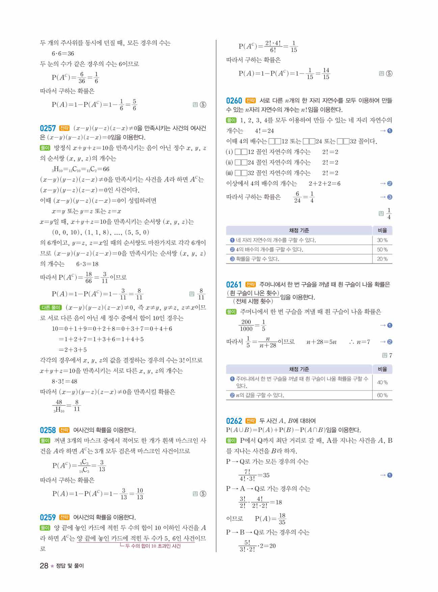 📌 라이트쎈 확률과통계 라쎈 확통 정답 및 풀이 PDF 다운로드