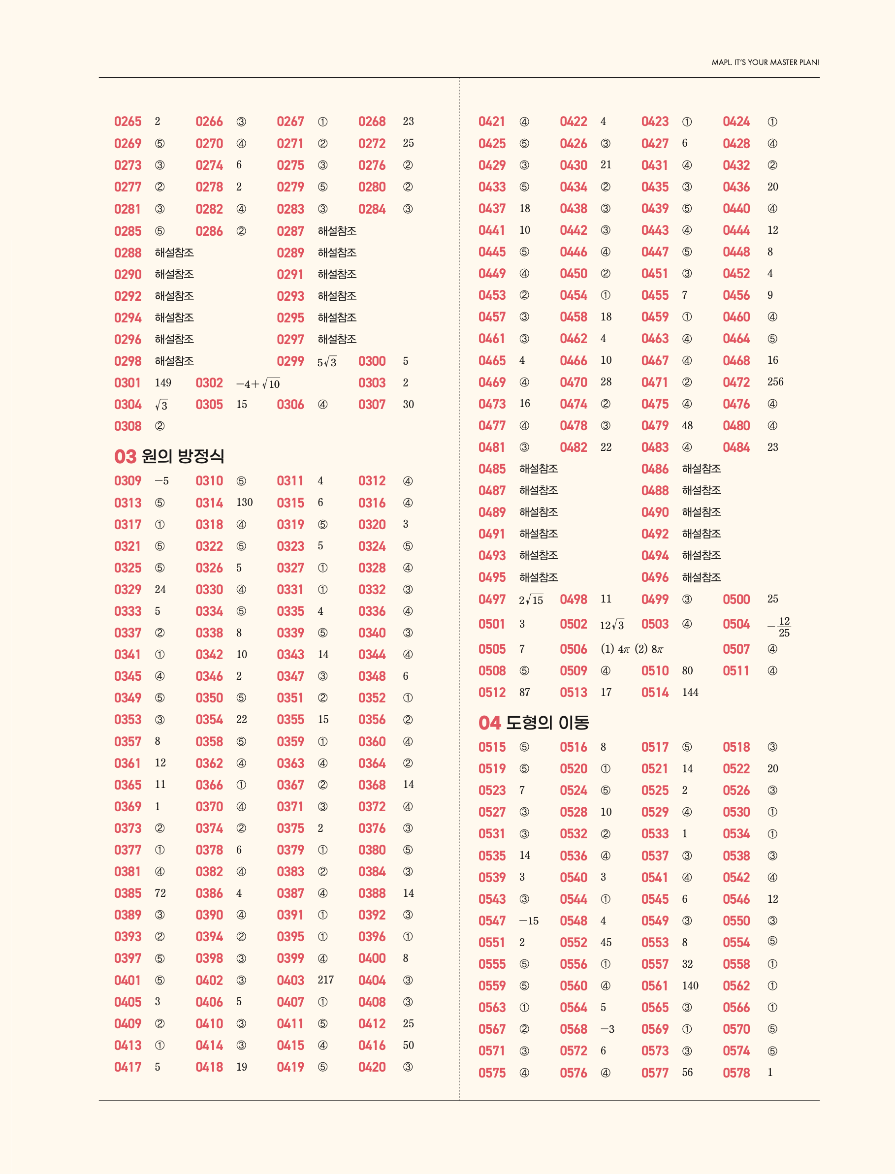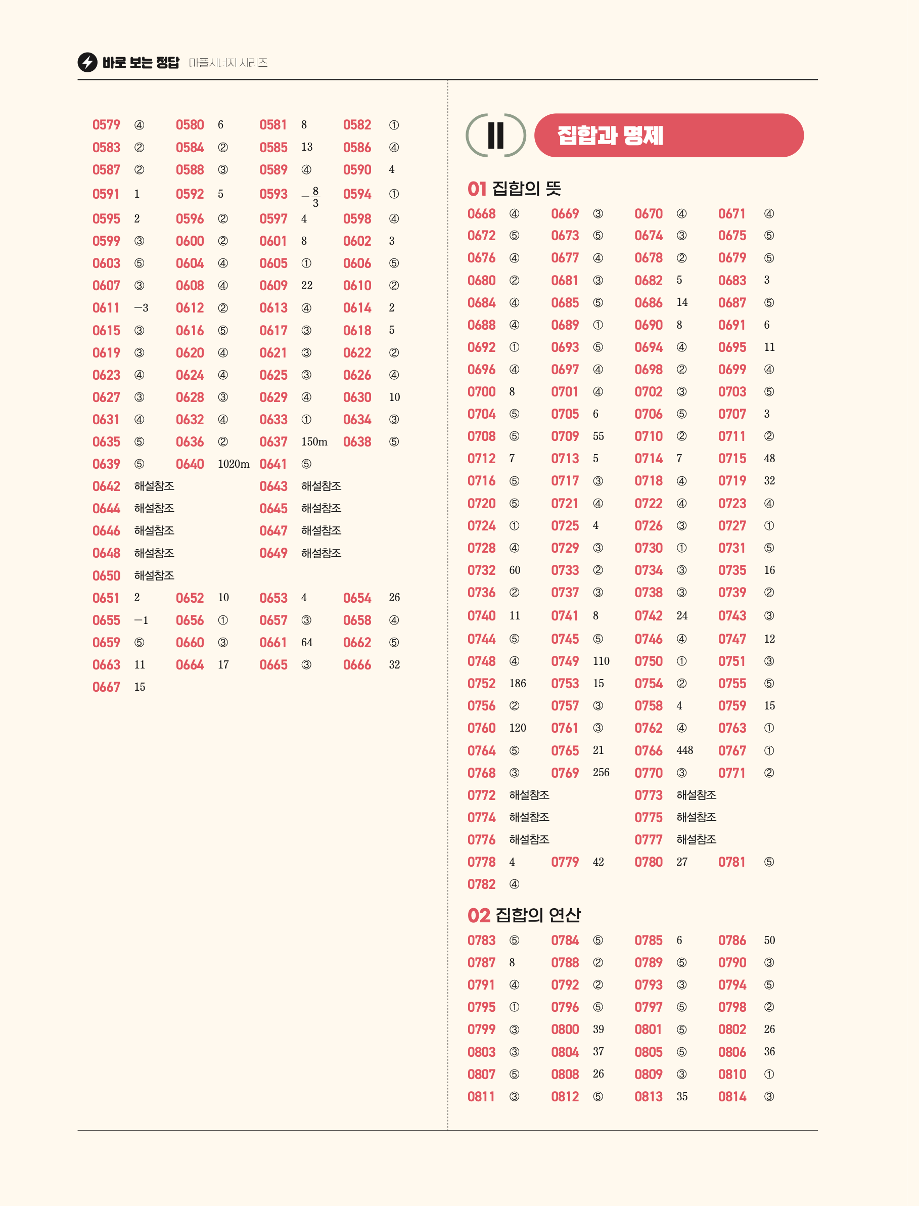 - 풀이 과정 비교 → 답지와 해설을 참고하여 자신의 풀이를 검토하고 보완하세요.