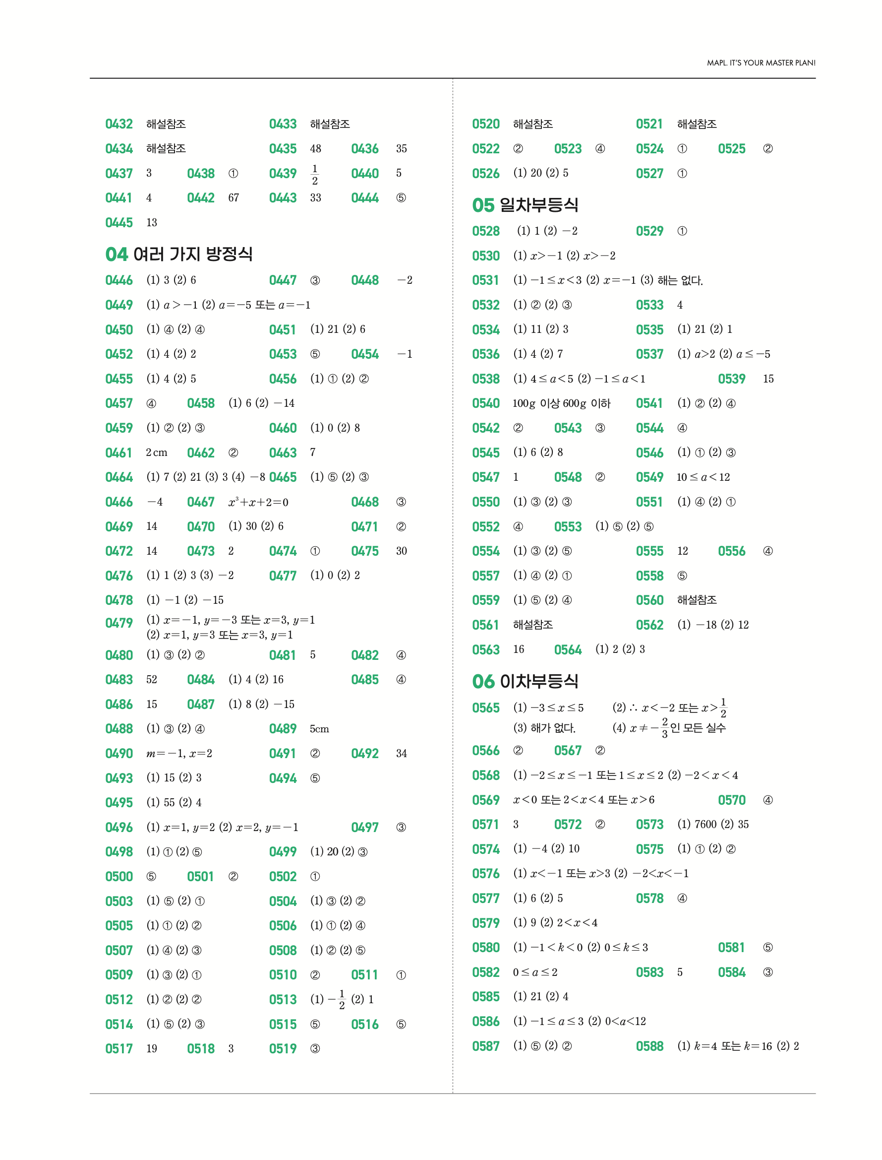 📌 마플 교과서 공통수학1 빠른답지 PDF 다운로드