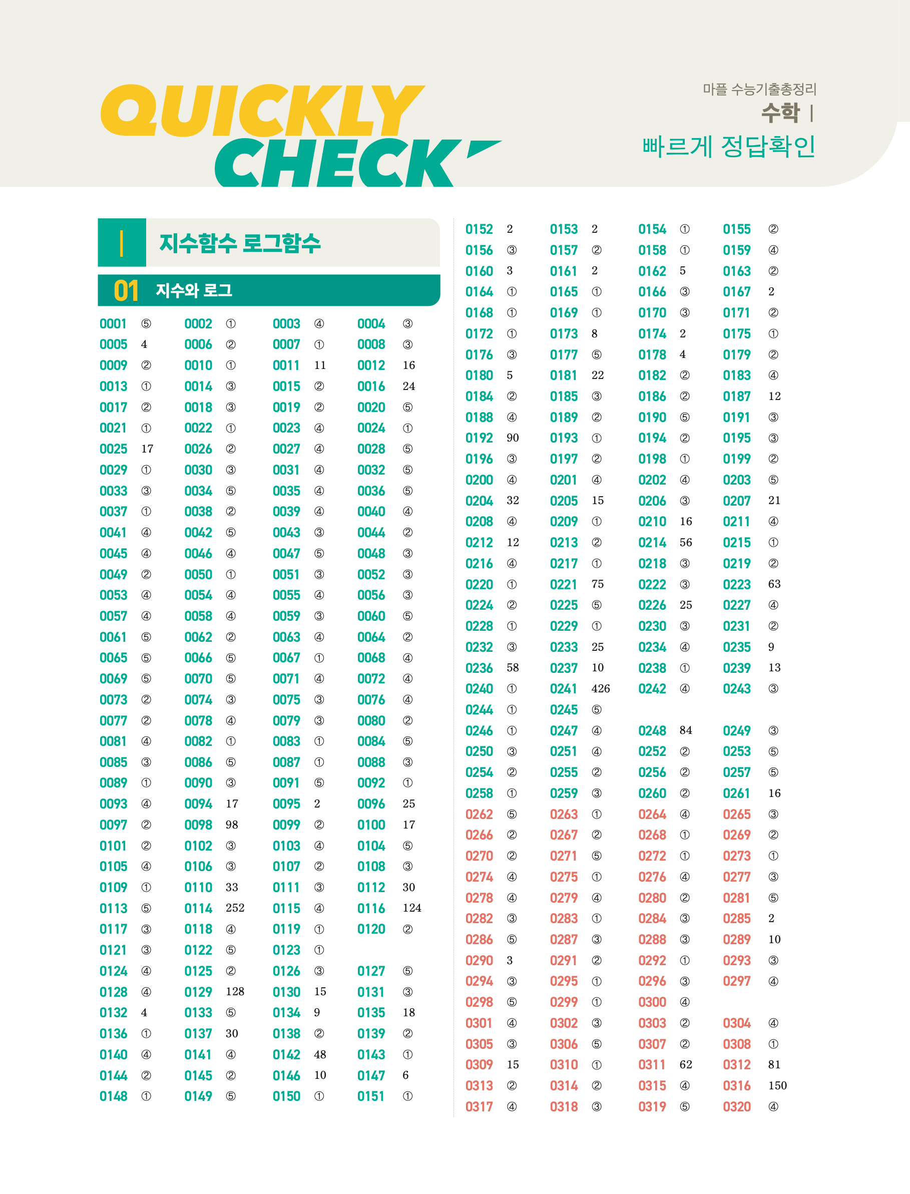 📌 마플 총정리 수학Ⅰ 빠른답지 PDF 다운로드