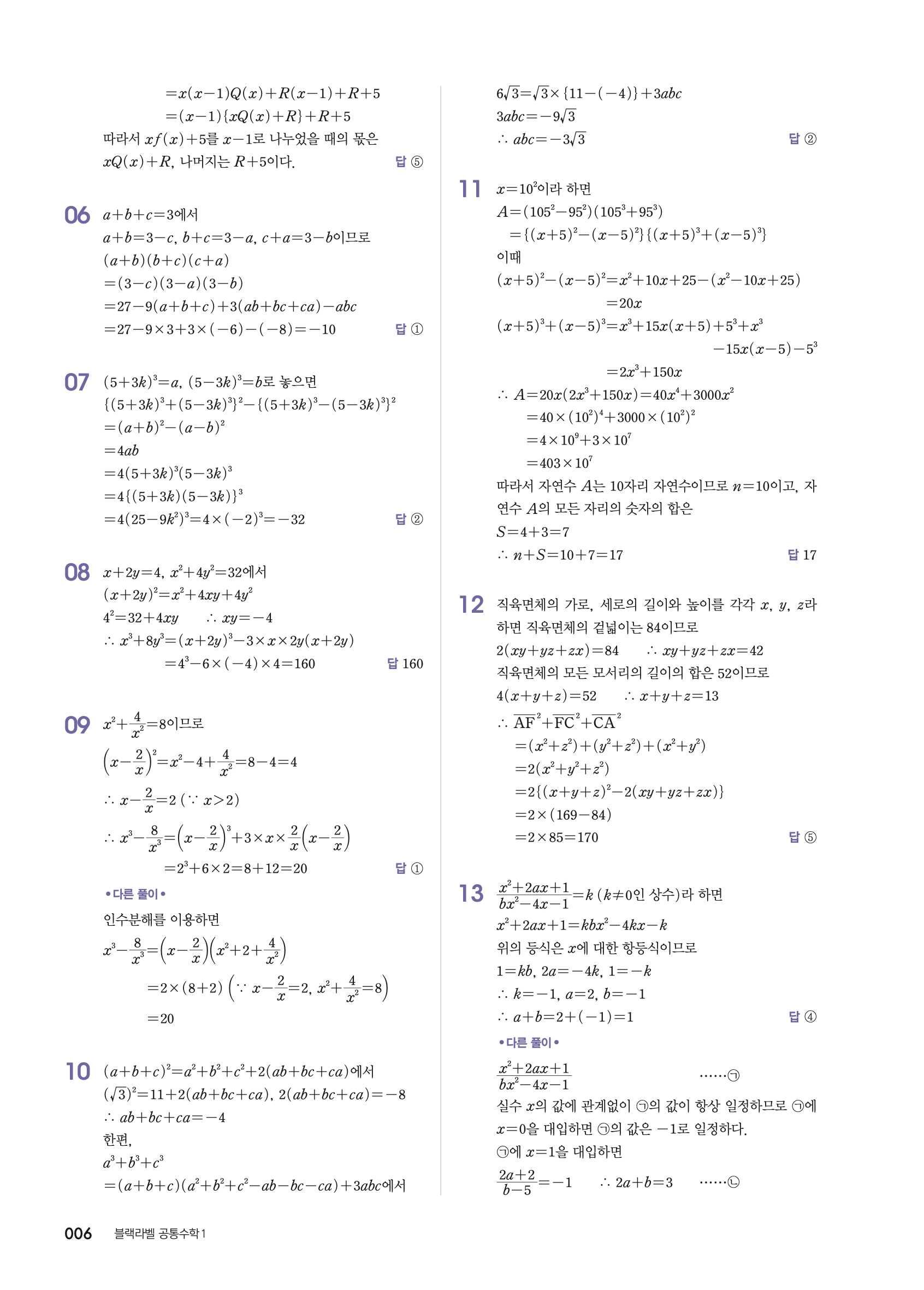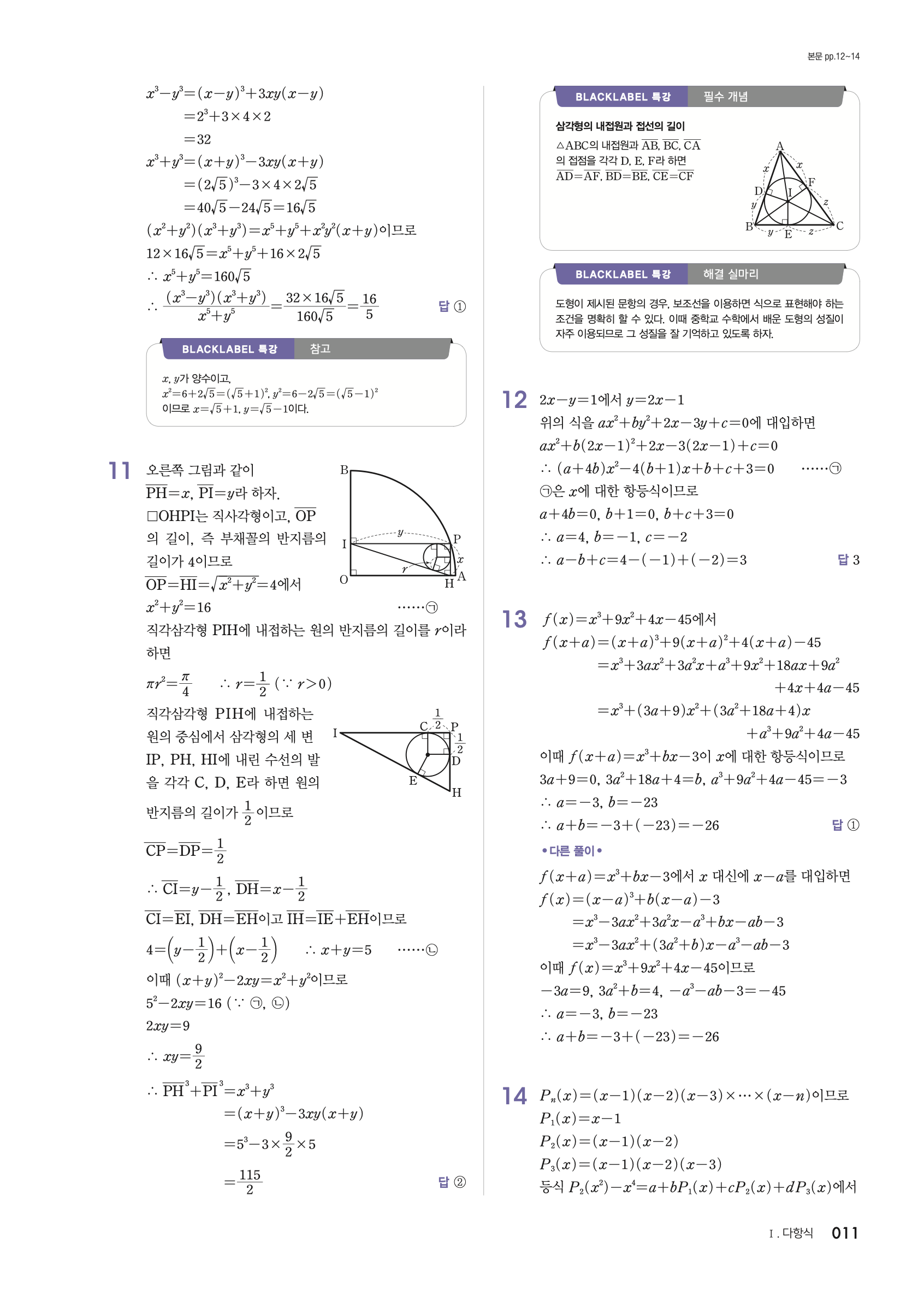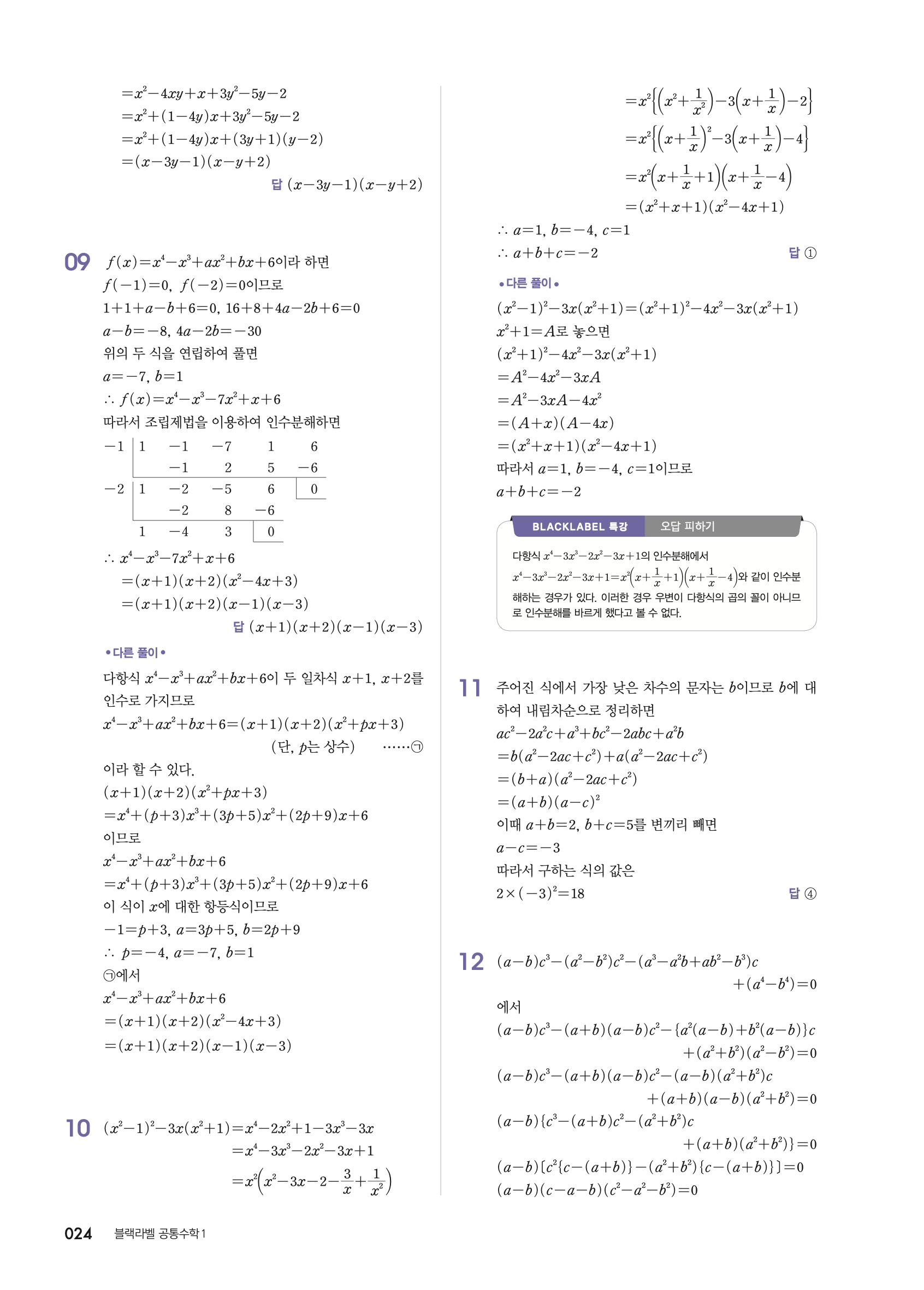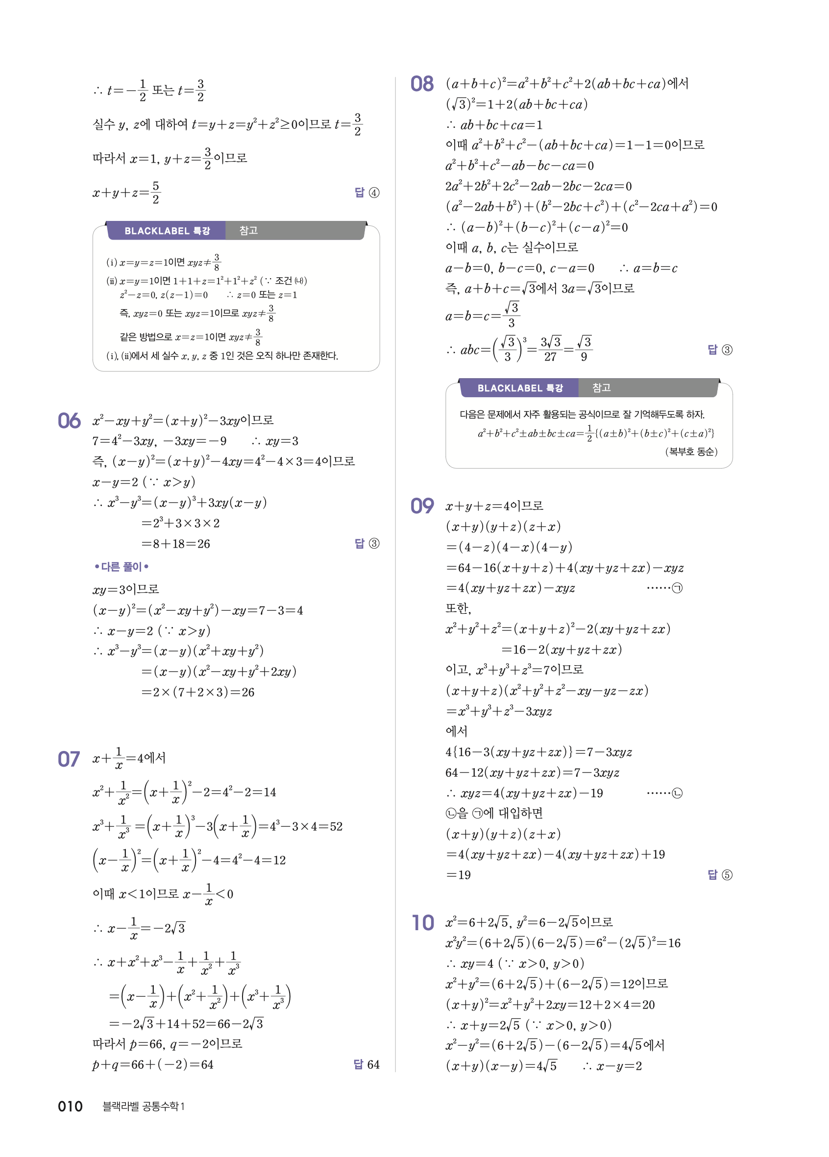 📌 블랙라벨 공통수학1 정답 및 답지 PDF 다운로드