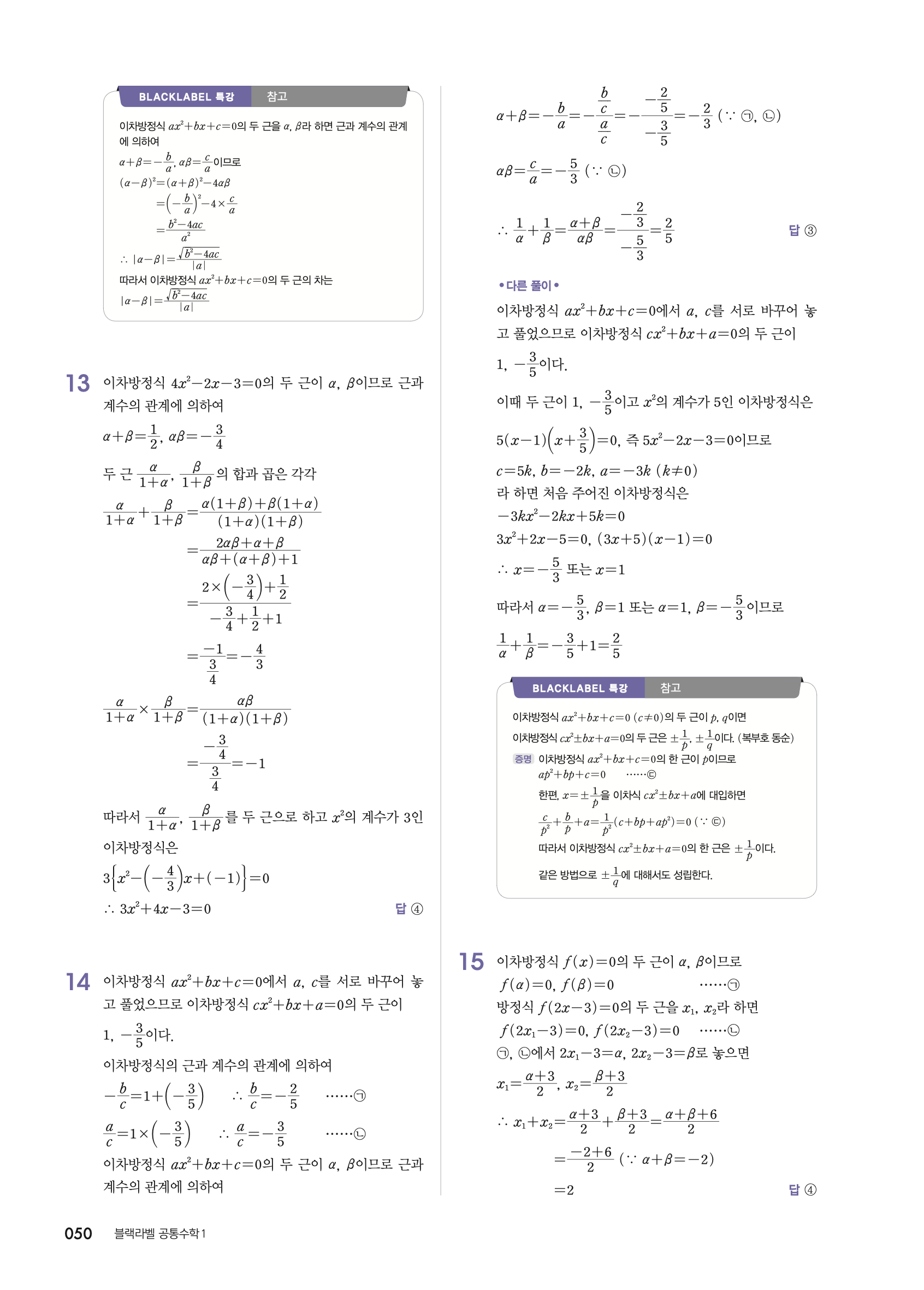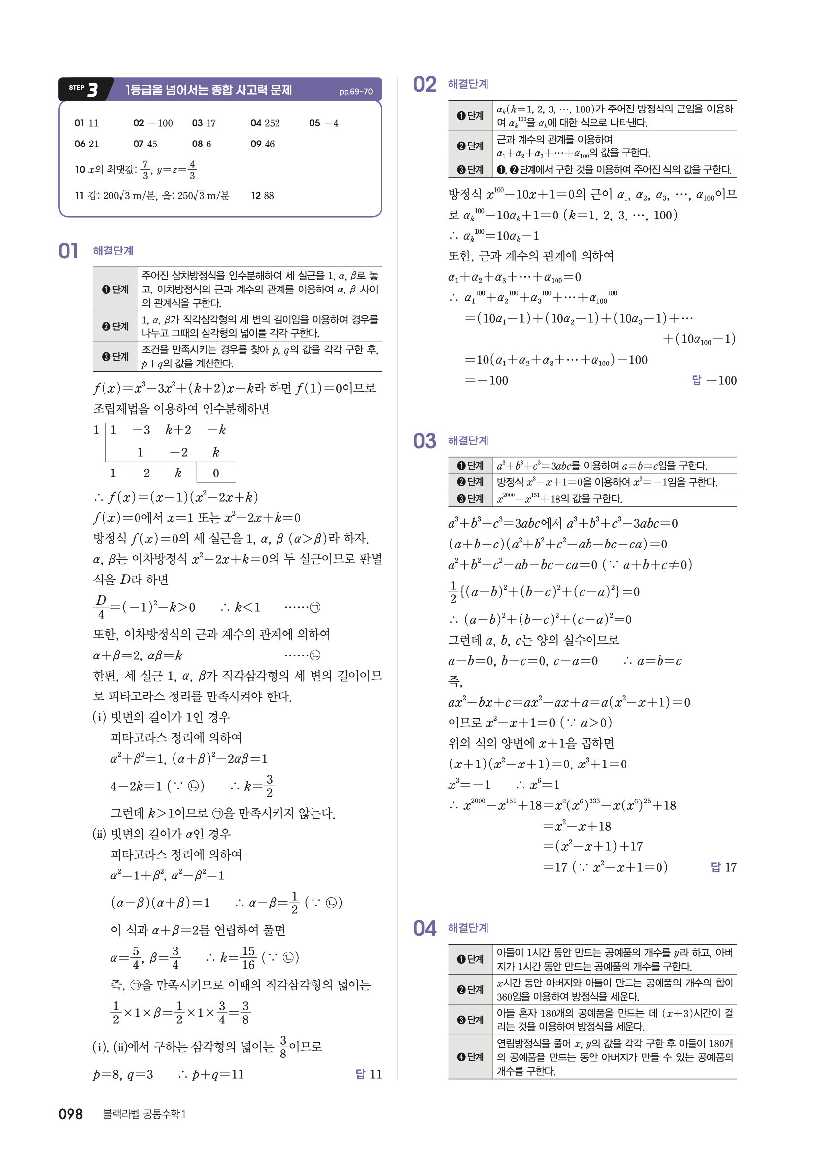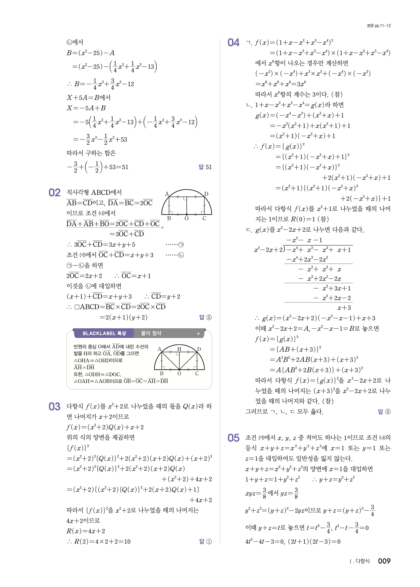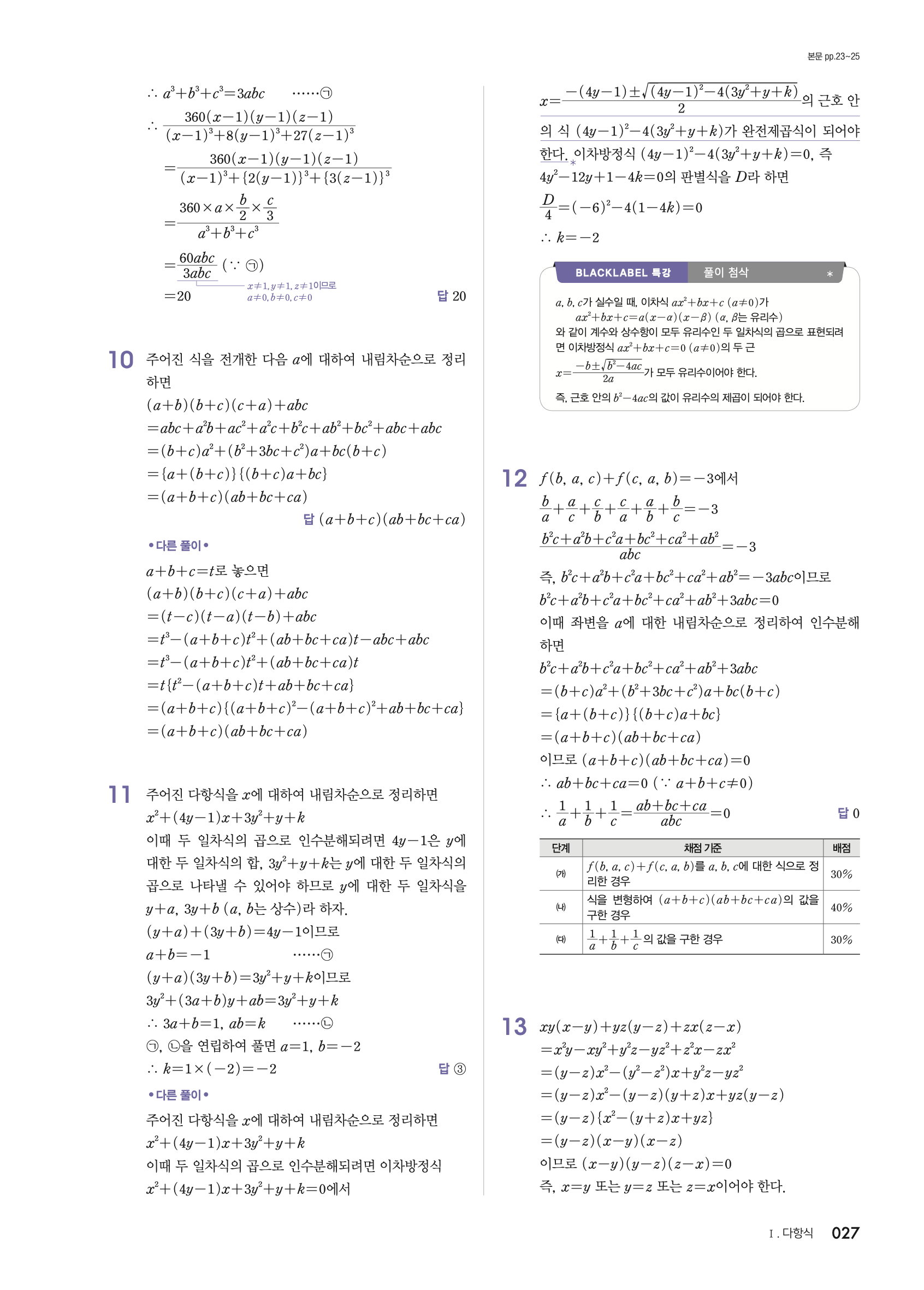 📌 블랙라벨 공통수학1 정답 및 답지 PDF 다운로드