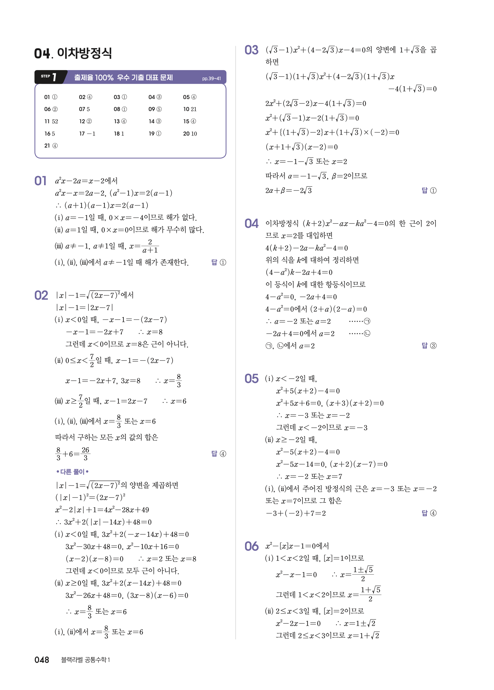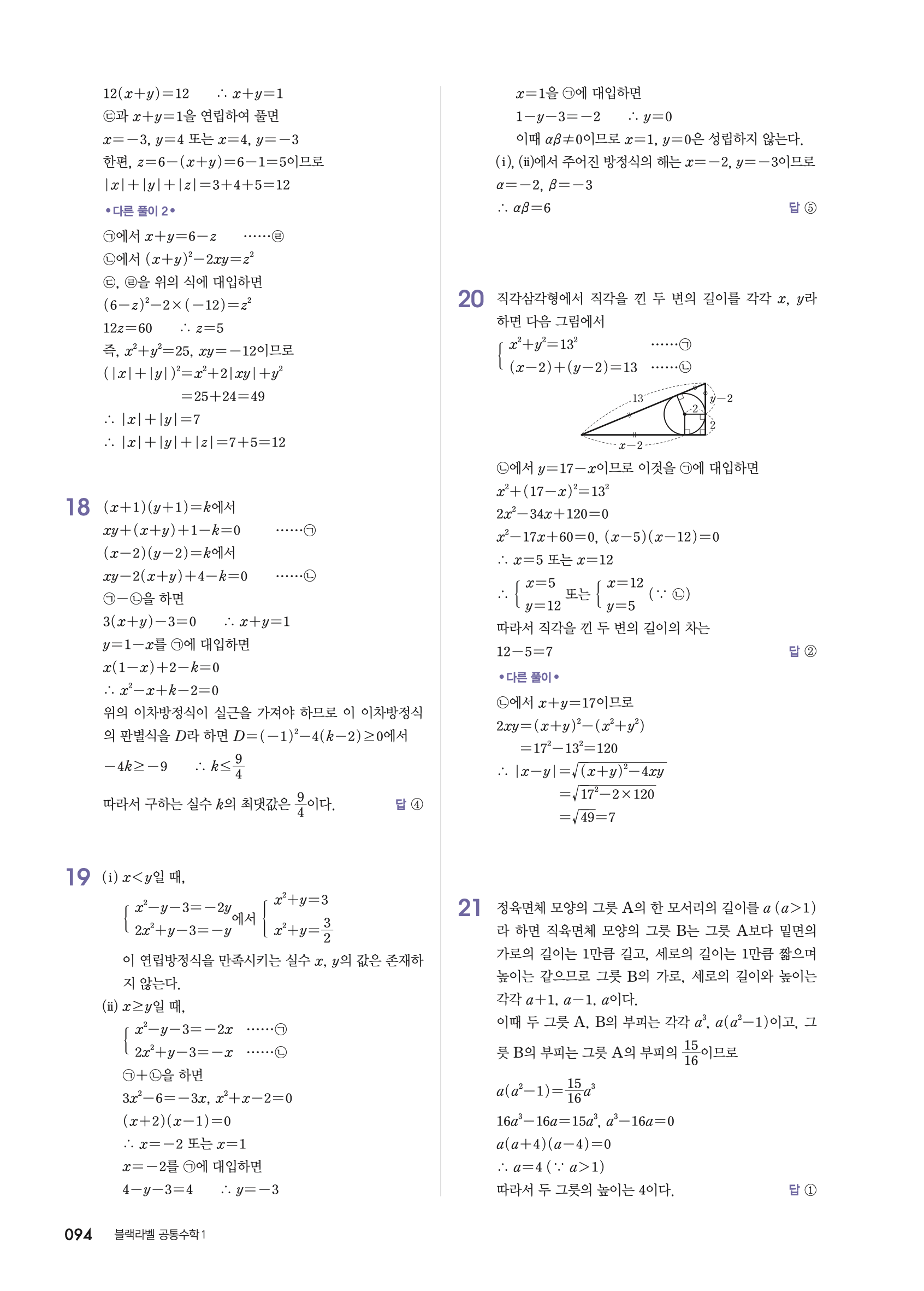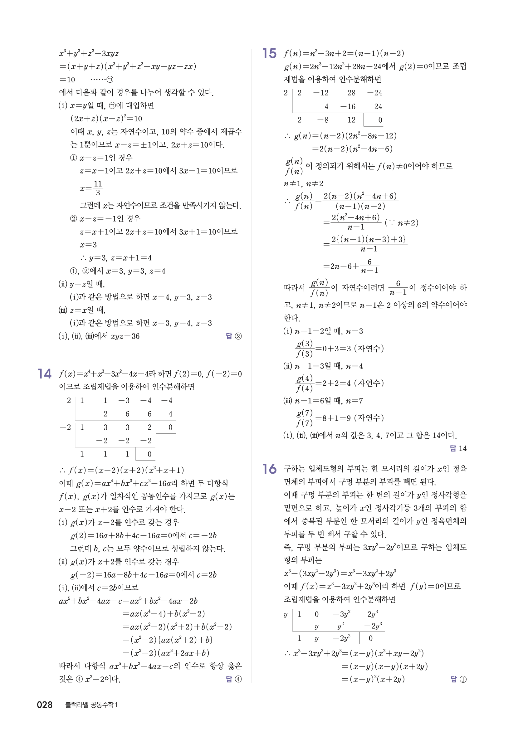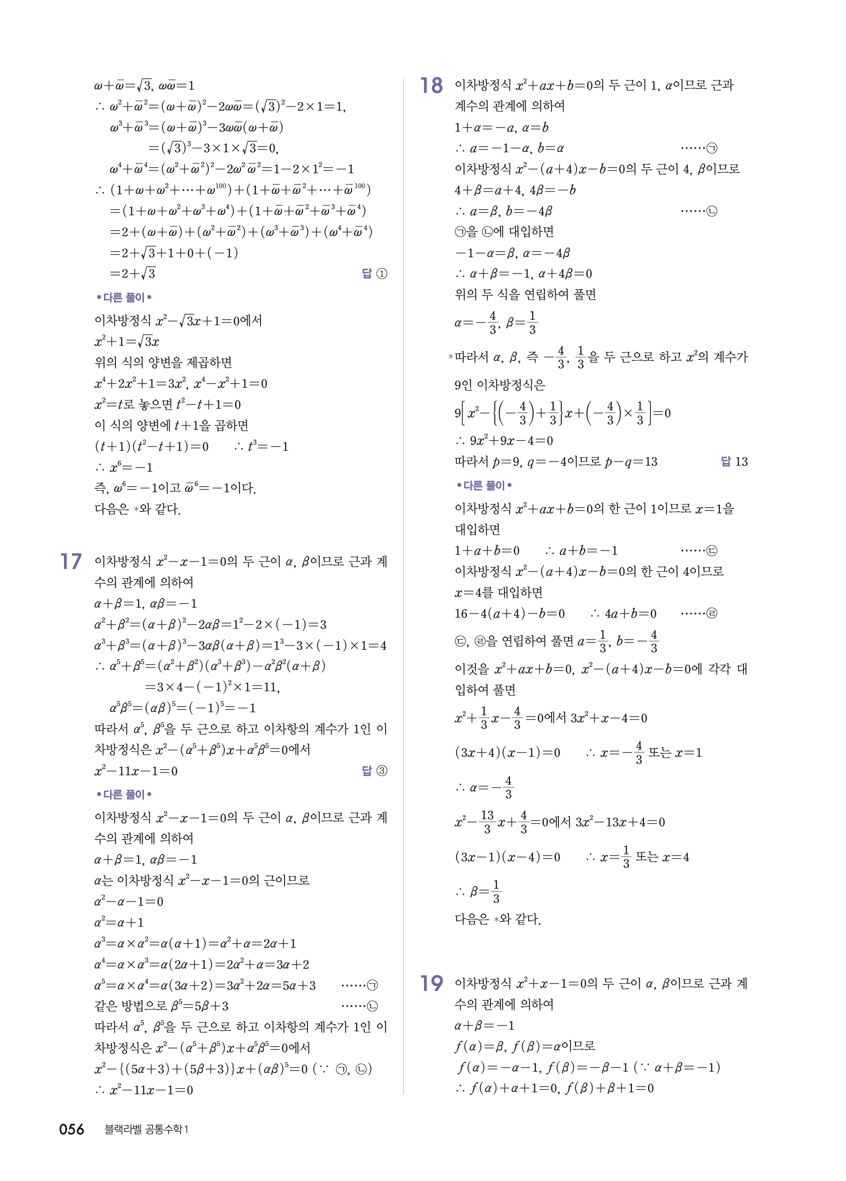 📌 블랙라벨 공통수학1 정답 및 답지 PDF 다운로드