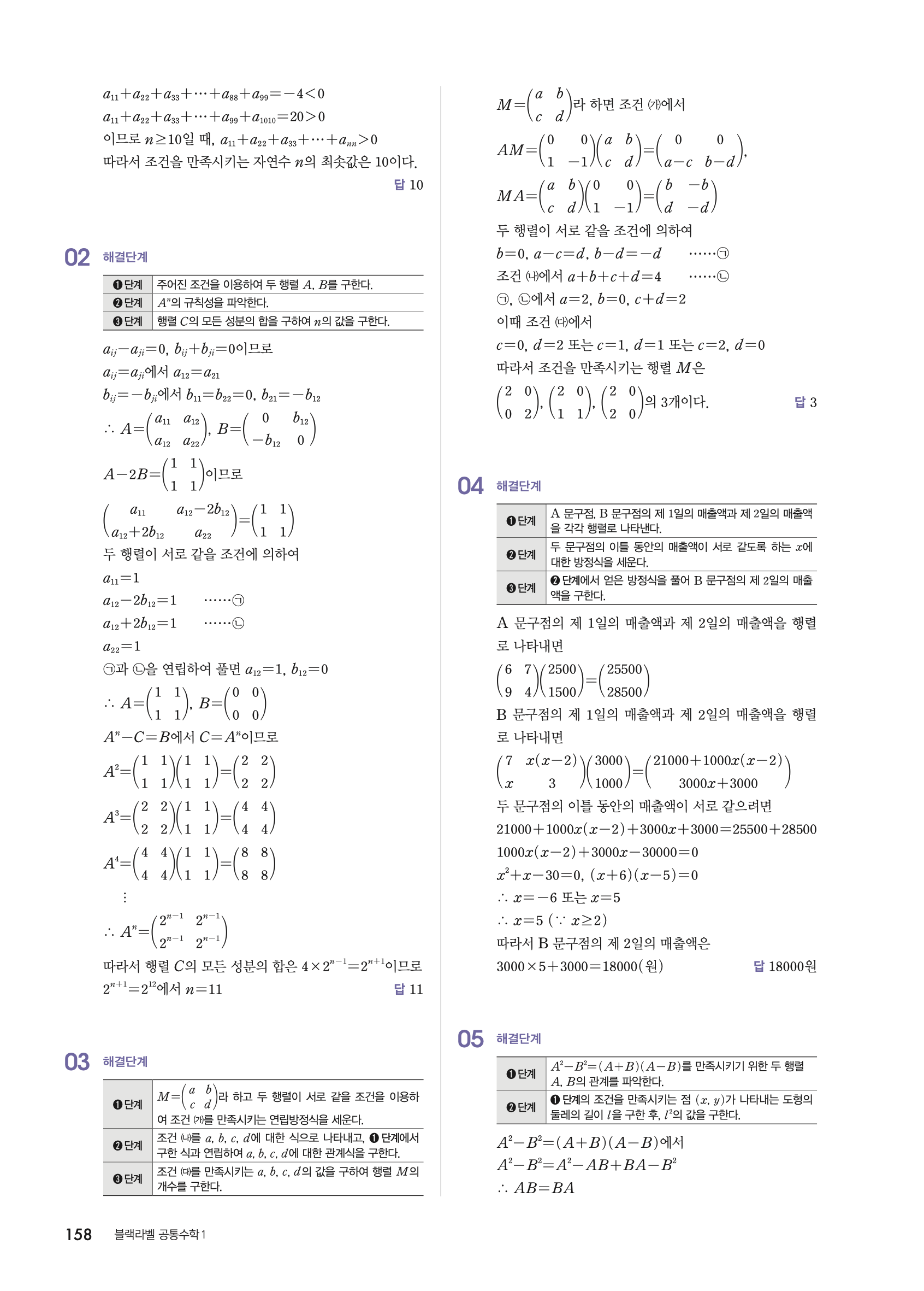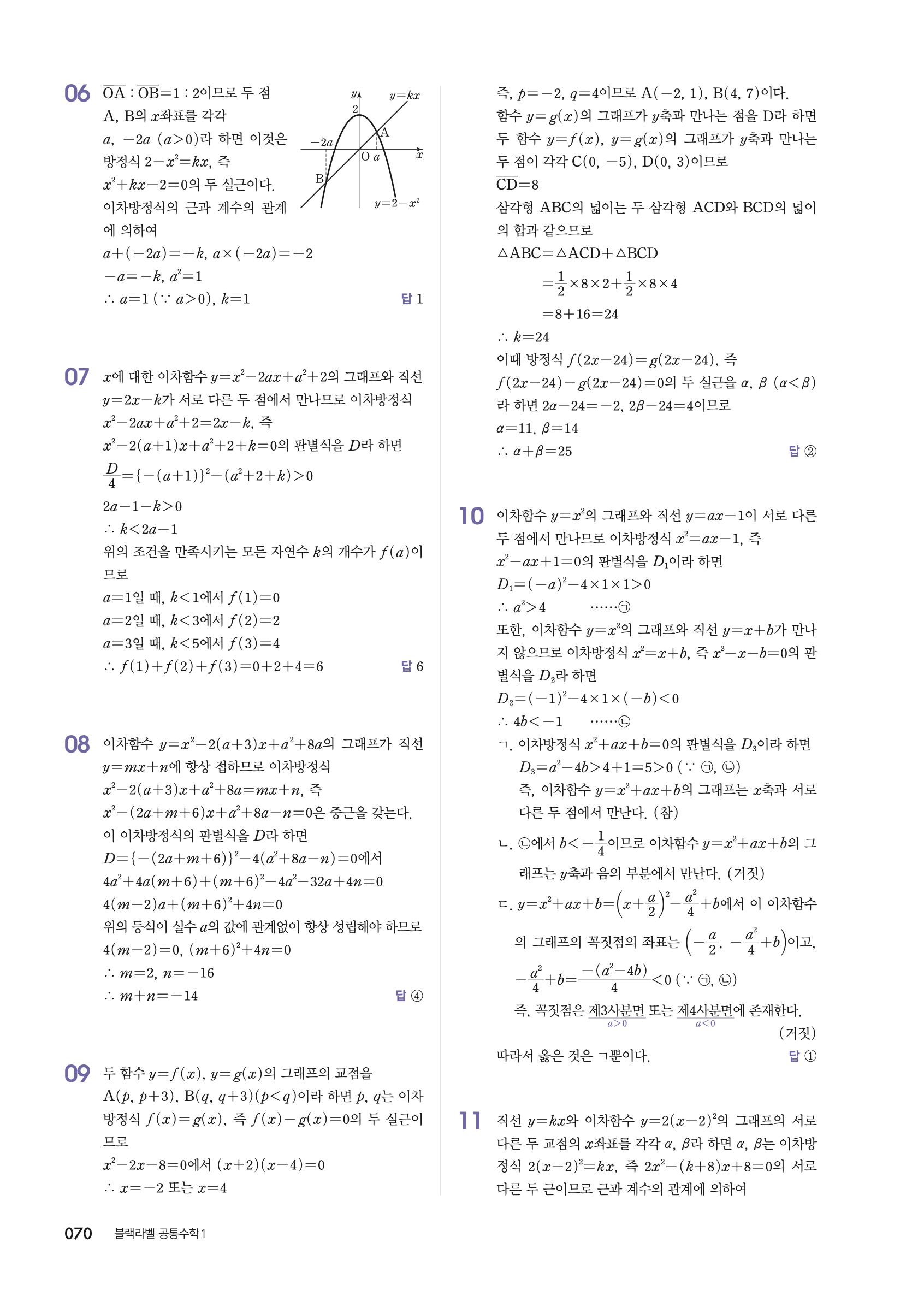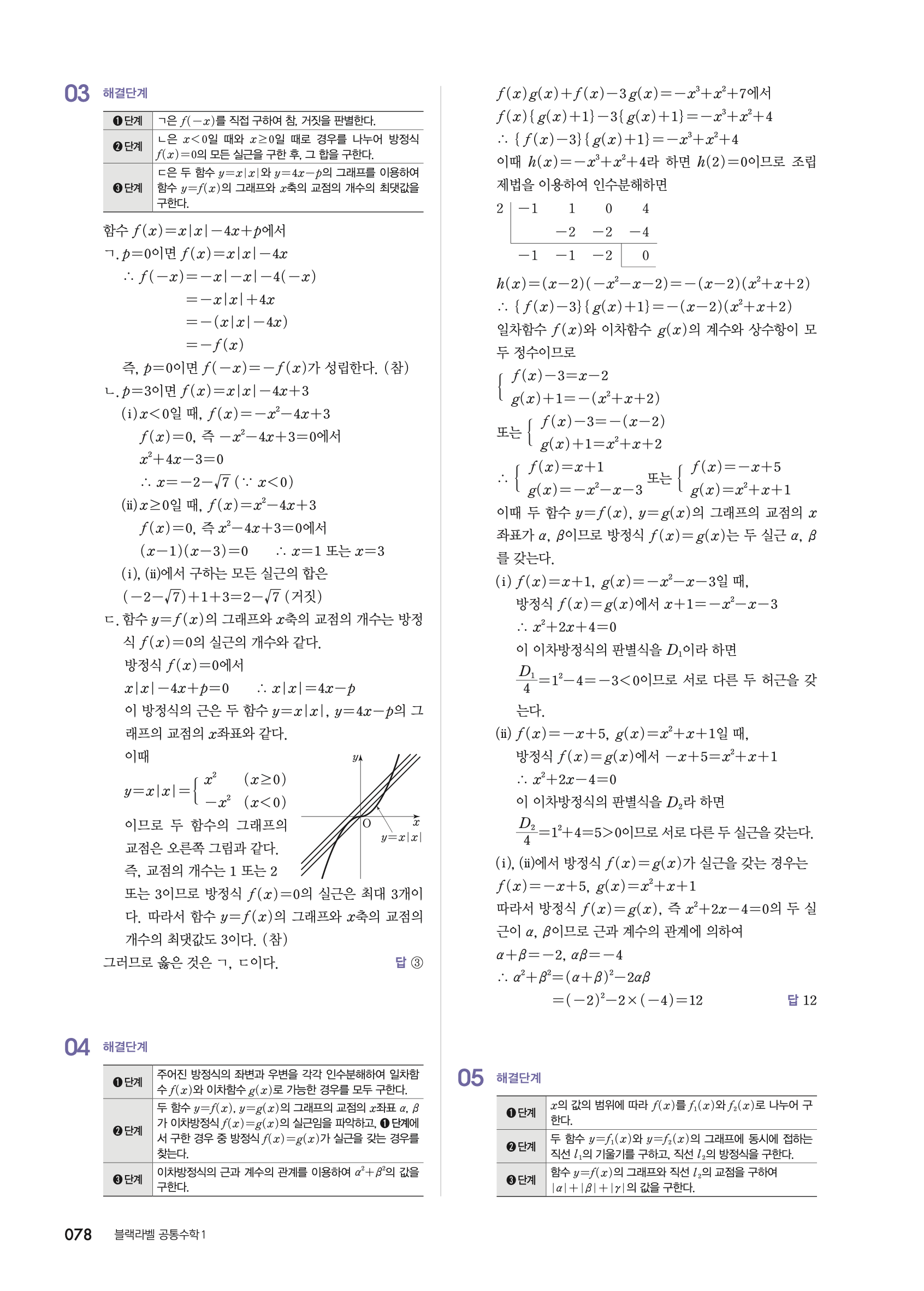 2025 최신개정 블랙라벨 공통수학1(공수1) 답지, 해설, 빠른답지 PDF 다운로드
