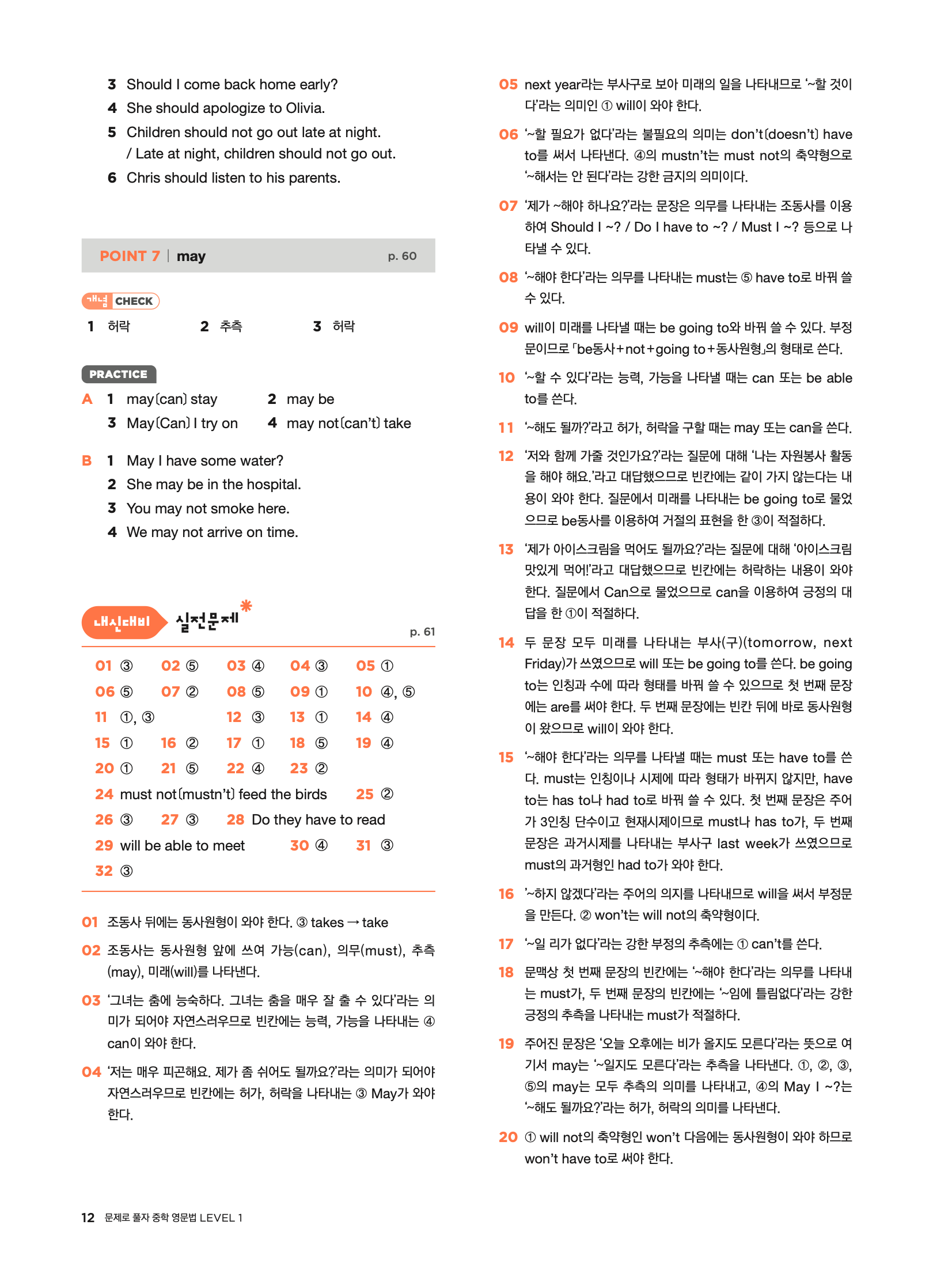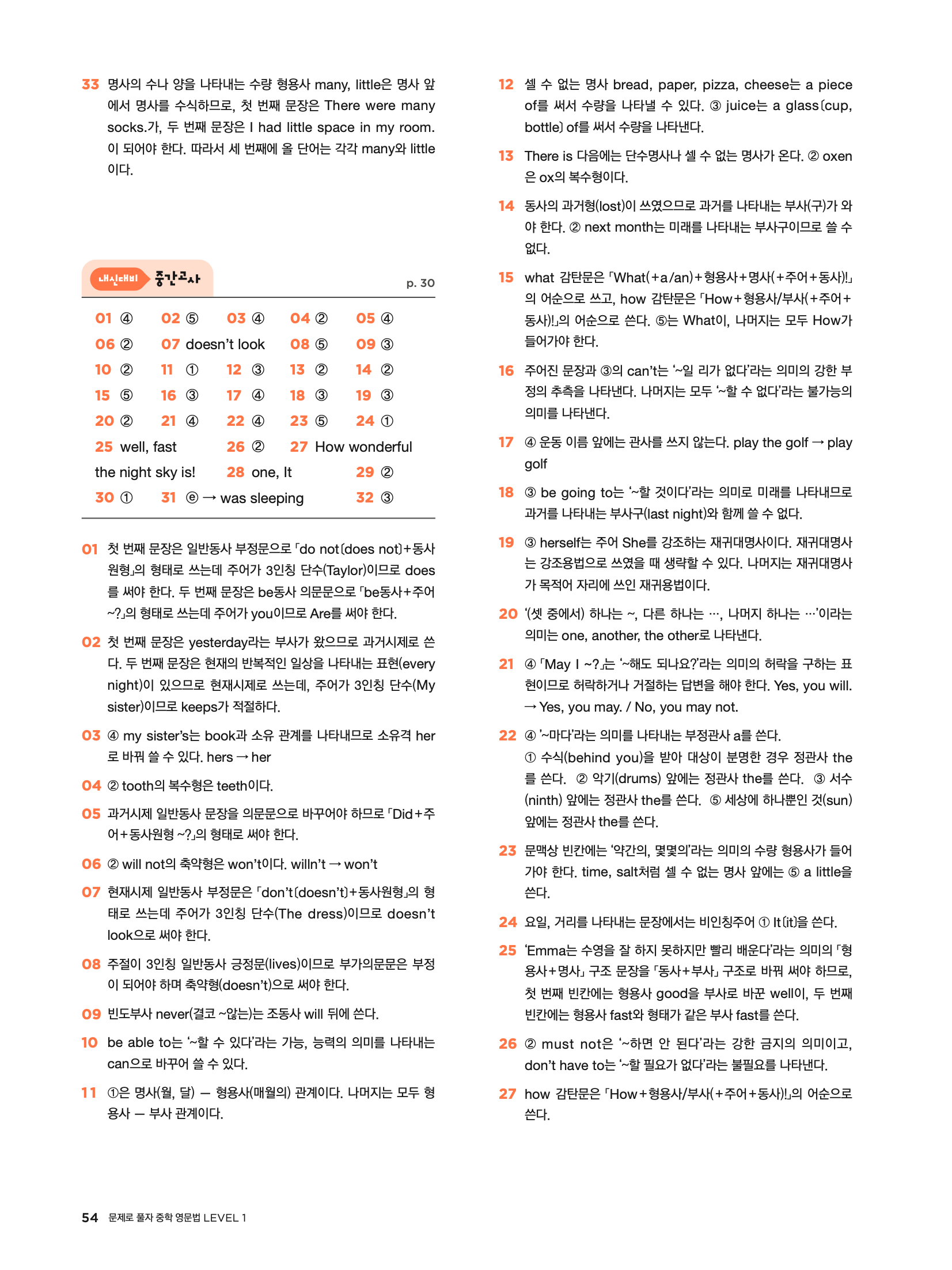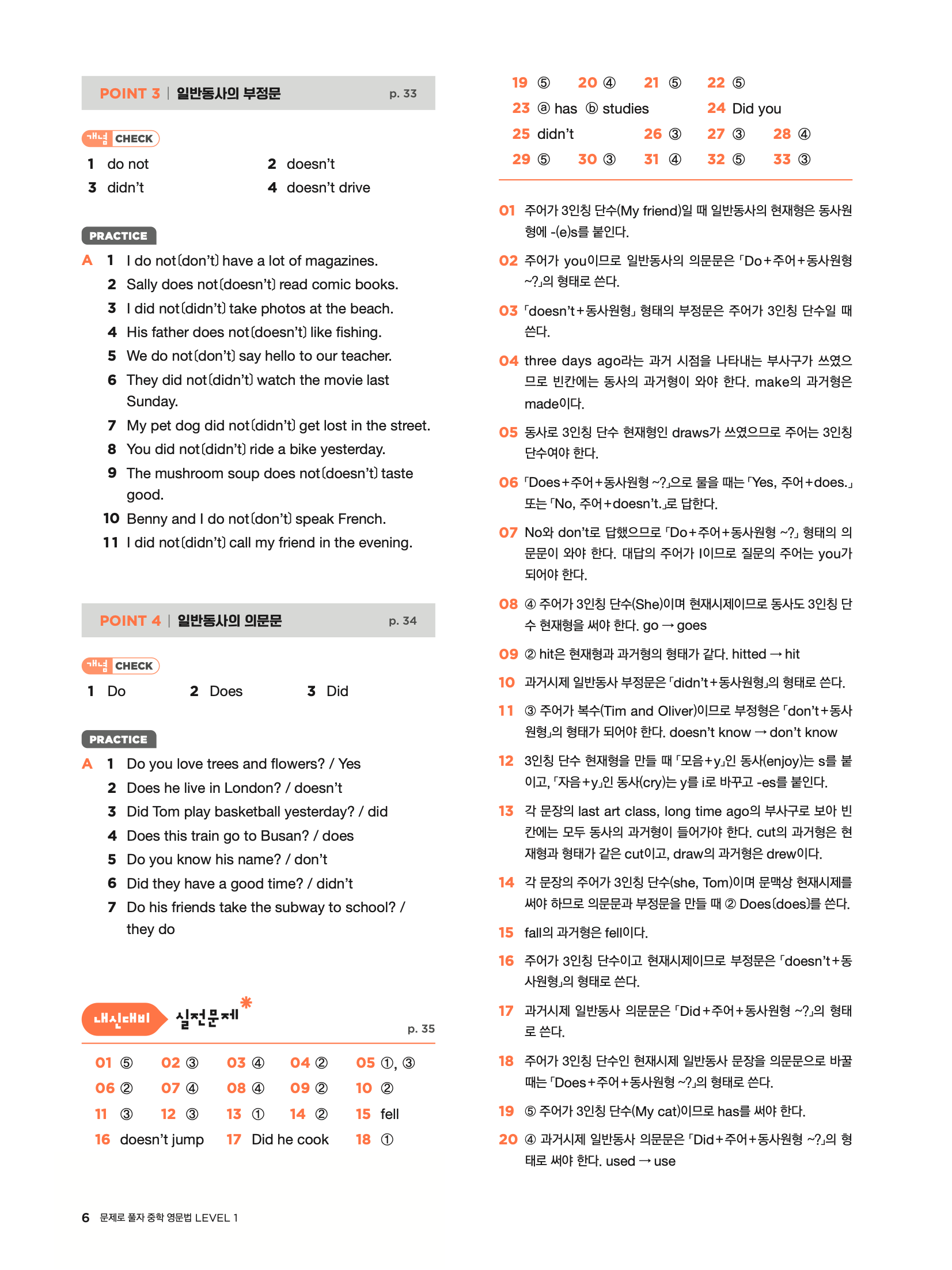 📌 문제로풀자 중학영문법 레벨1 빠른답지 PDF 다운로드