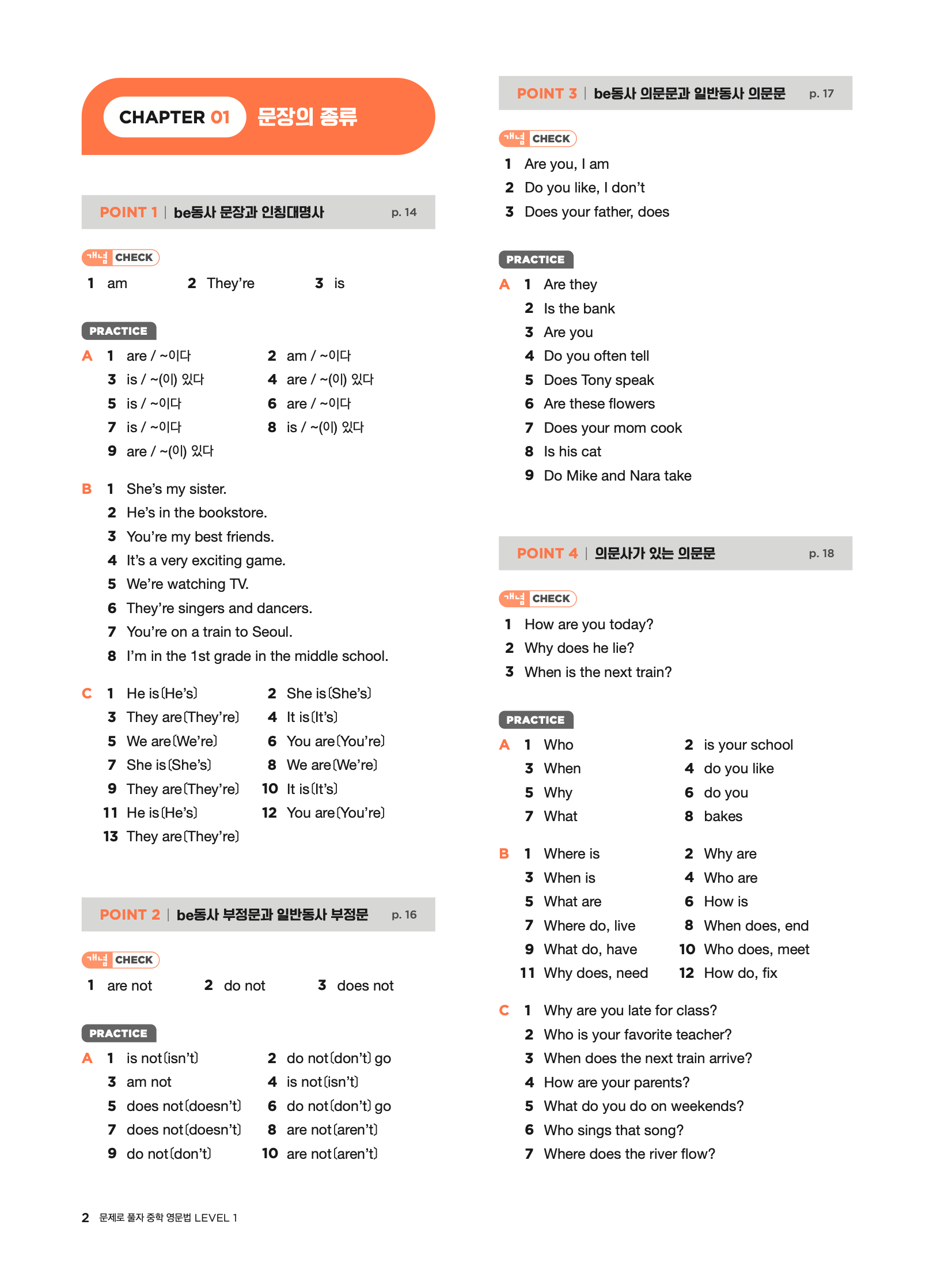 📚 문제로풀자 중학영문법 레벨1 주요 학습 단원