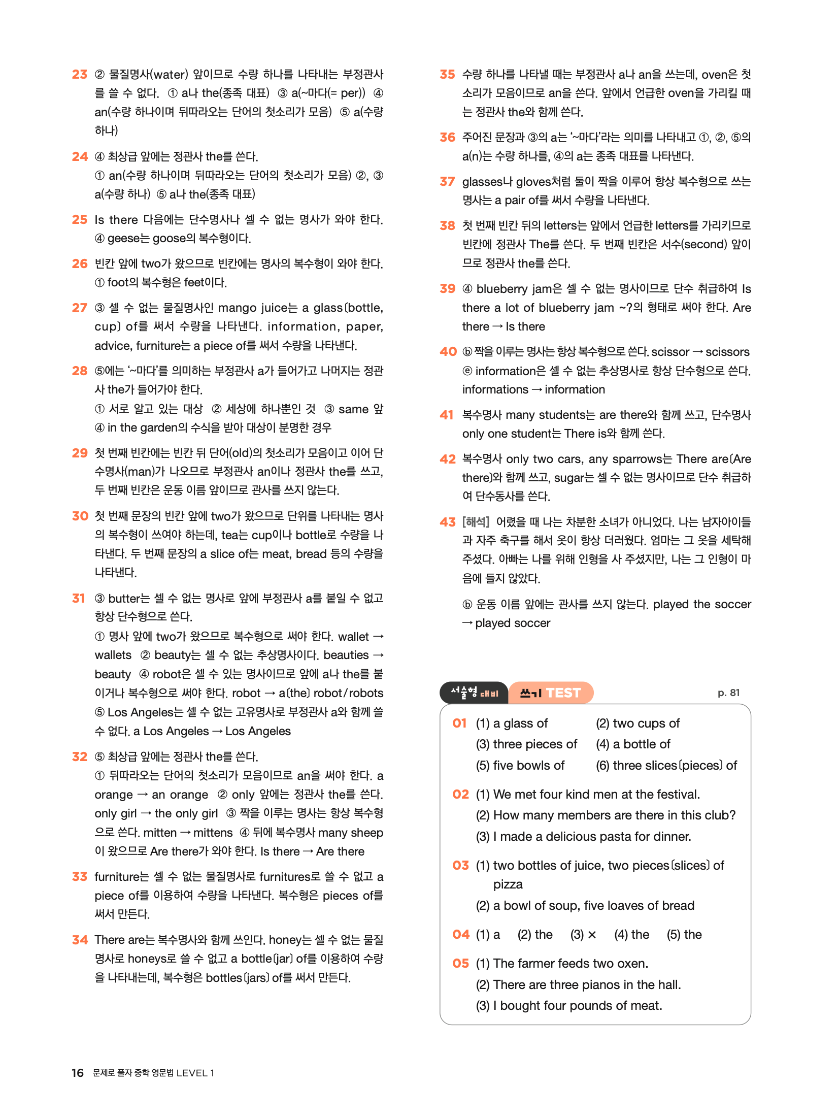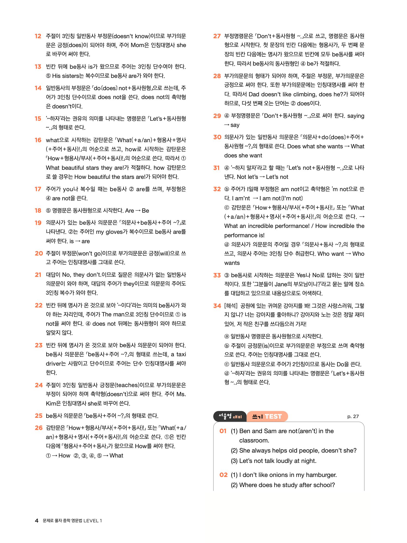 2025 최신개정 문제로풀자 중학영문법 레벨1 답지 해설 풀이 빠른답지 PDF 다운로드