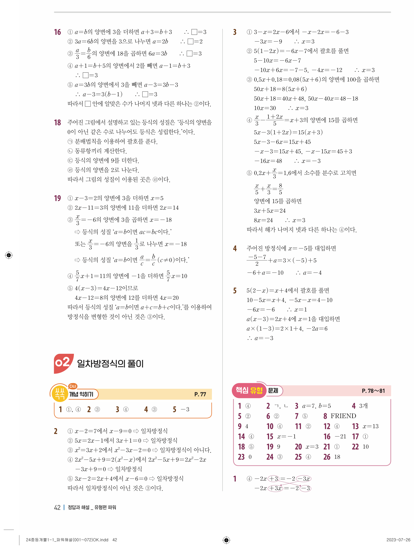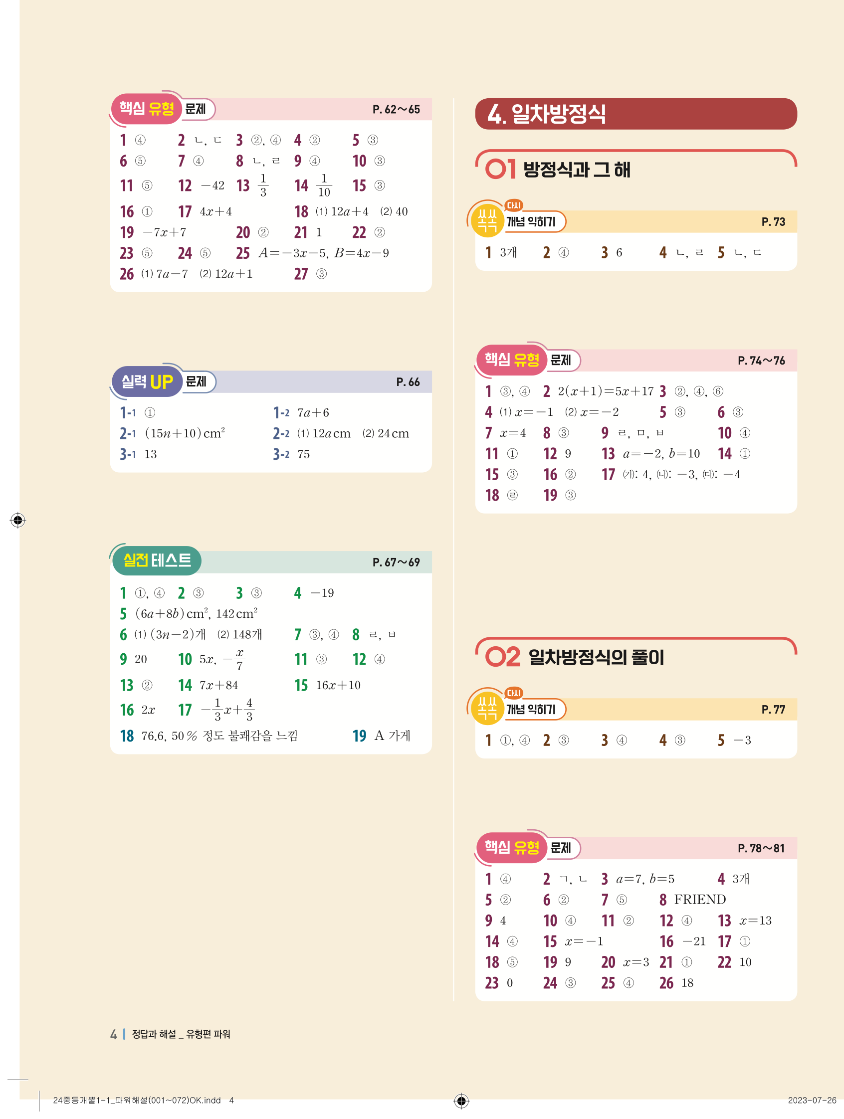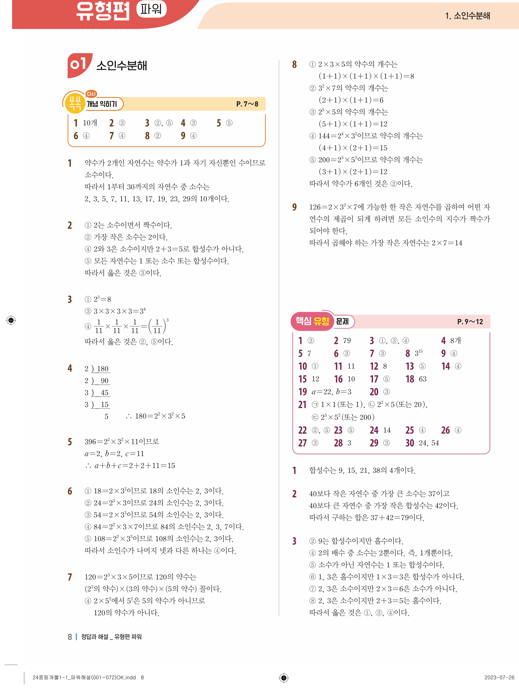 📥 개념플러스유형 개뿔 1-1 파워 개념편 답지 해설 풀이 빠른답지 PDF 다운로드