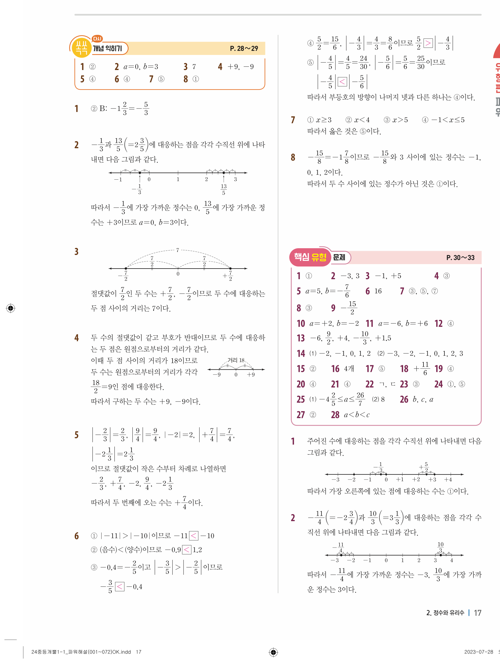 📌 개념플러스유형 개뿔 1-1 파워 개념편 빠른답지 PDF 다운로드