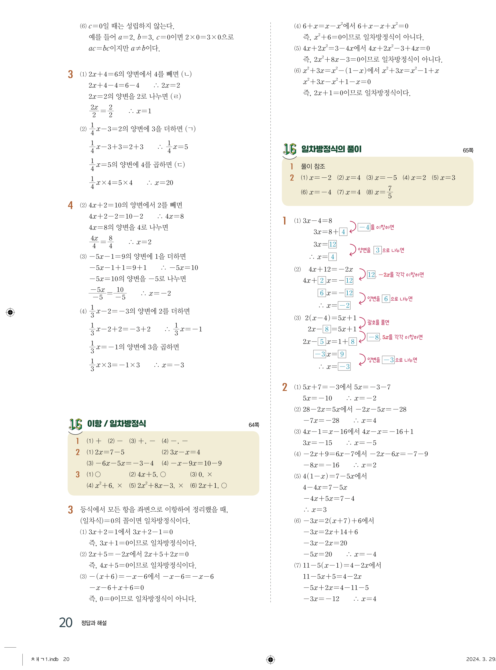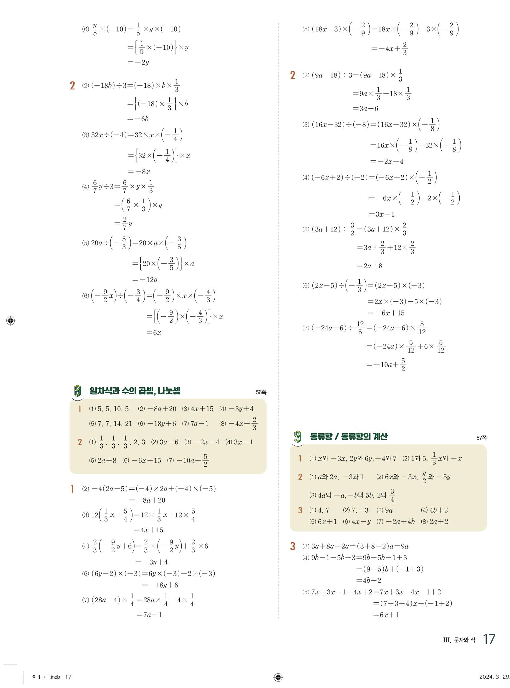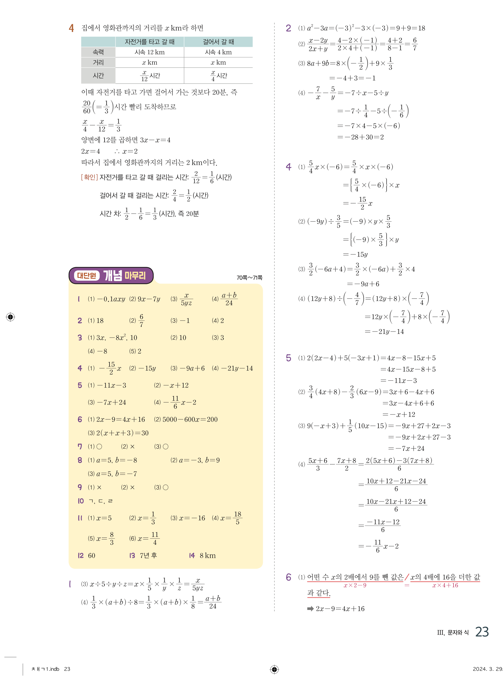 📢 2025 최신개정 교과서 개념잡기 중등 1-1 답지 해설 풀이 빠른답지 PDF 다운로드