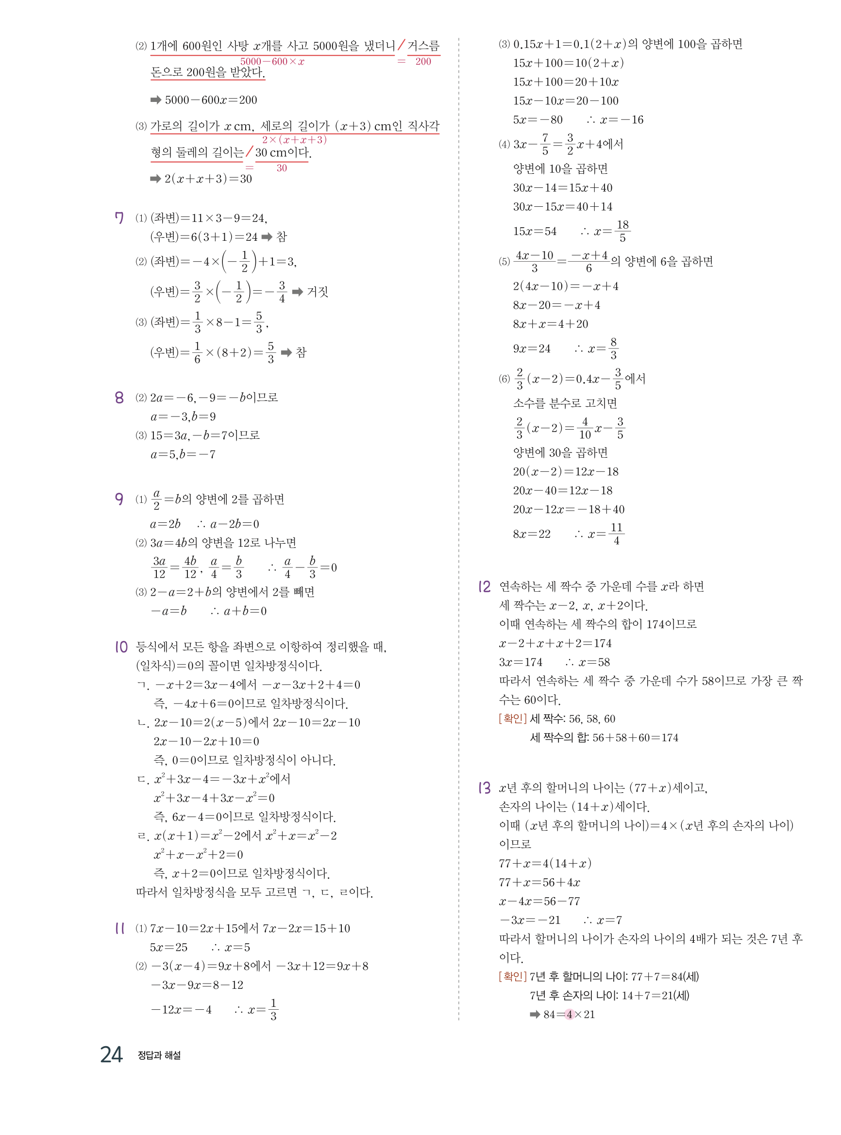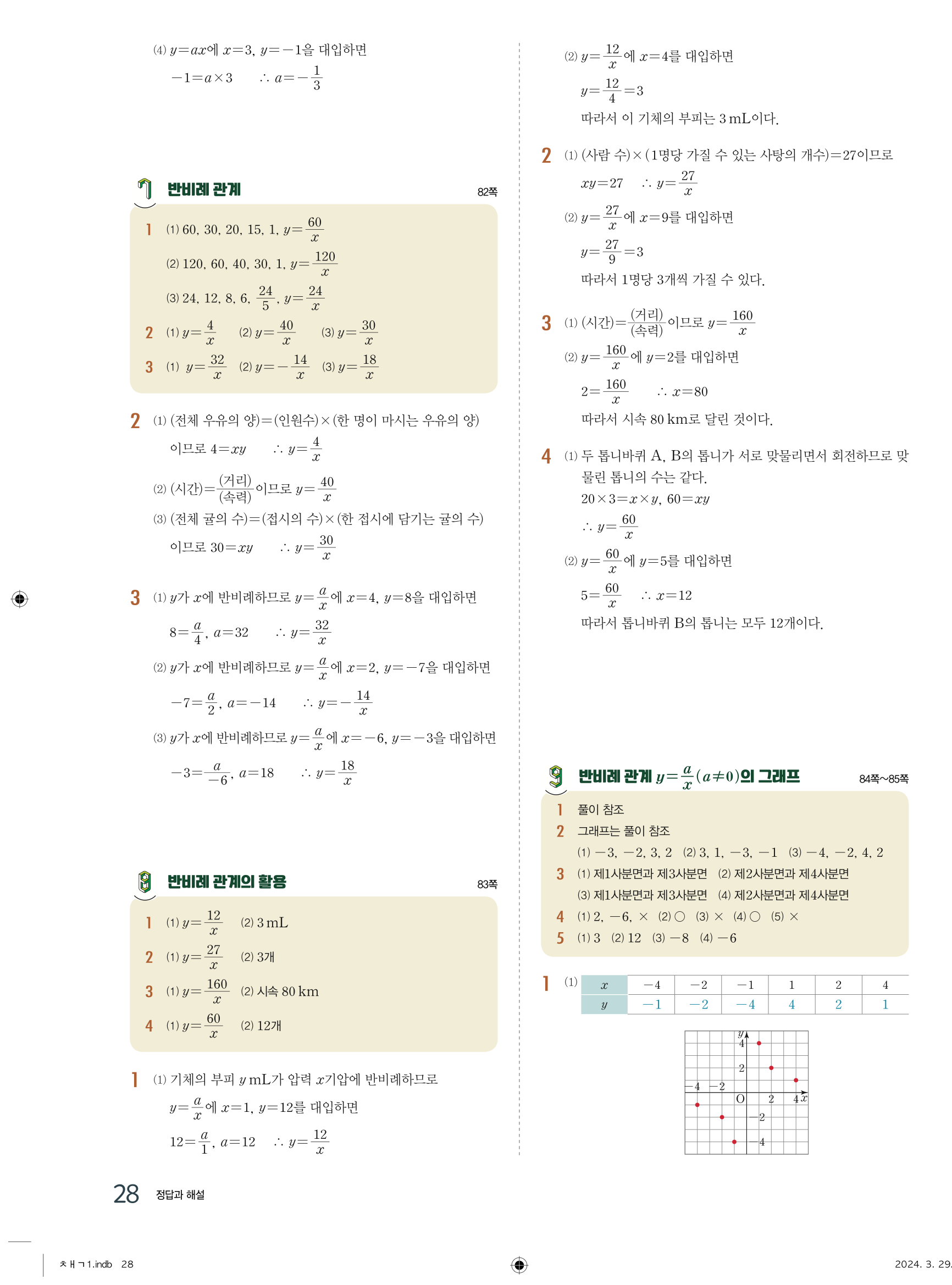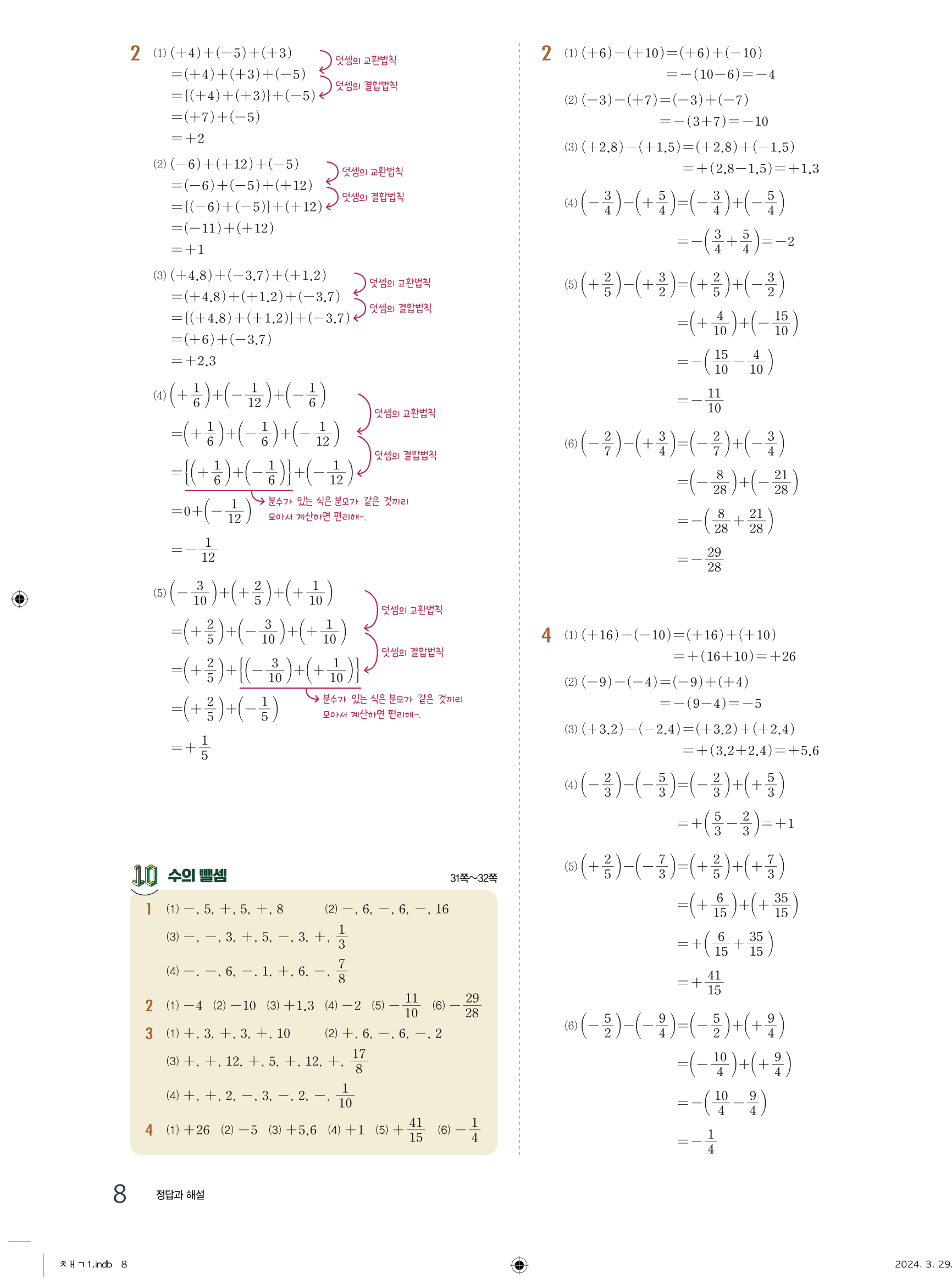 📢 2025 최신개정 교과서 개념잡기 중등 1-1 답지 해설 풀이 빠른답지 PDF 다운로드