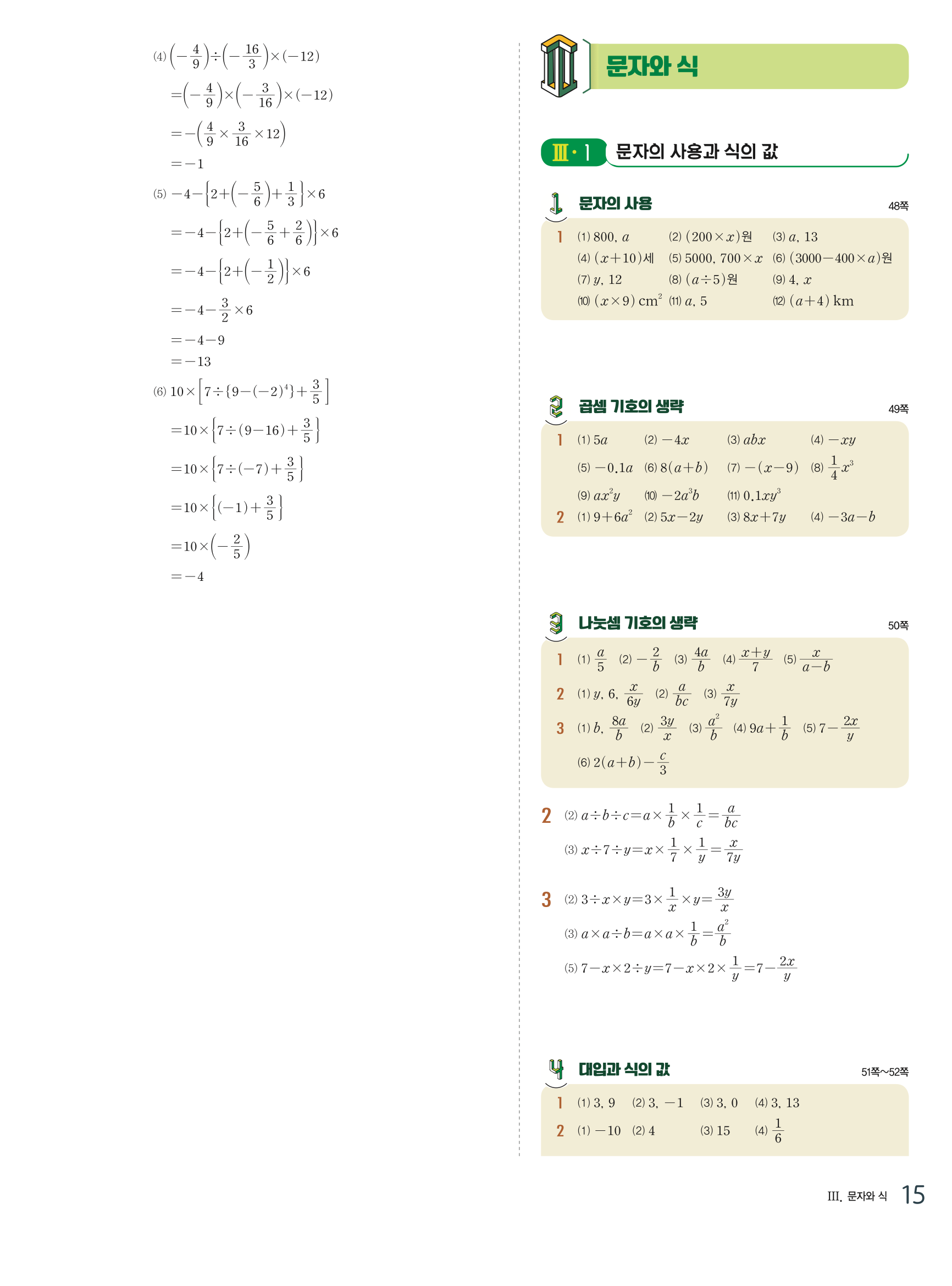 📚 교과서 개념잡기 중등 1-1 주요 학습 단원