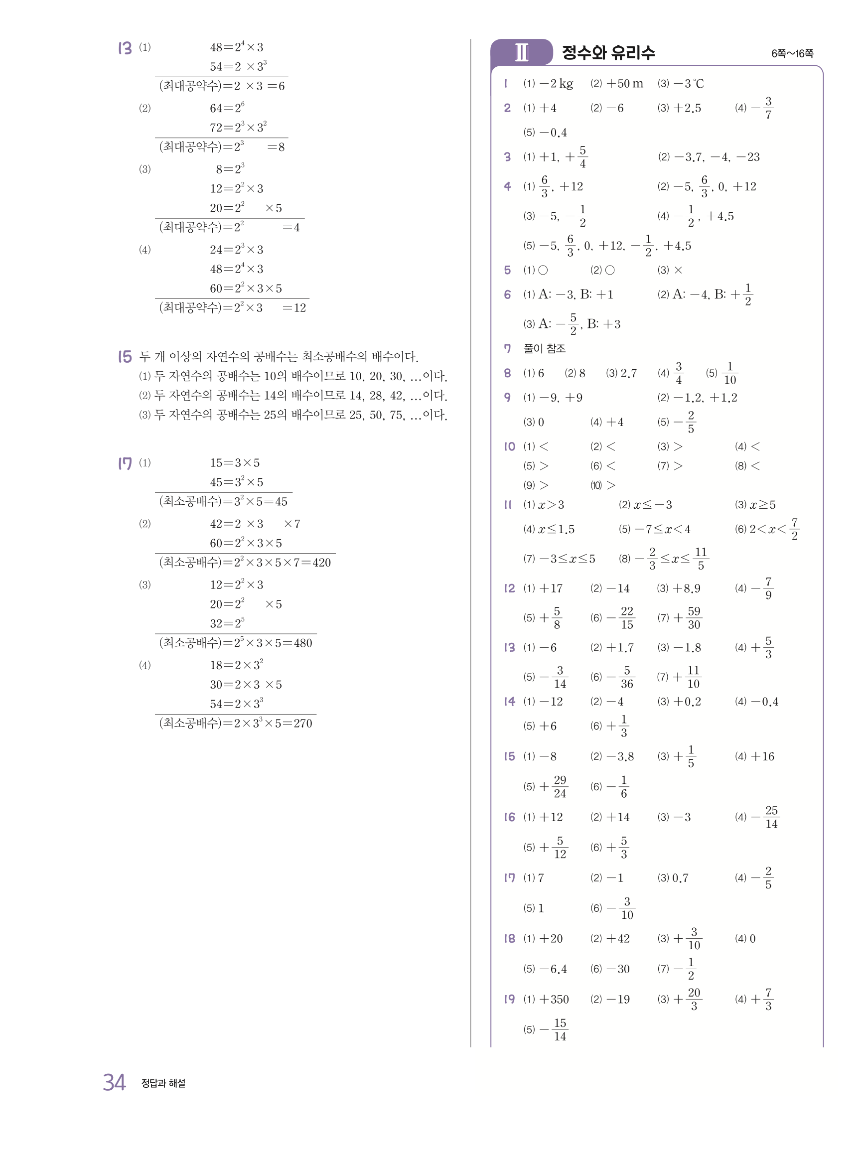 📌 교과서 개념잡기 중등 1-1 빠른답지 PDF 다운로드