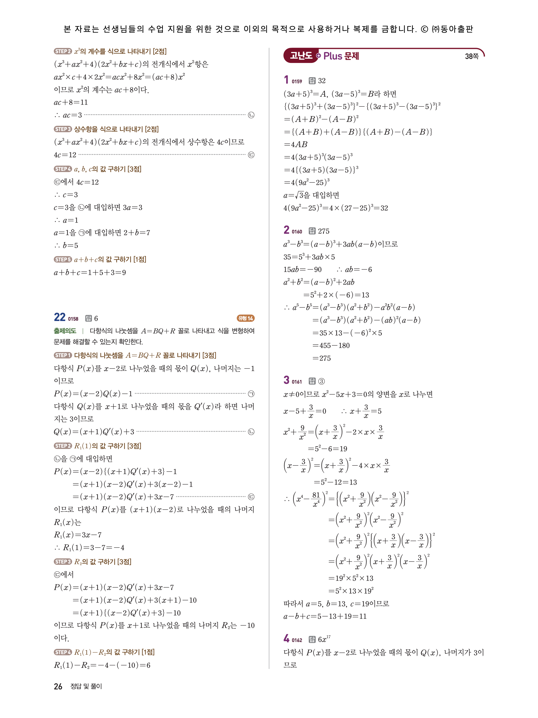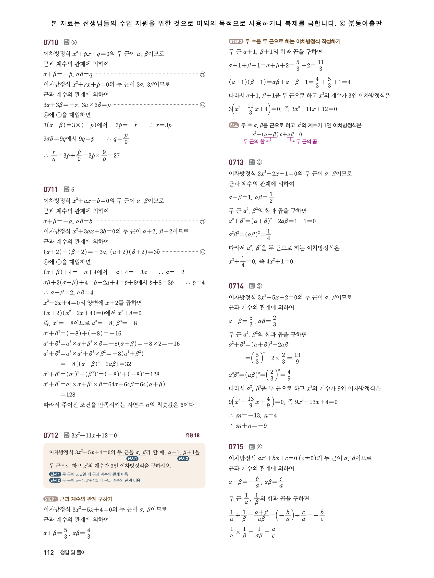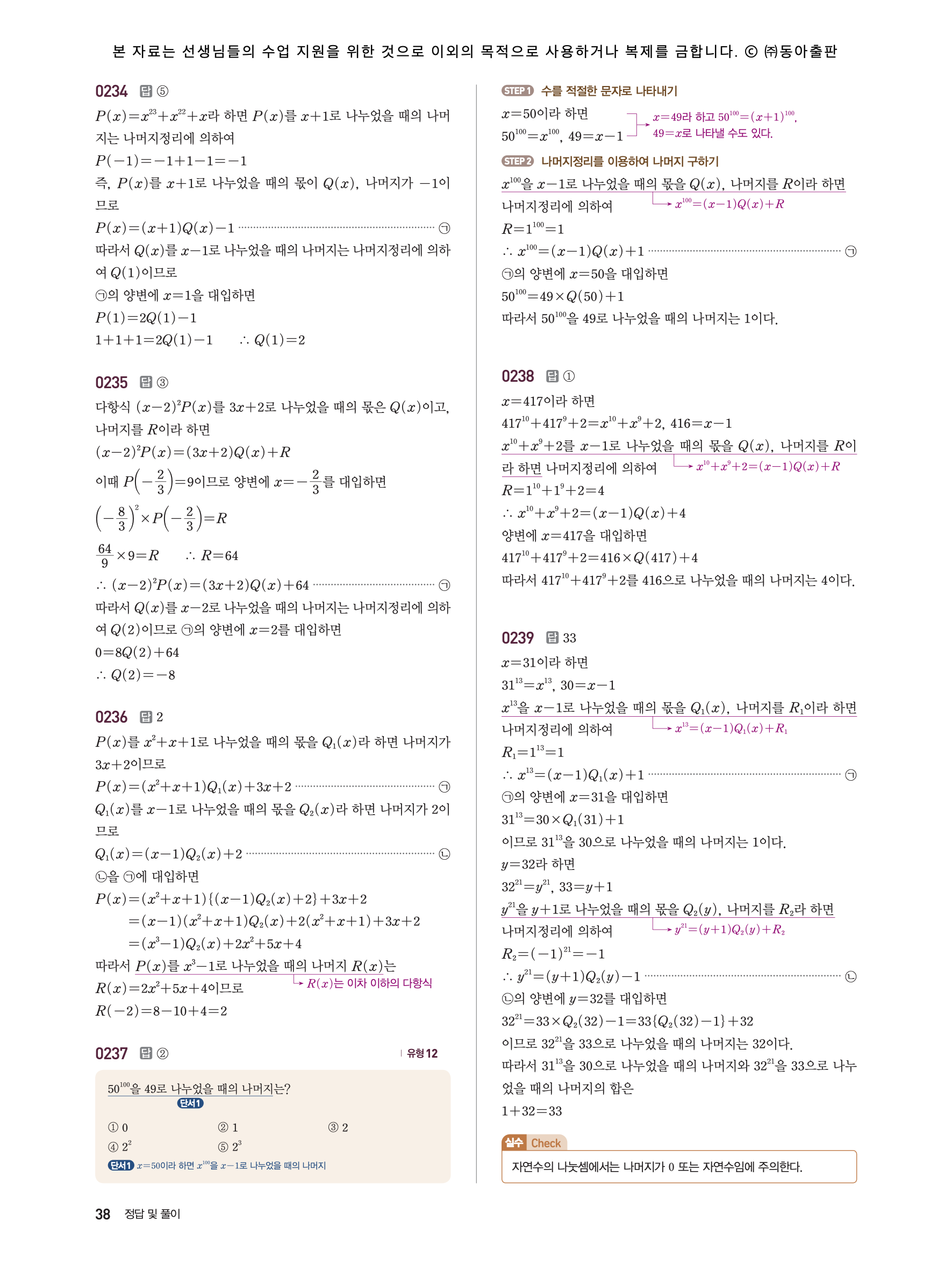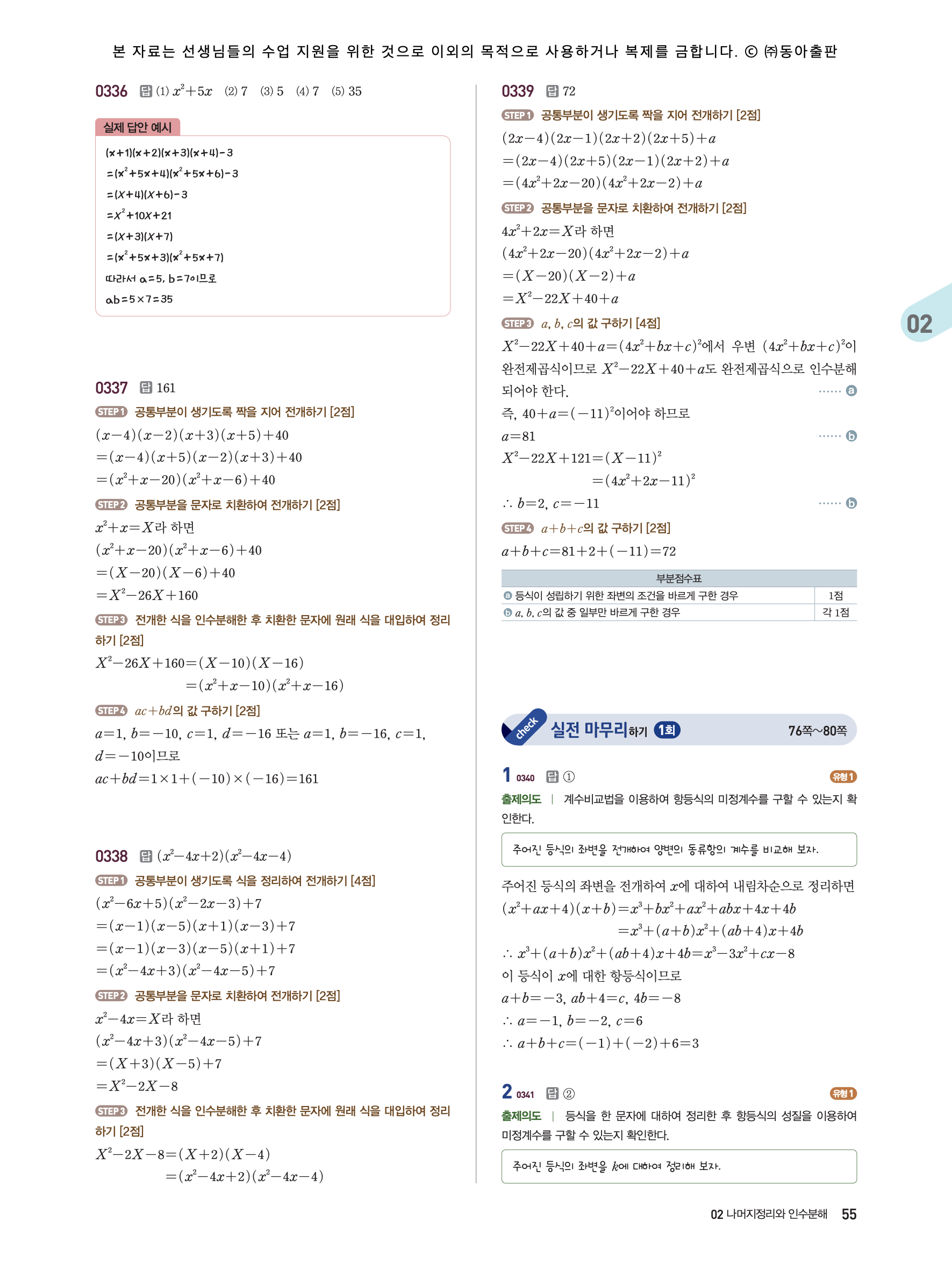 📥 고등 수매씽 공통수학 공수1 답지 해설 풀이 빠른답지 PDF 다운로드