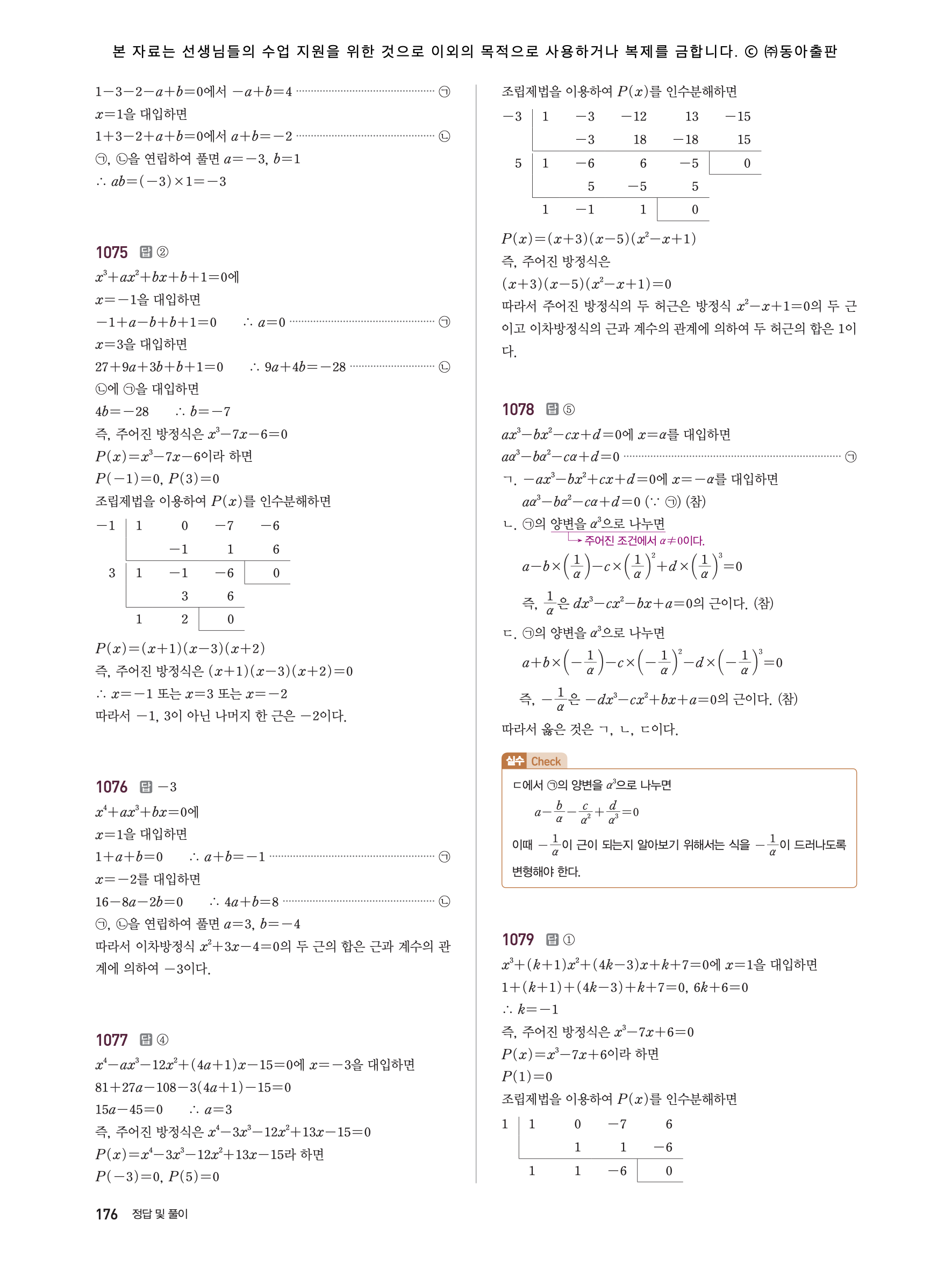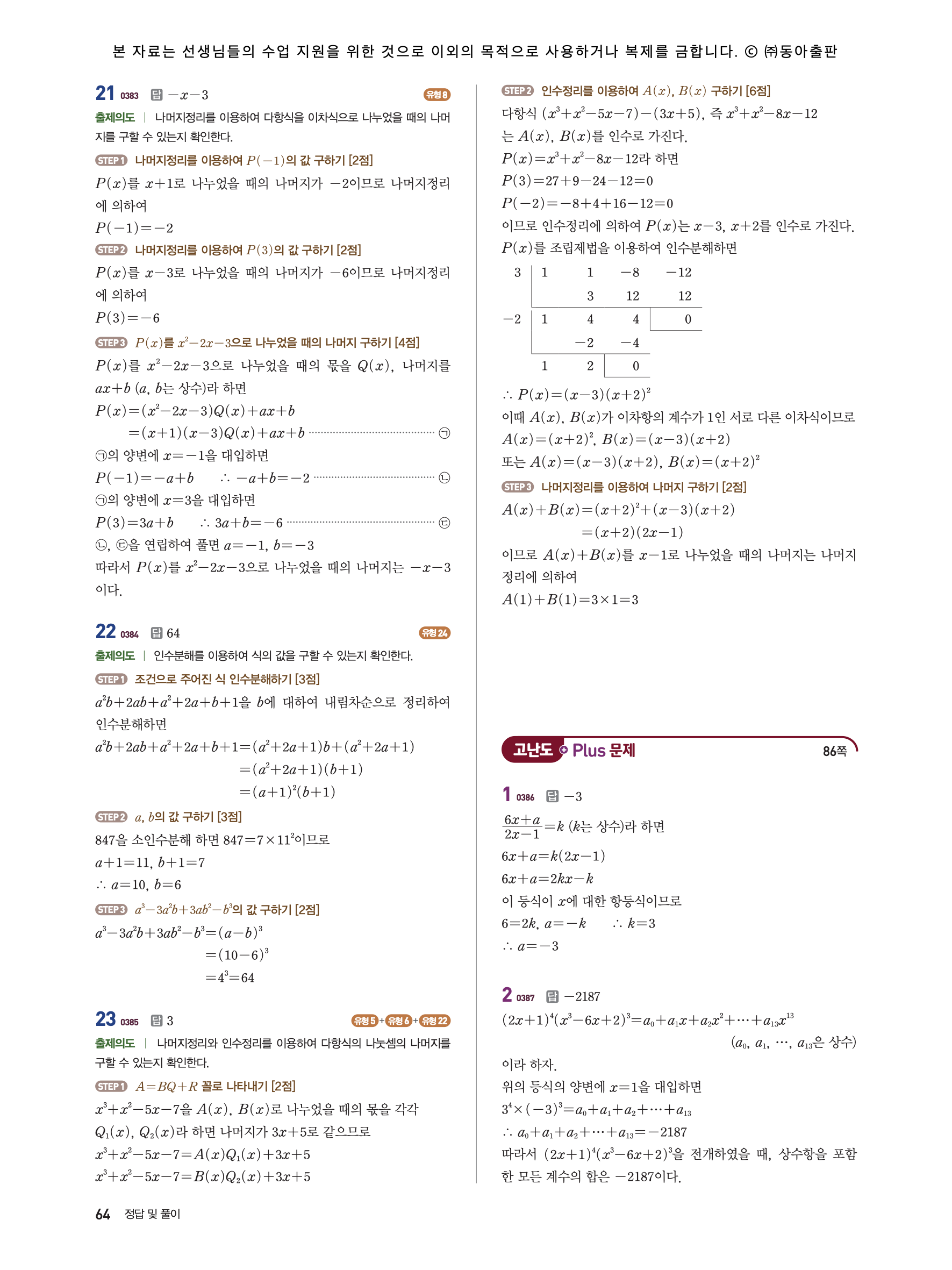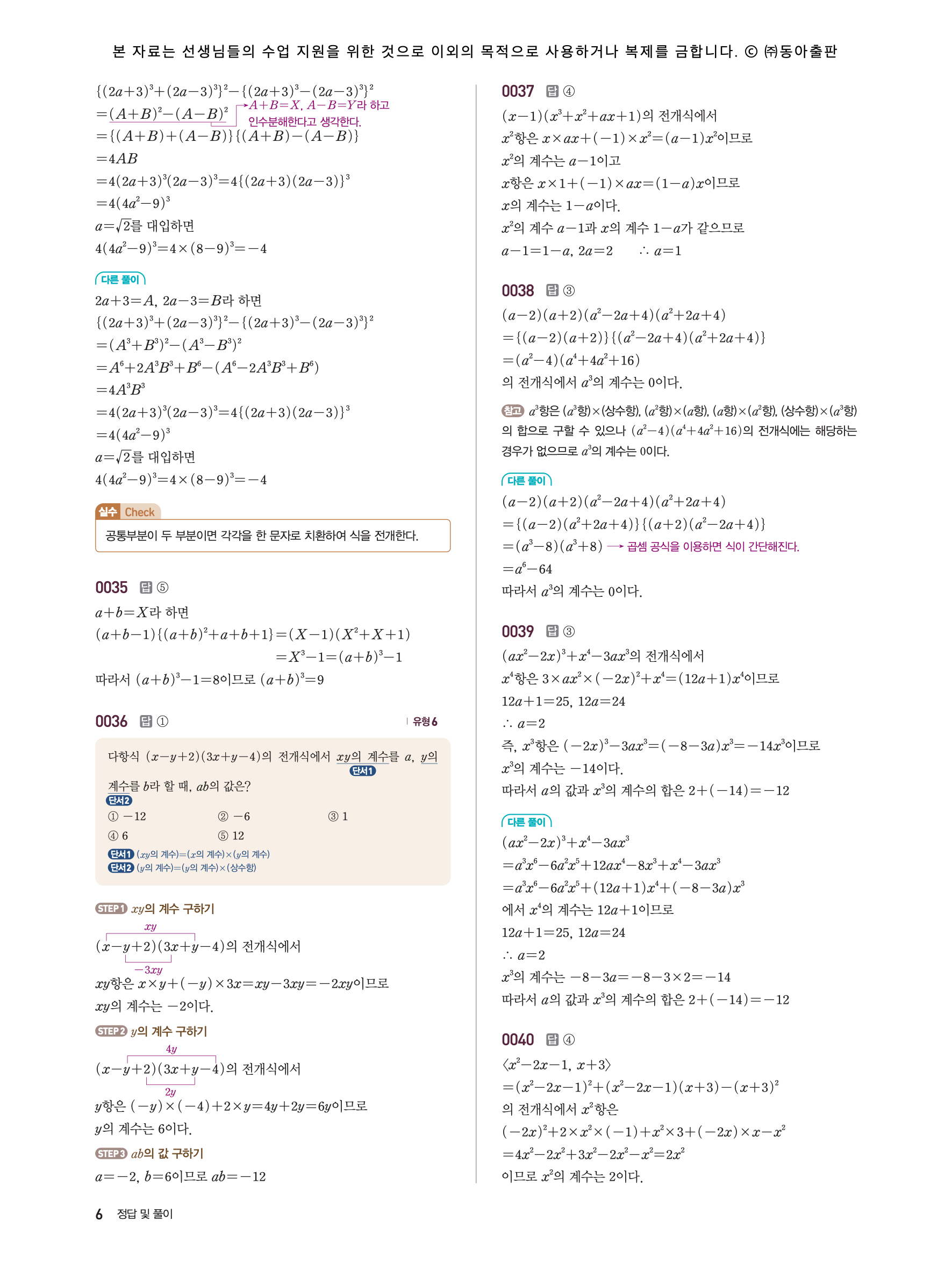 📥 고등 수매씽 공통수학 공수1 답지 해설 풀이 빠른답지 PDF 다운로드