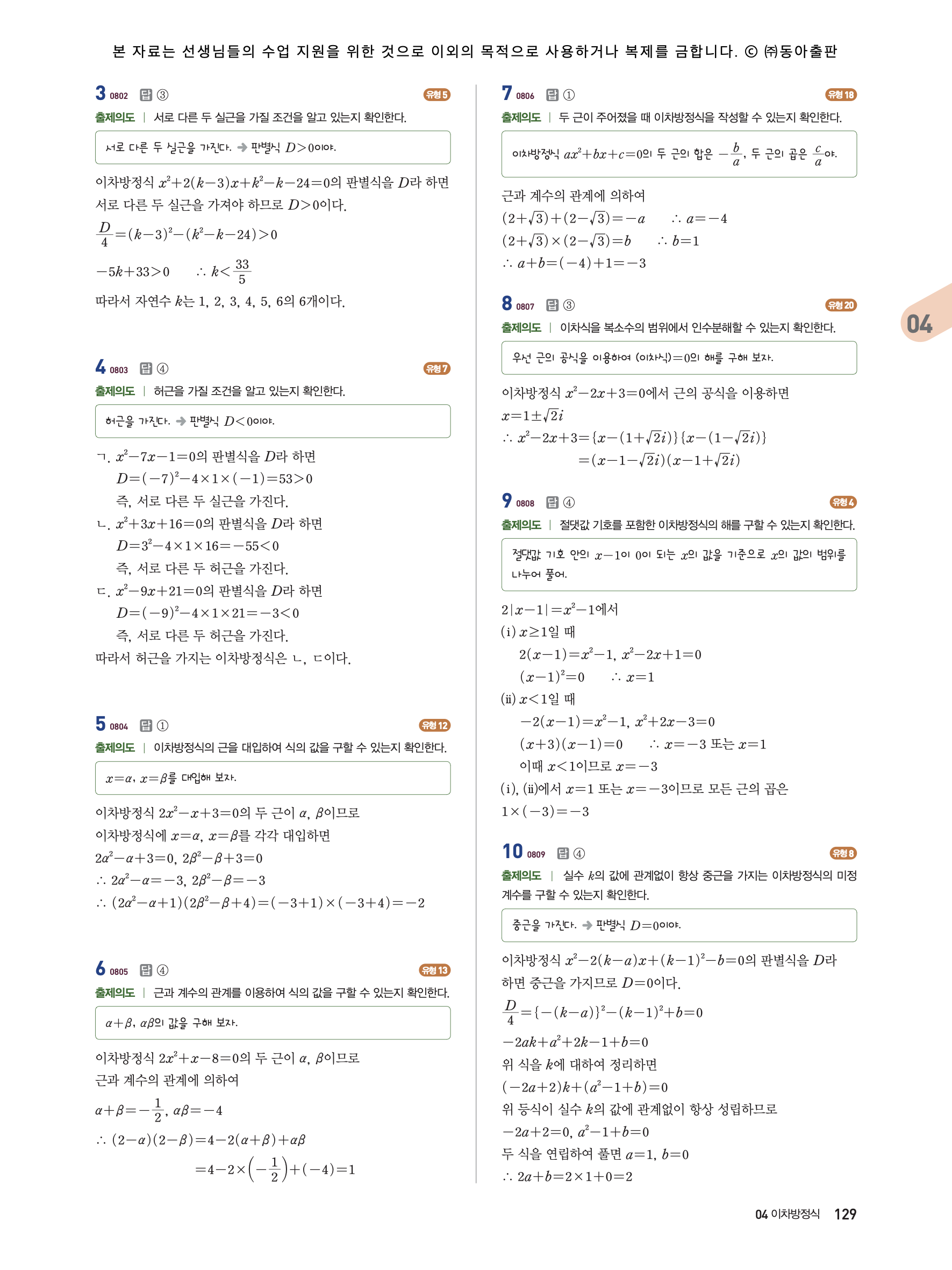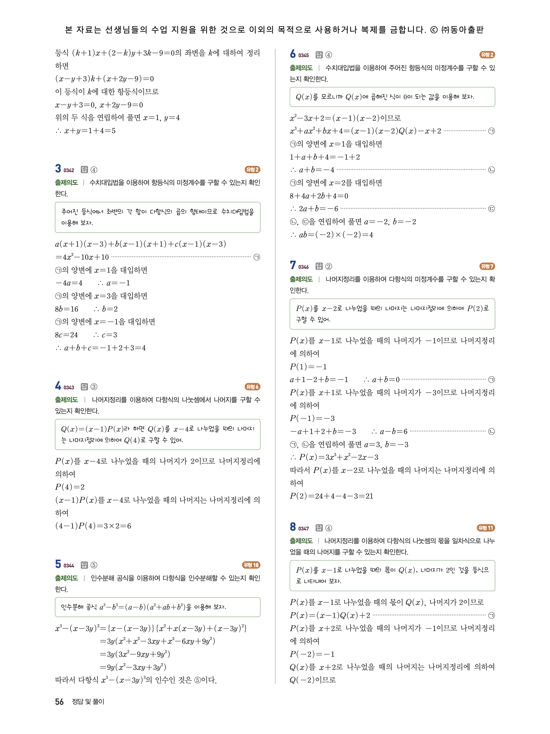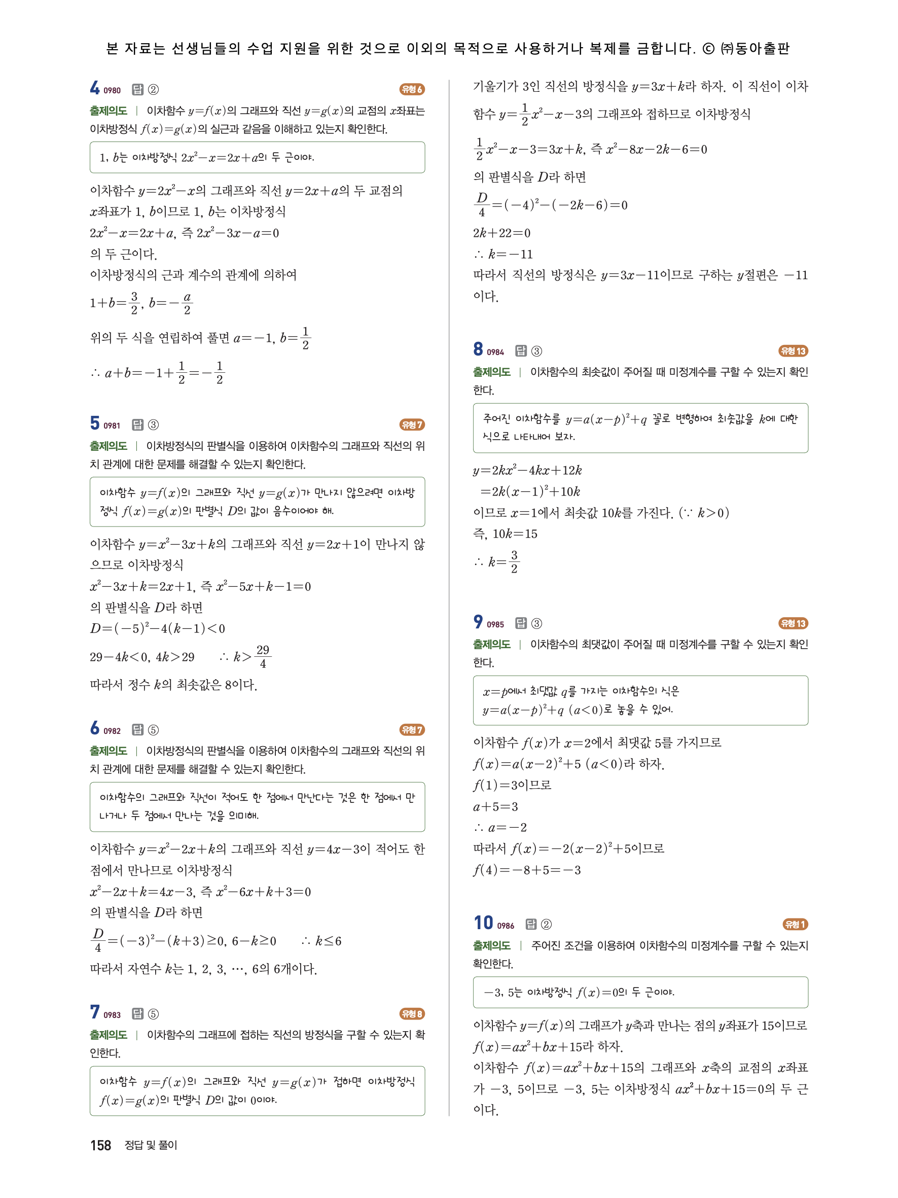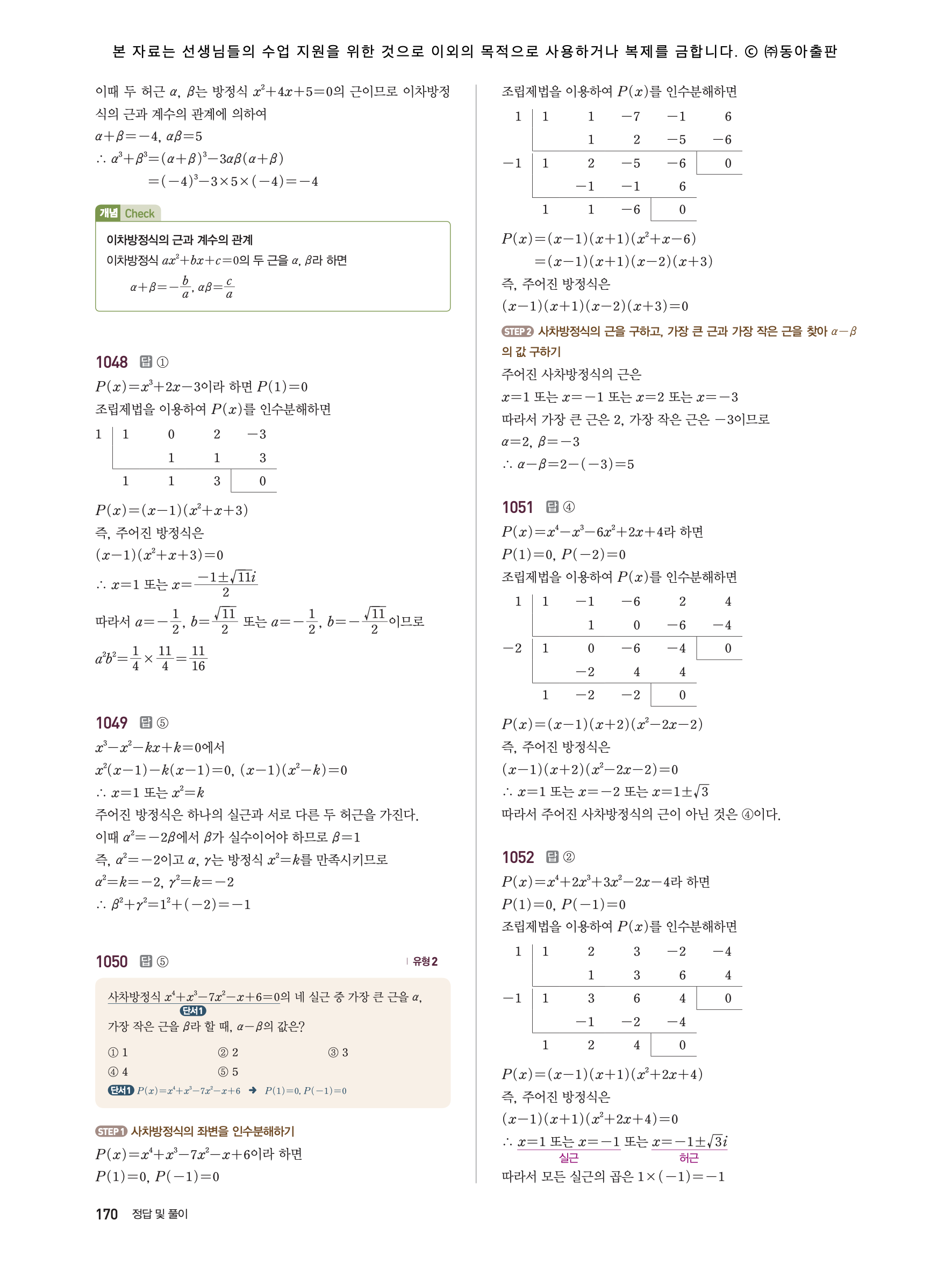 📥 고등 수매씽 공통수학 공수1 답지 해설 풀이 빠른답지 PDF 다운로드