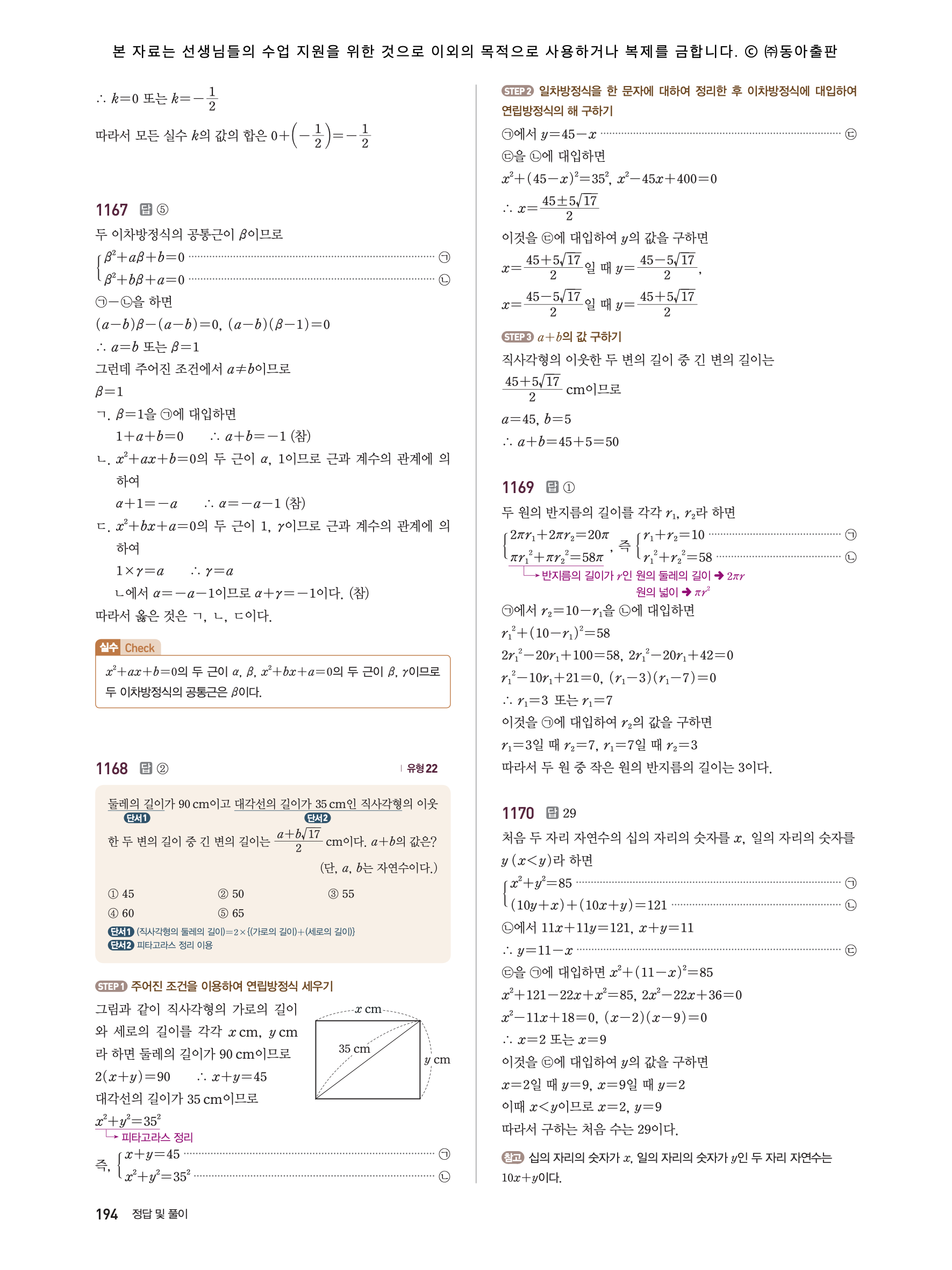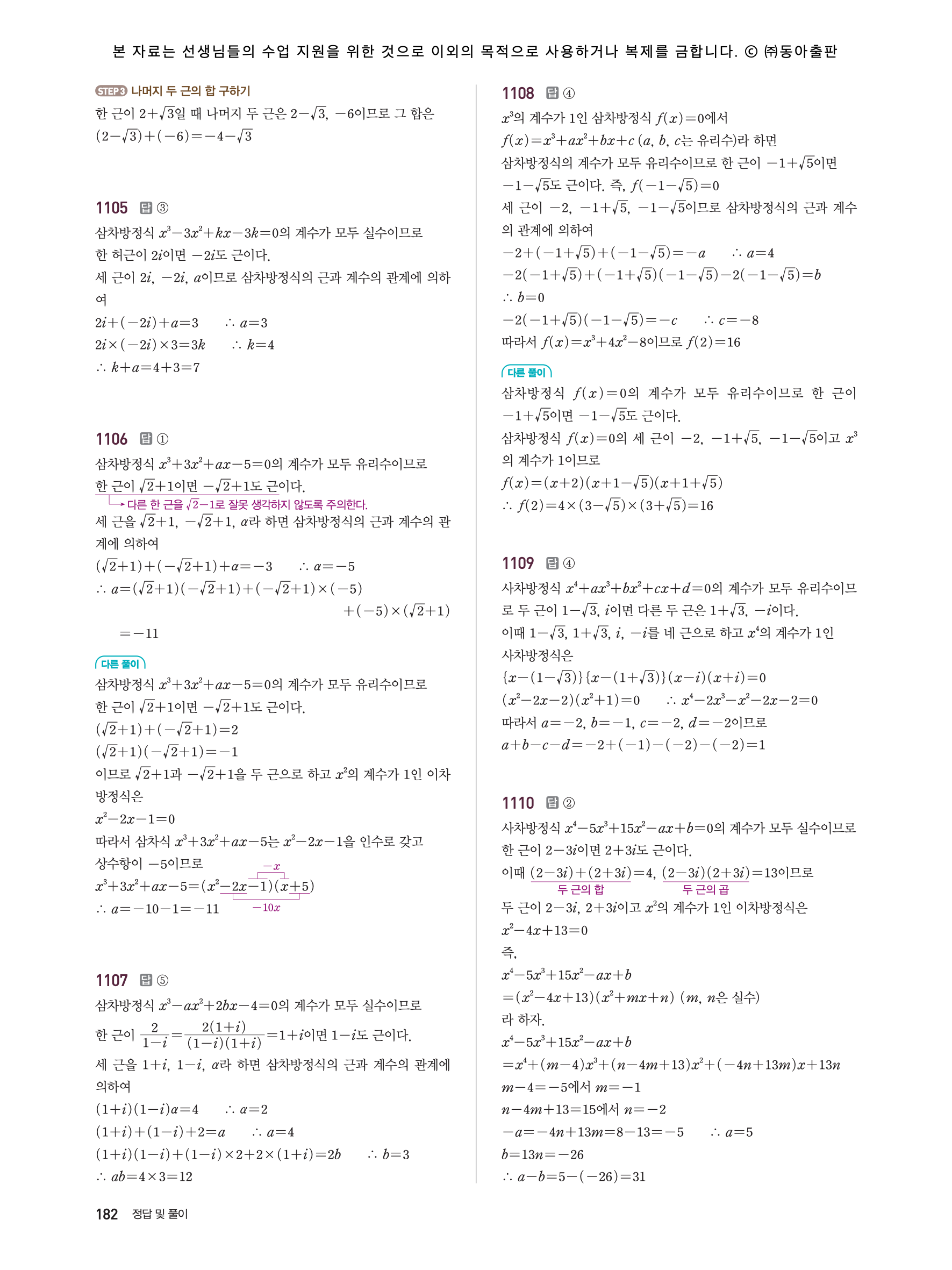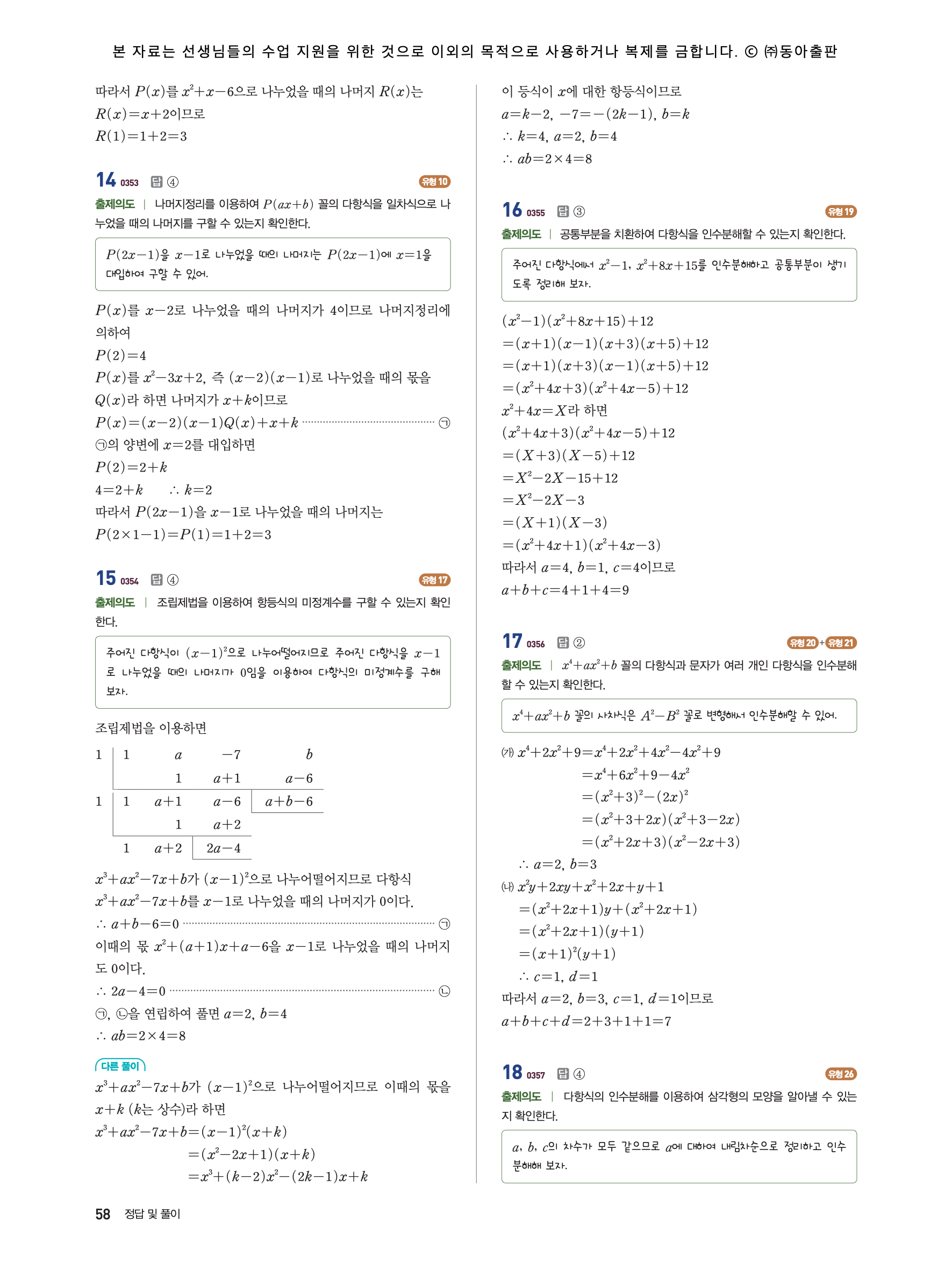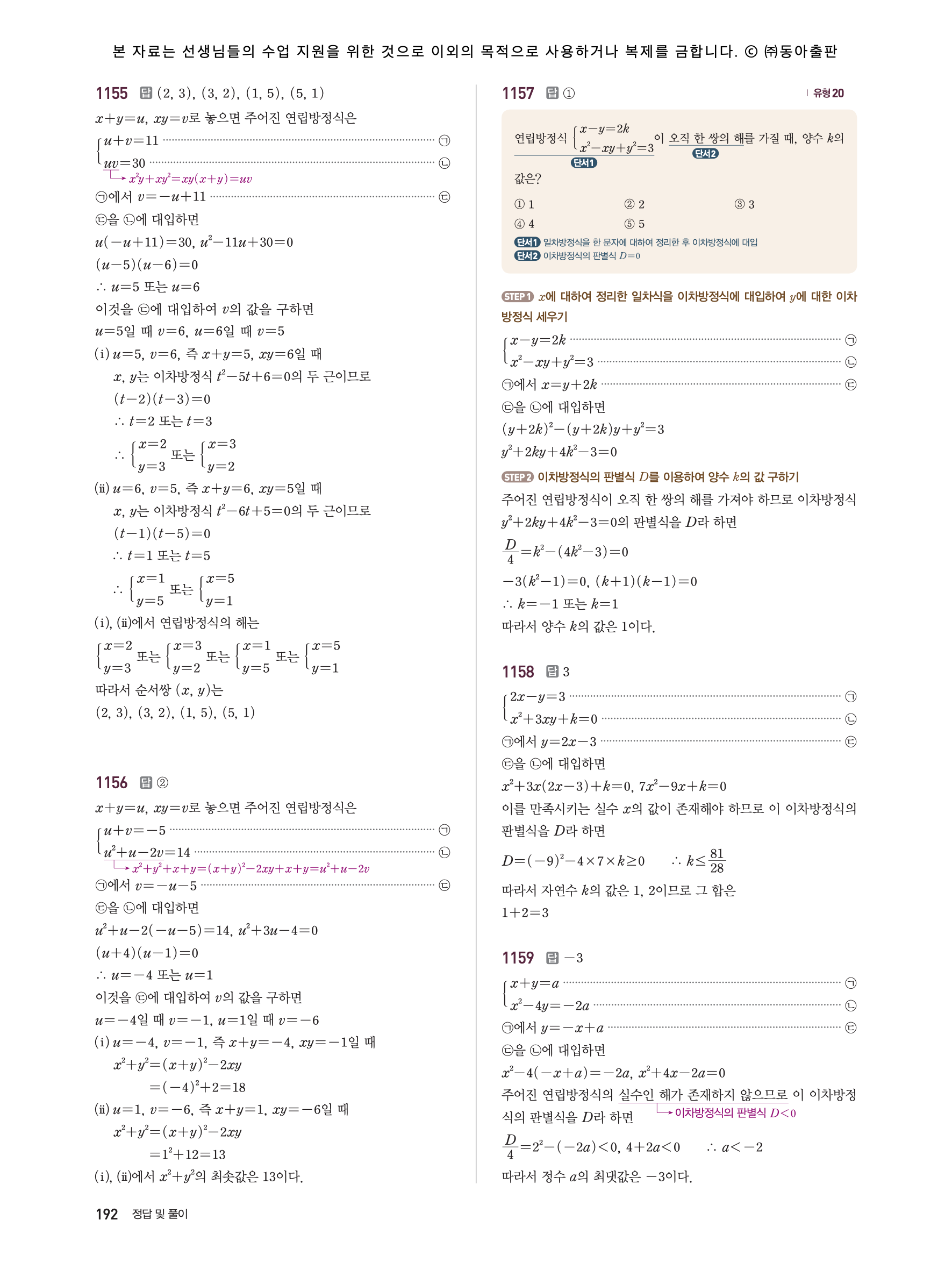 📌 고등 수매씽 공통수학 공수1 해설 PDF 다운로드