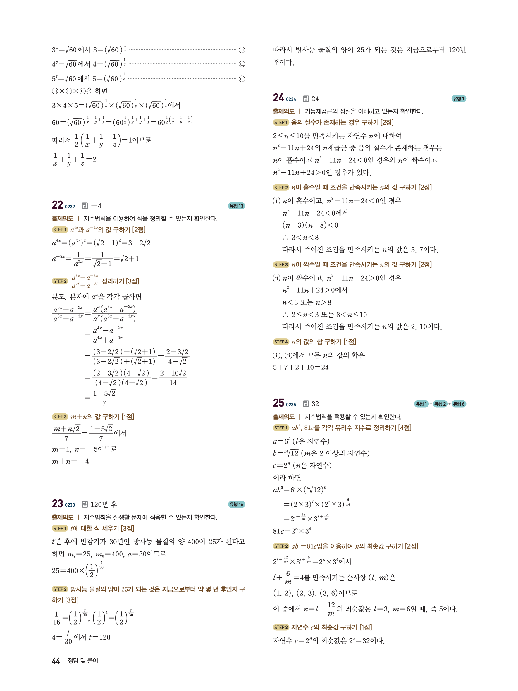 📢 수매씽 수학1 수1 답지 해설 풀이 빠른답지 PDF 다운로드