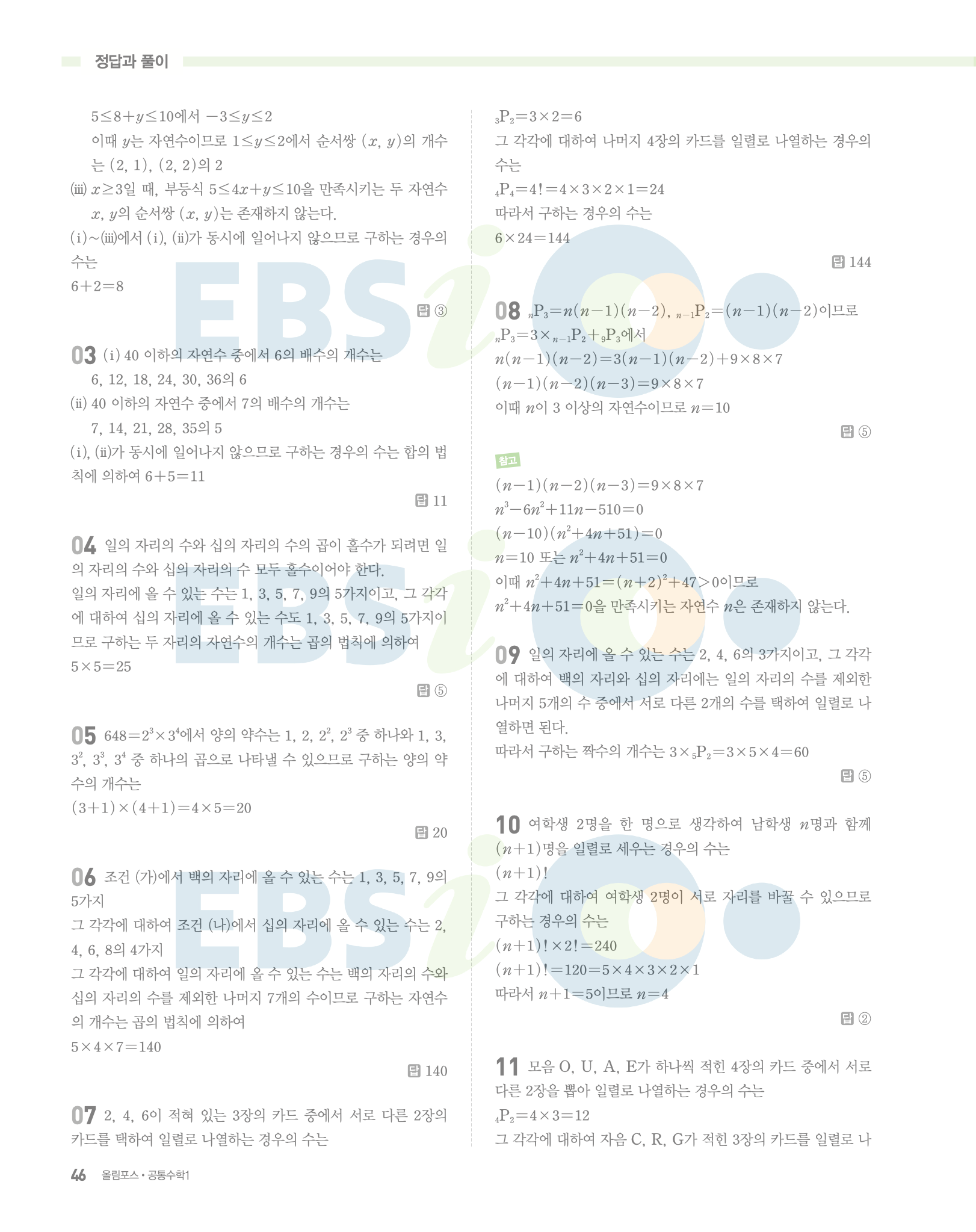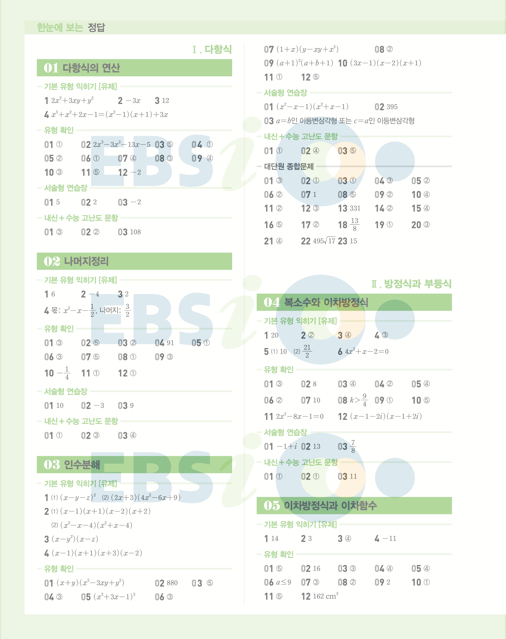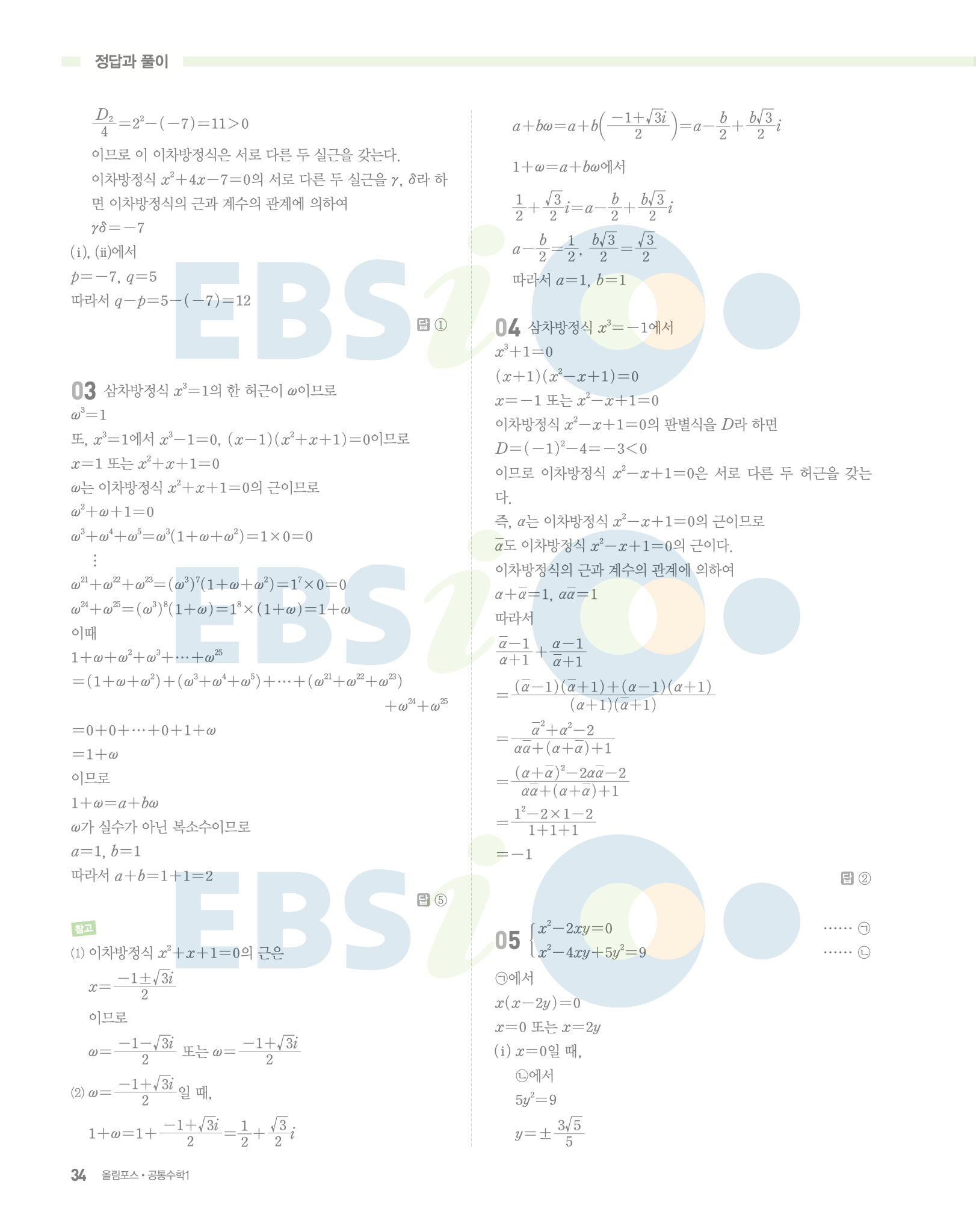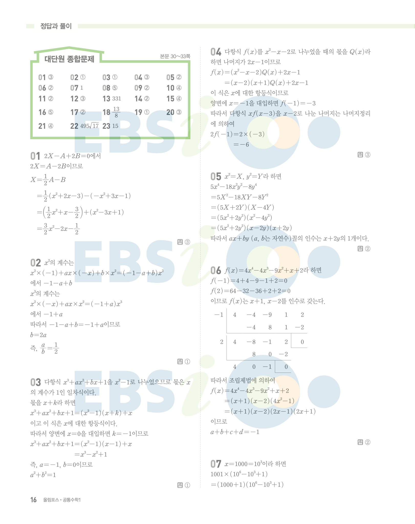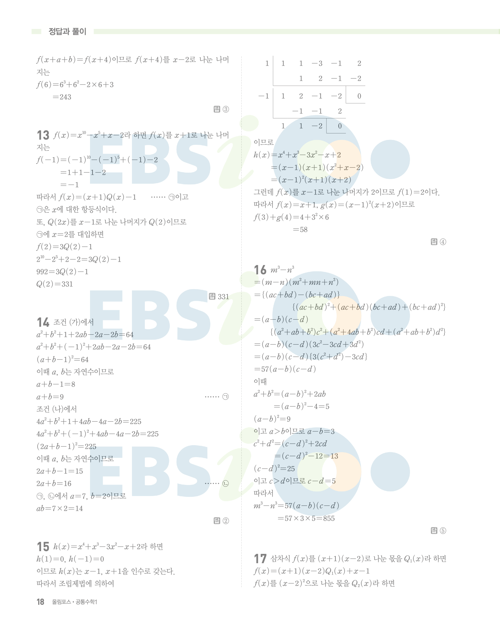 📌 ebs 올림포스 공통수학1 정답 및 풀이 PDF 다운로드