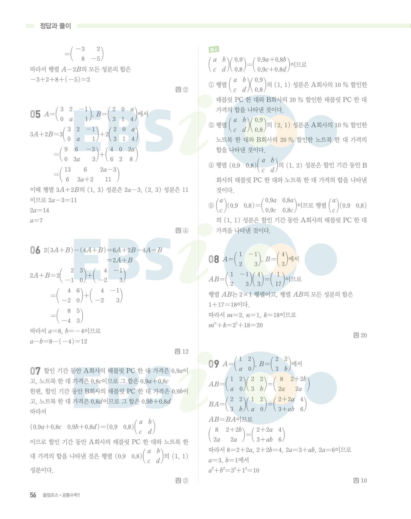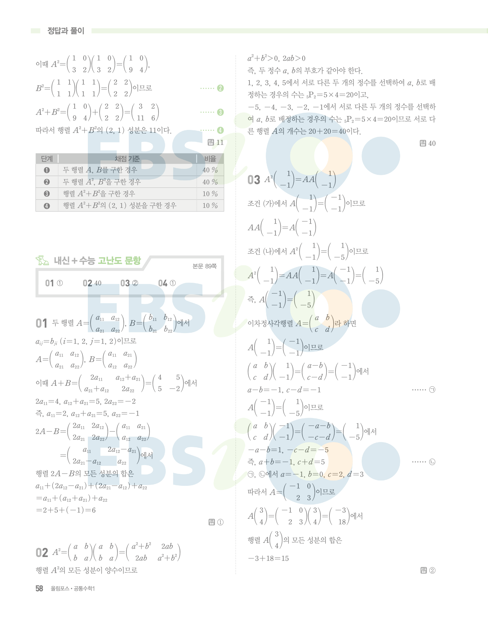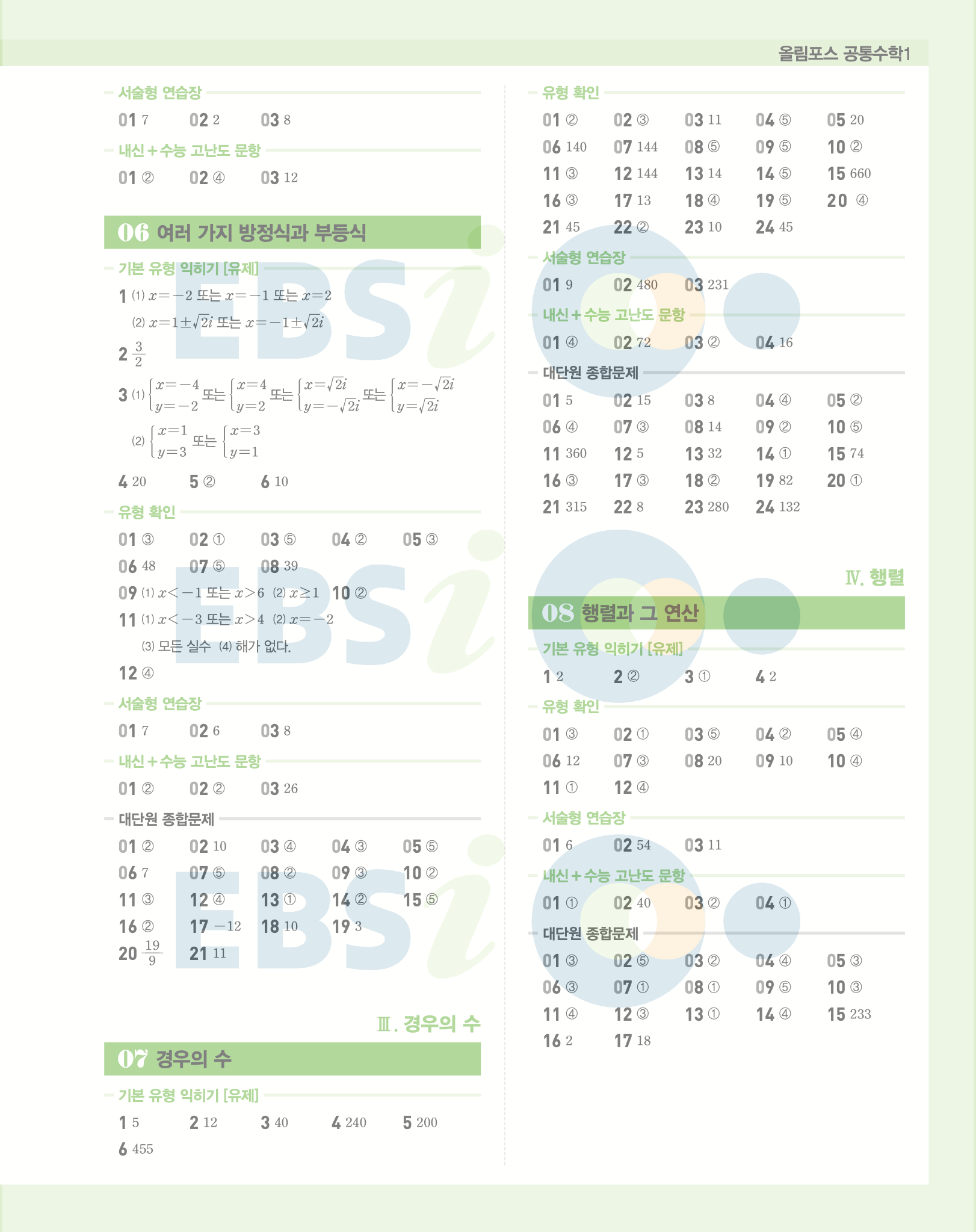 📌 ebs 올림포스 공통수학1 빠른답지 PDF 다운로드