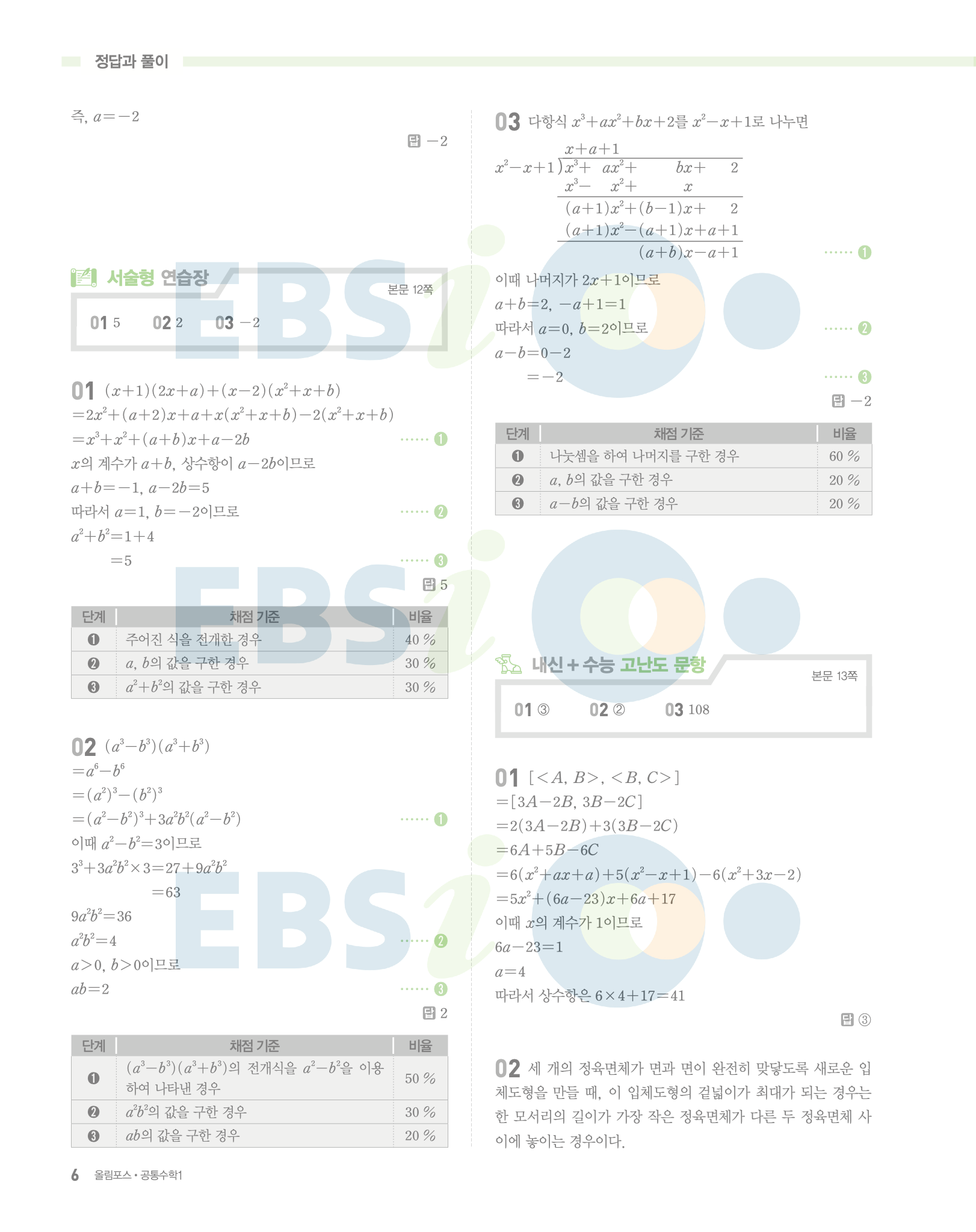 📥 ebs 올림포스 공통수학1 답지 해설 풀이 빠른답지 PDF 다운로드