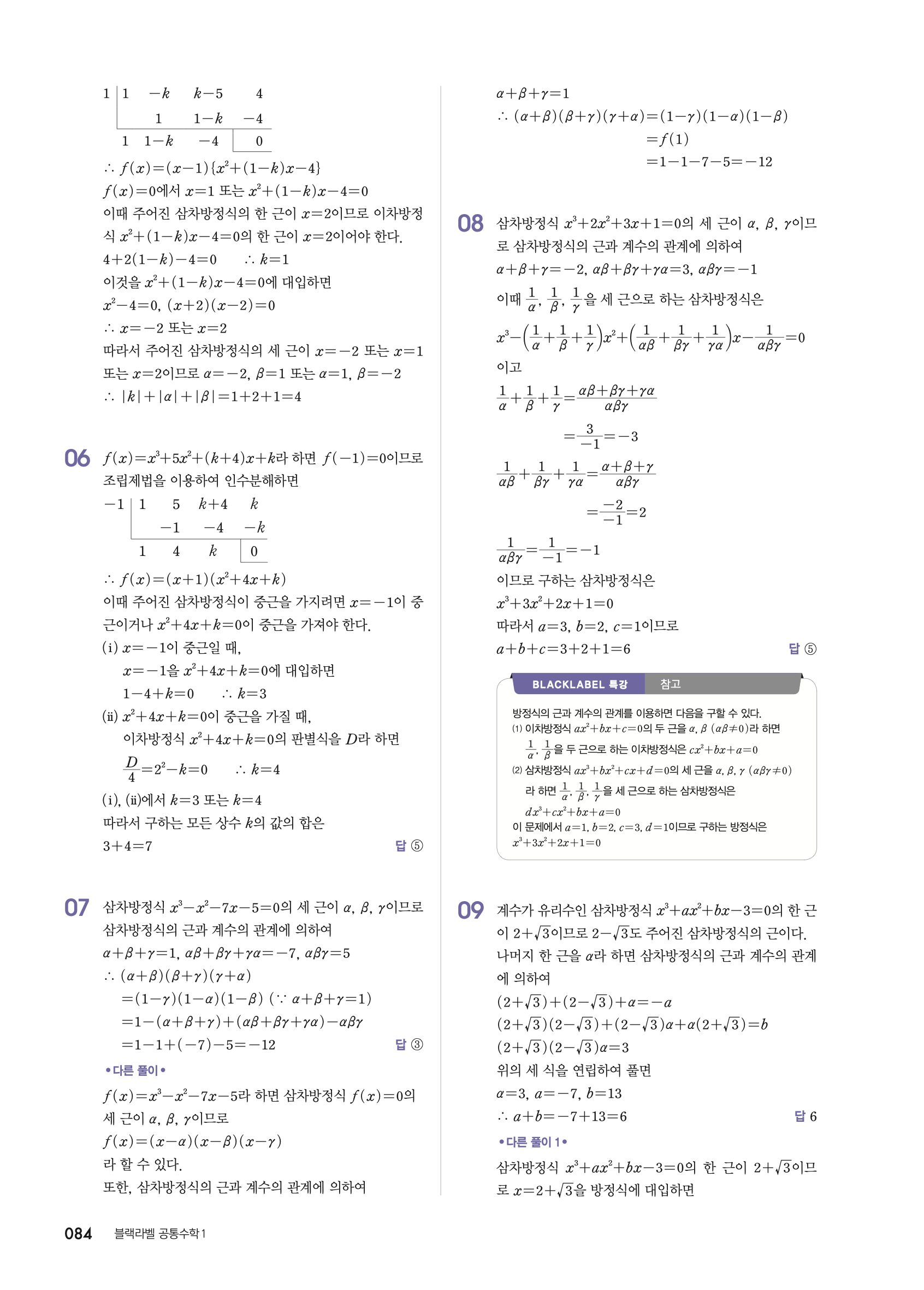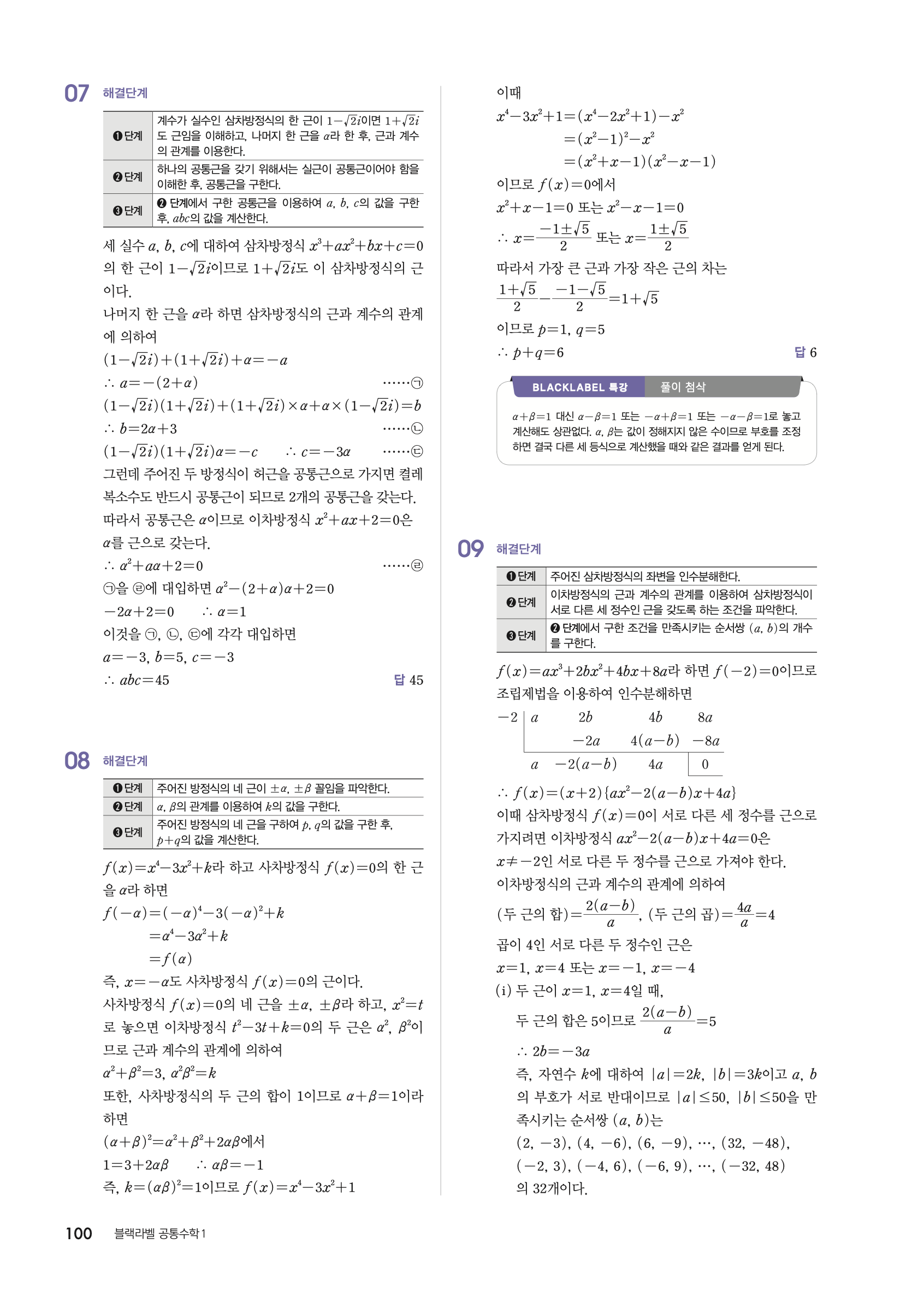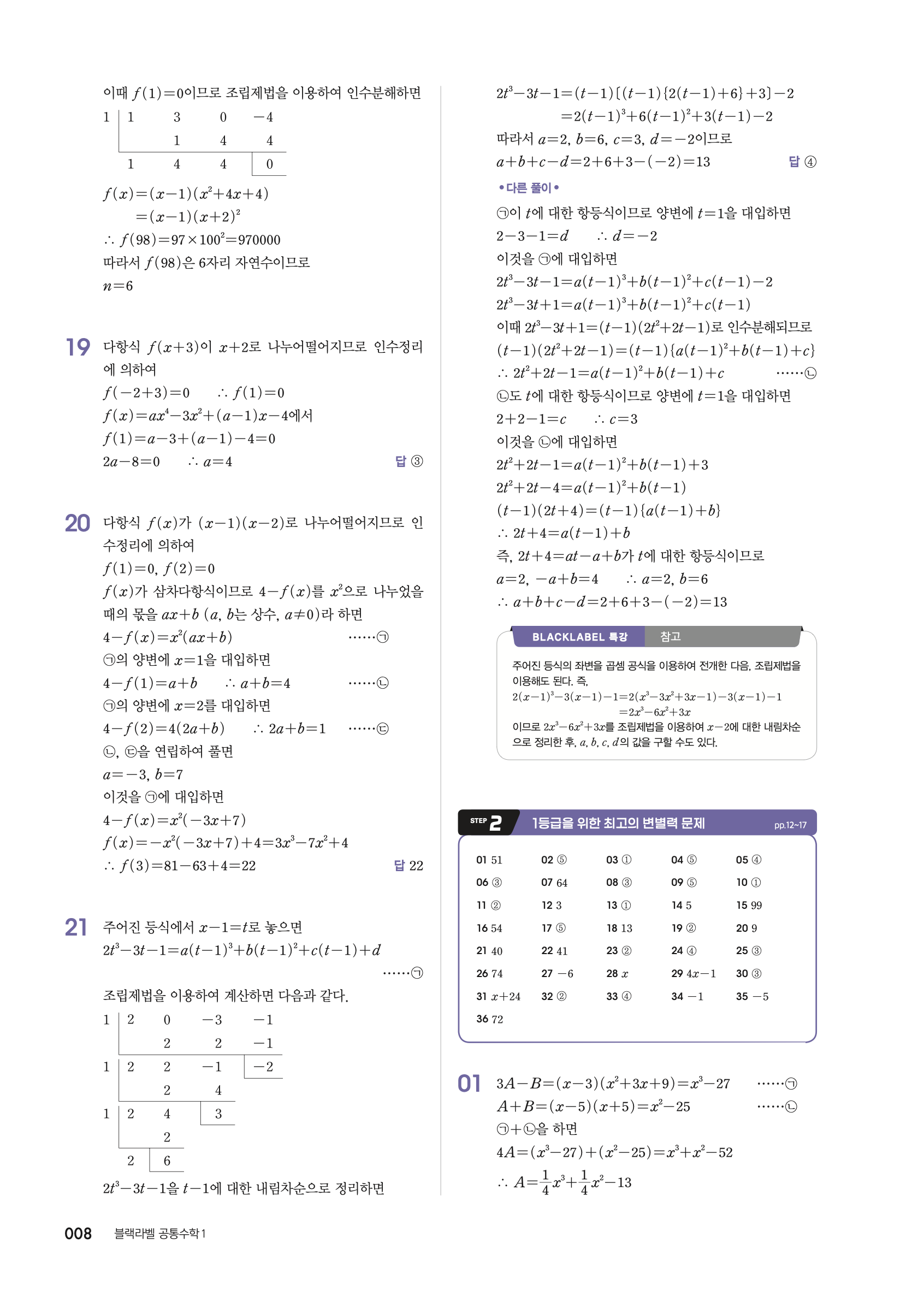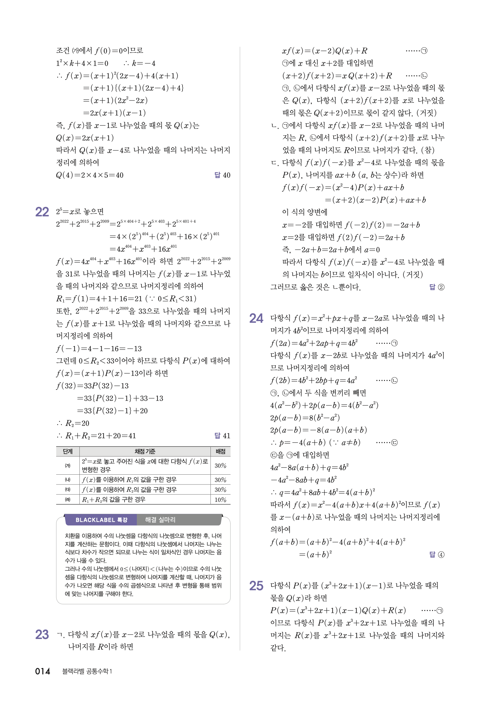📌 블랙라벨 공통수학1 정답 및 풀이 PDF 다운로드