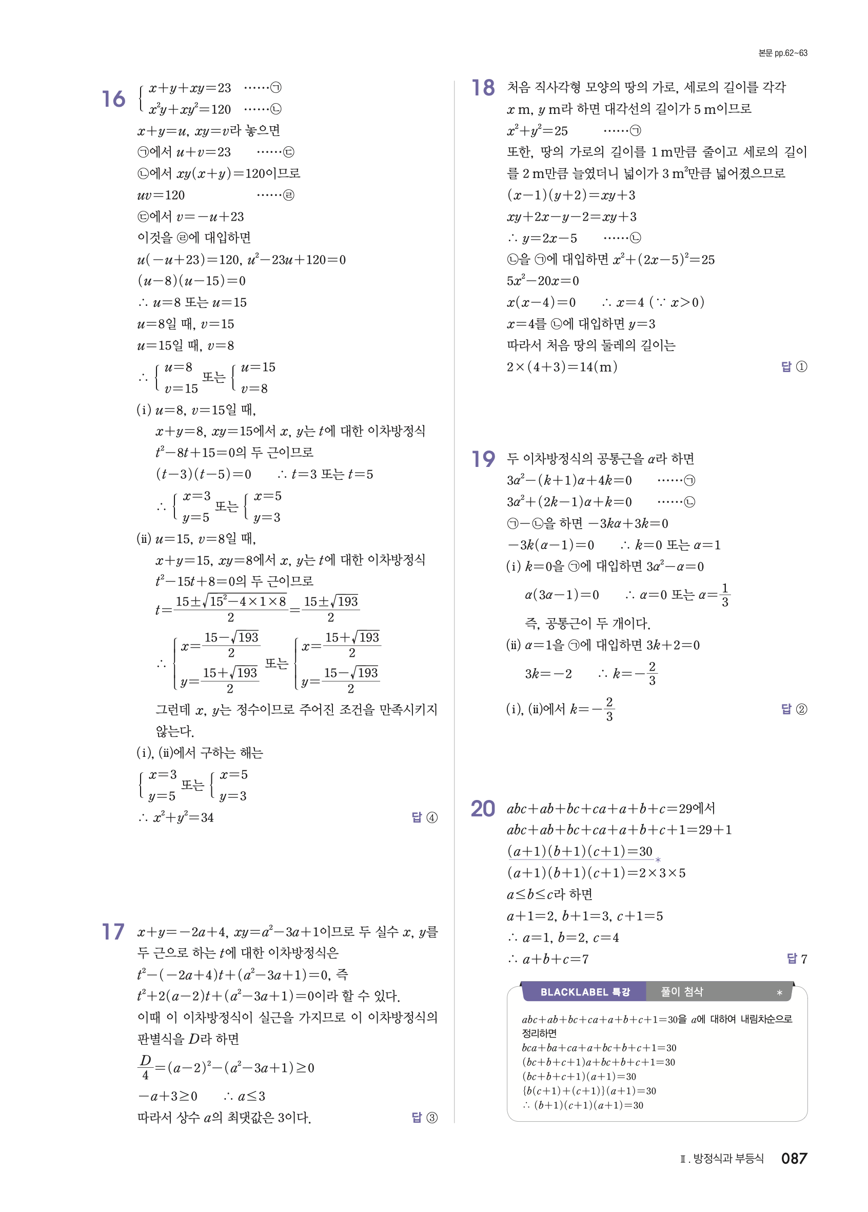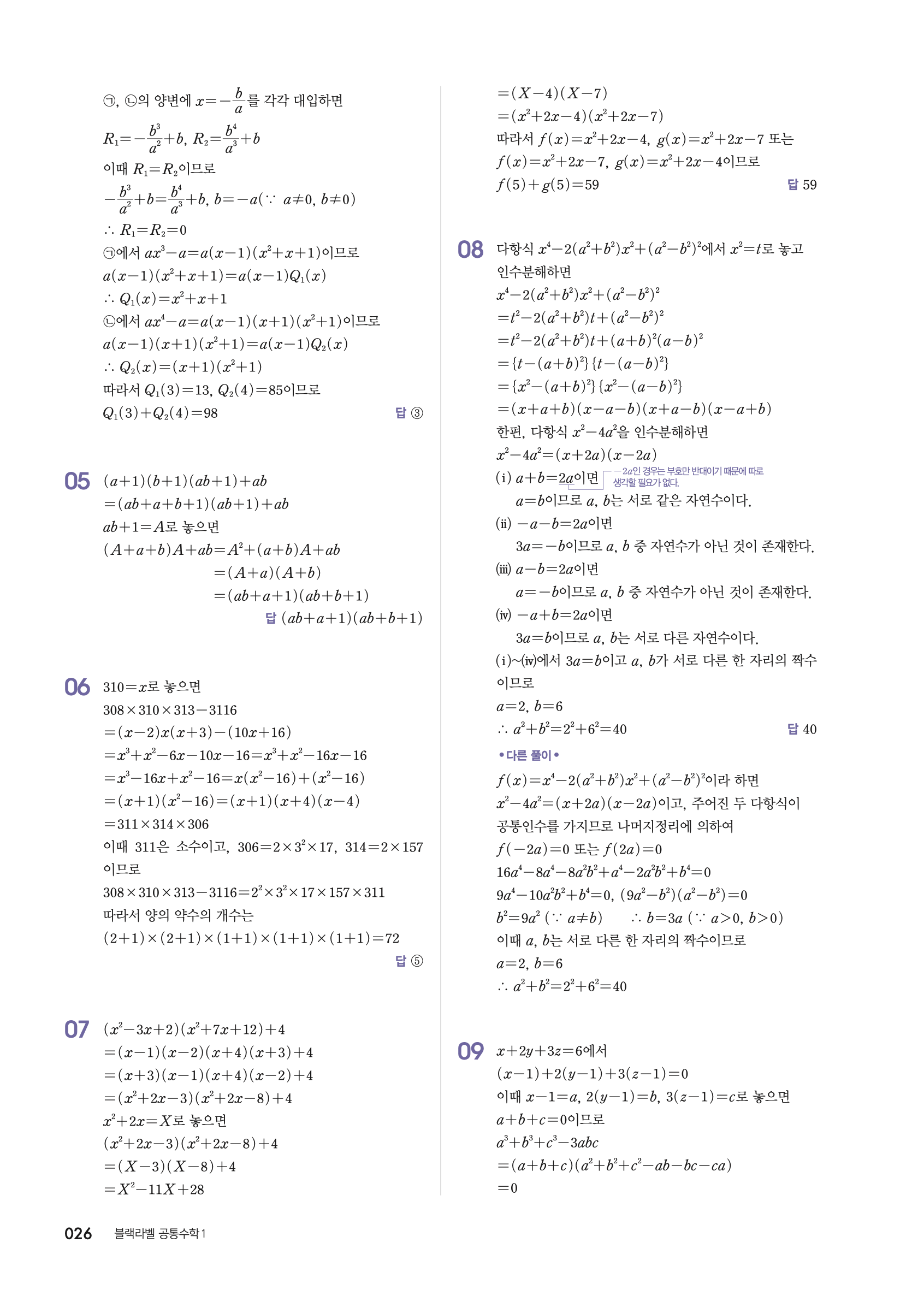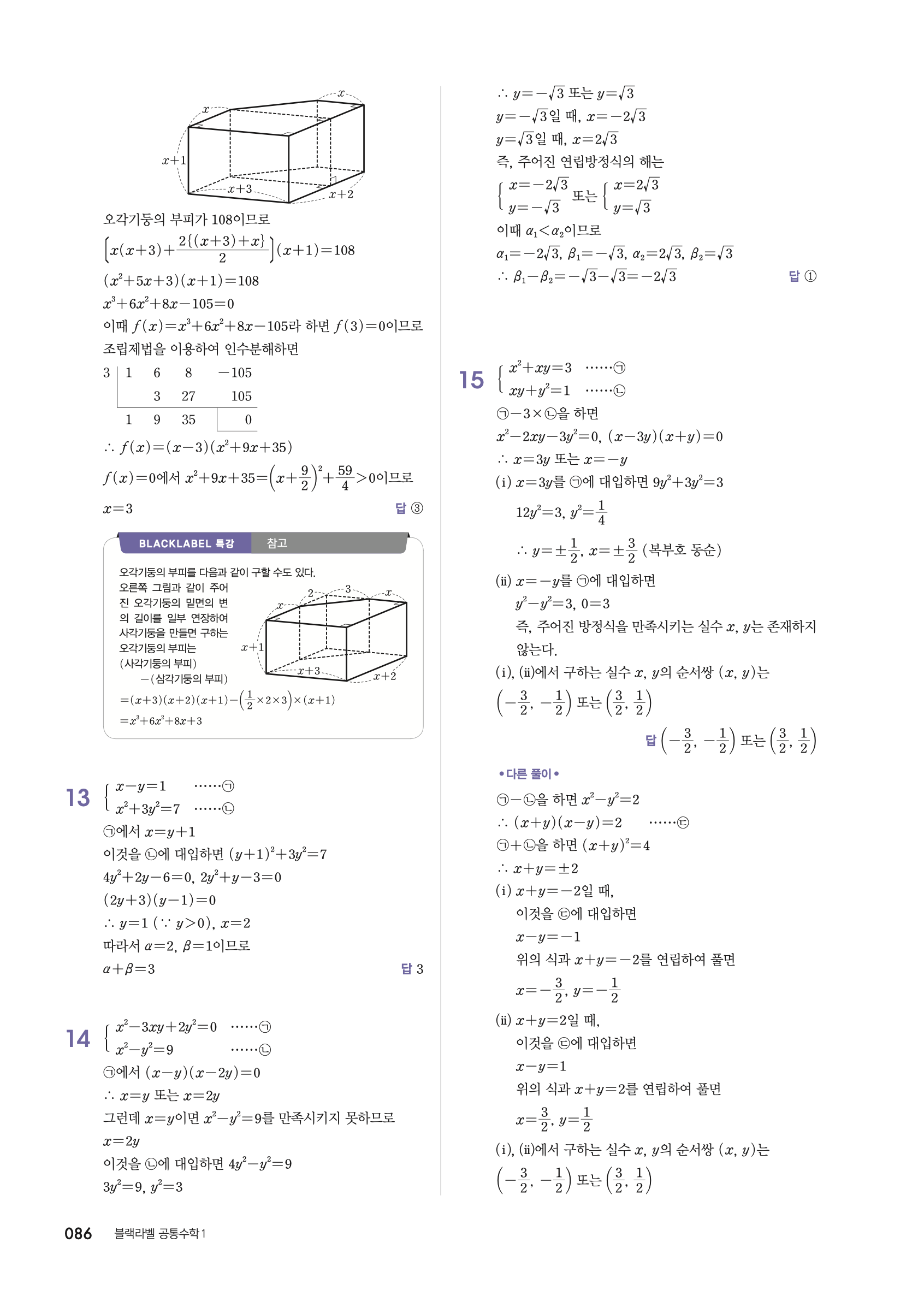 📌 블랙라벨 공통수학1 정답 및 풀이 PDF 다운로드