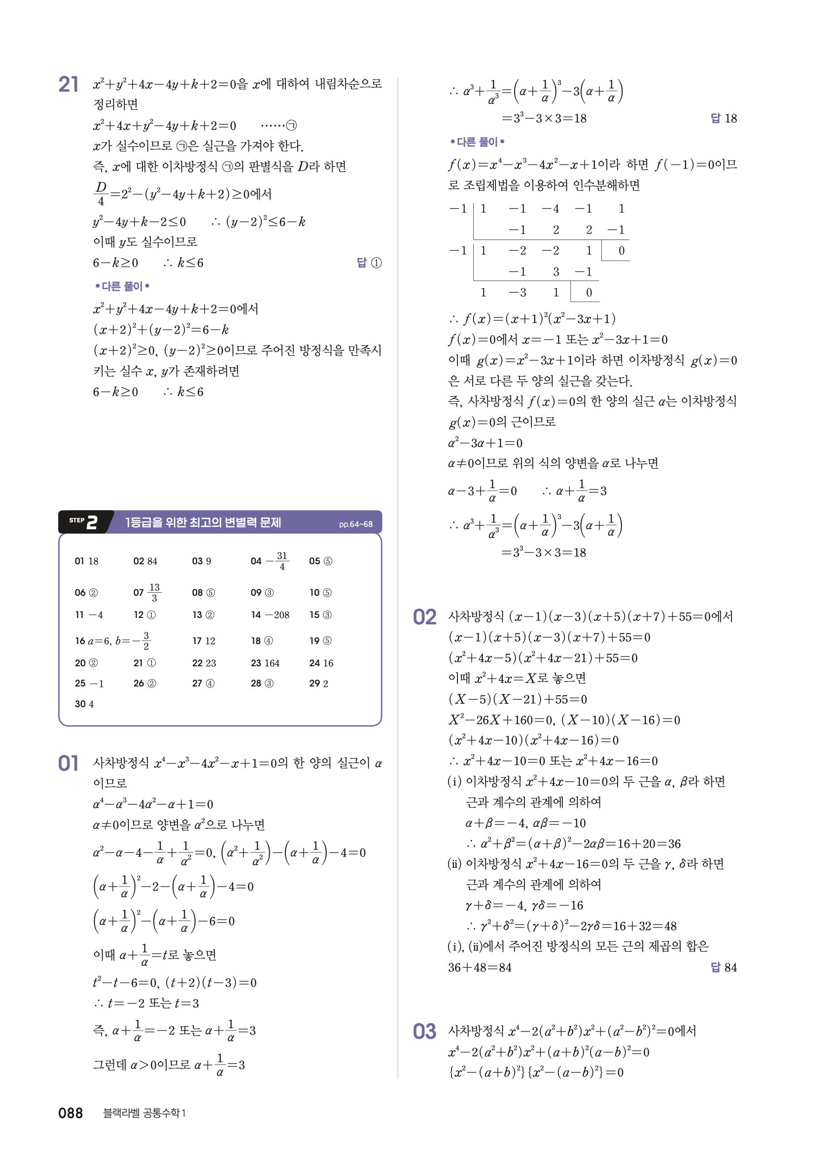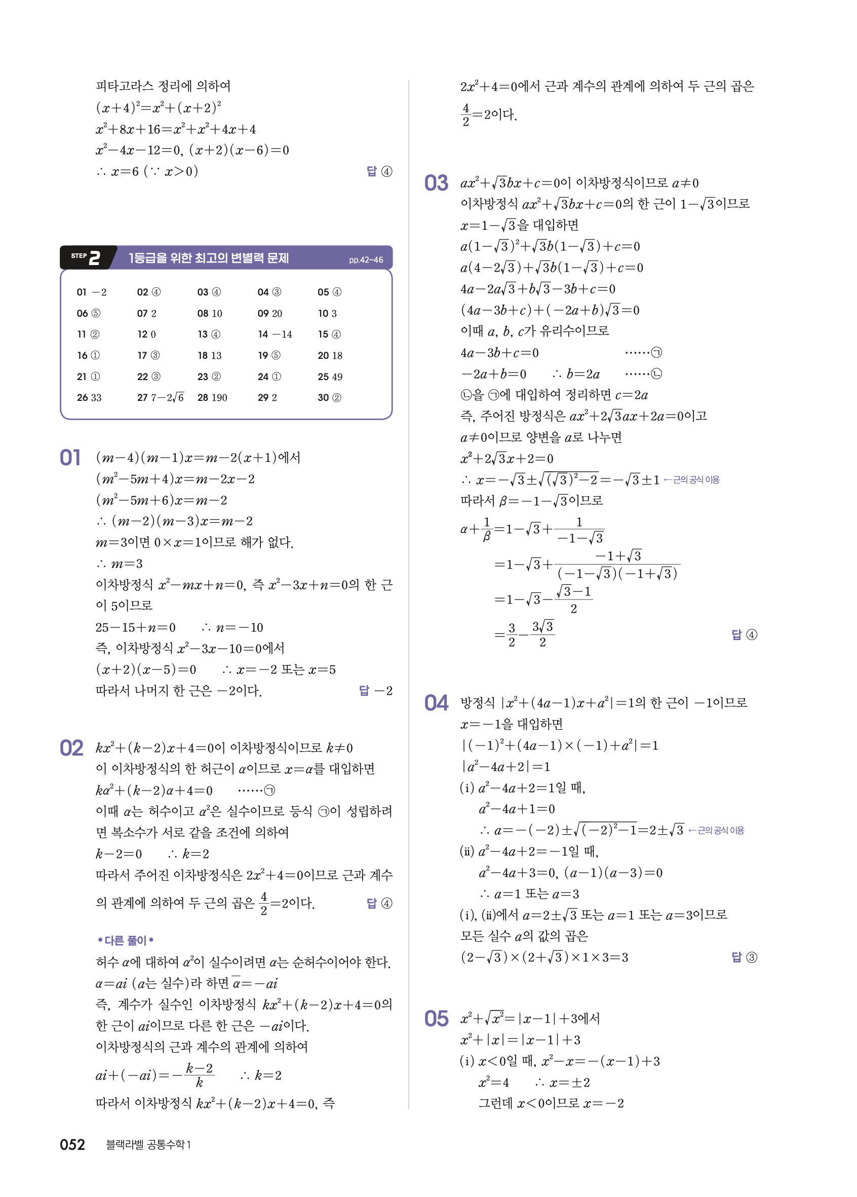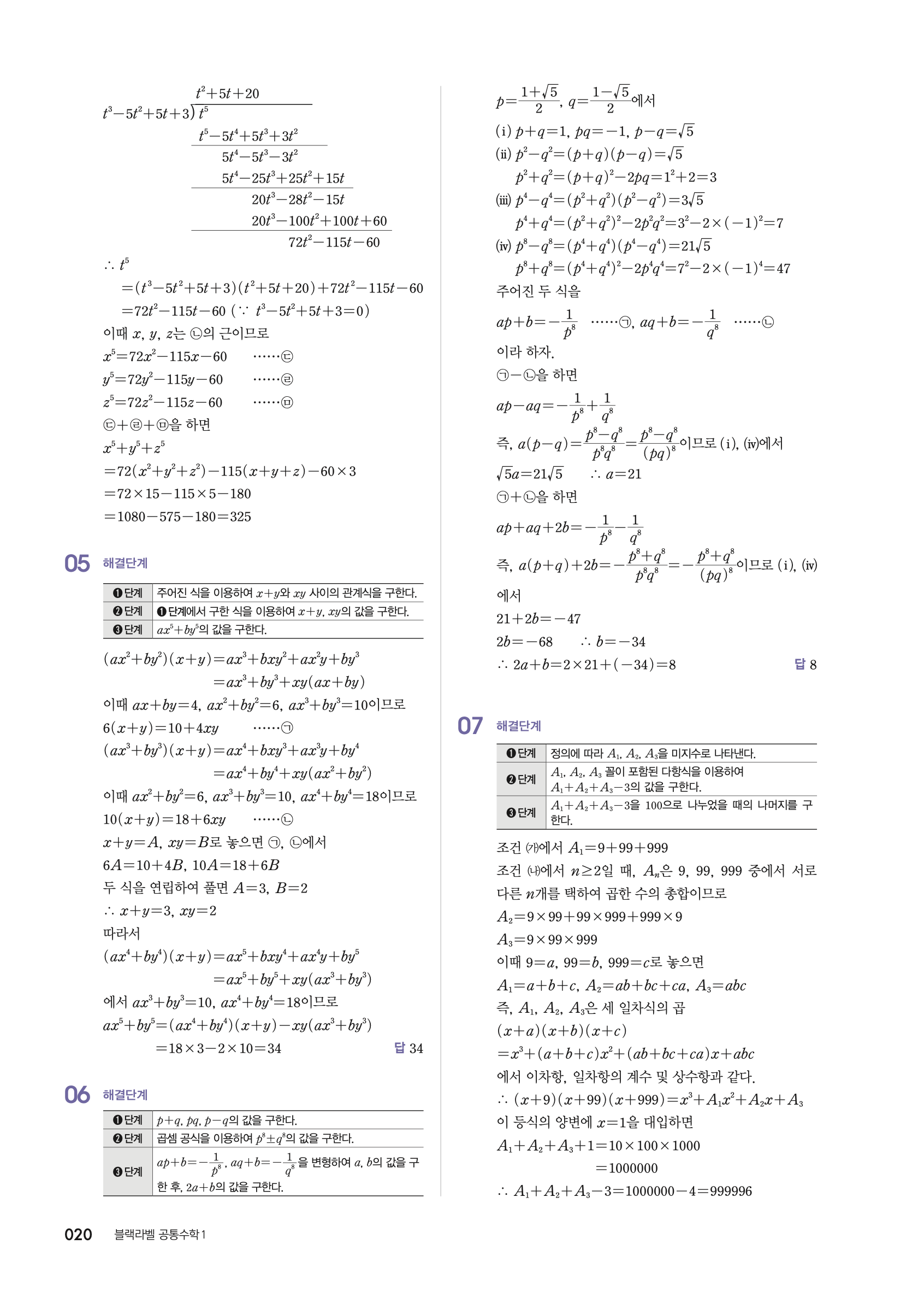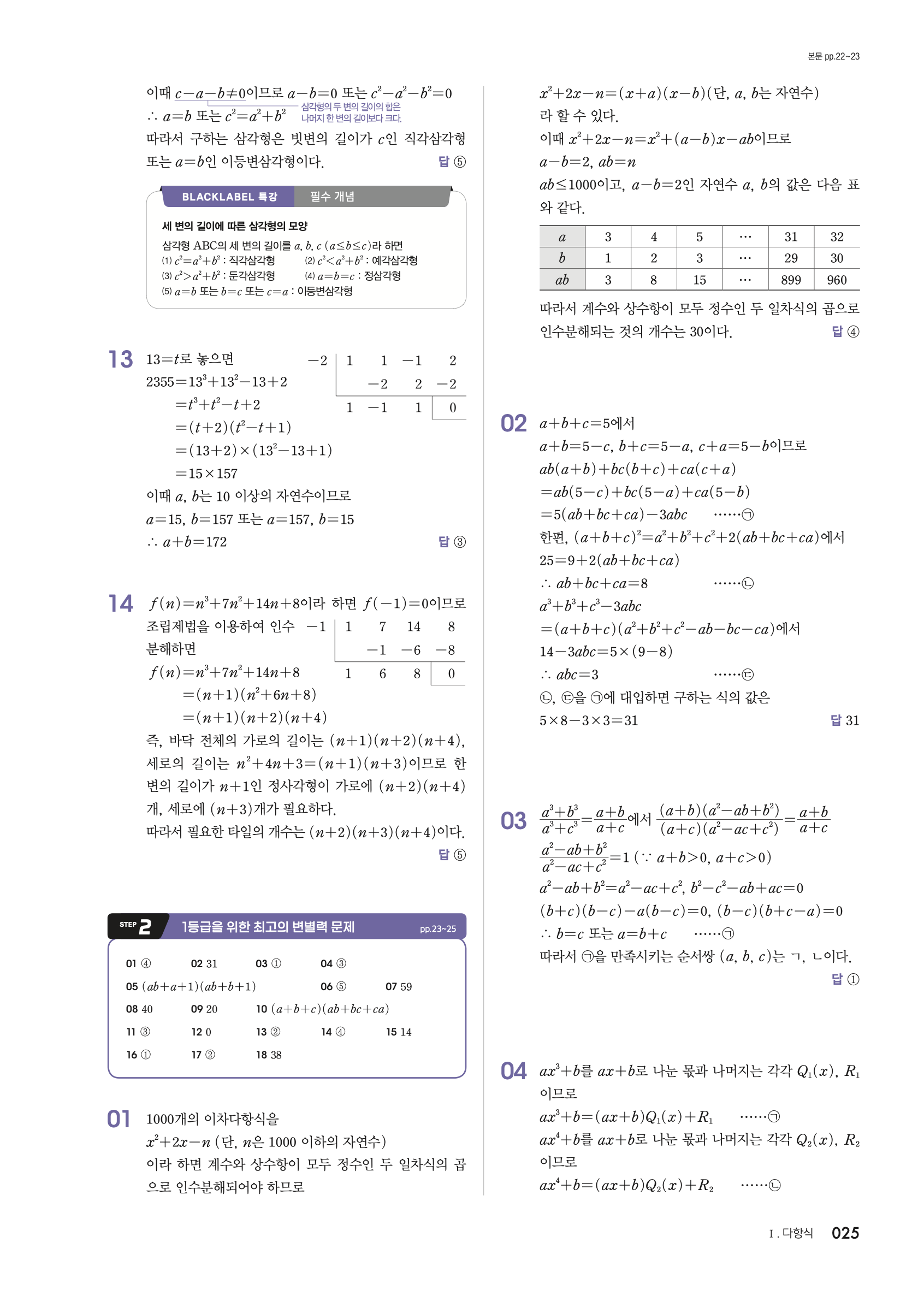 📌 블랙라벨 공통수학1 정답 및 풀이 PDF 다운로드