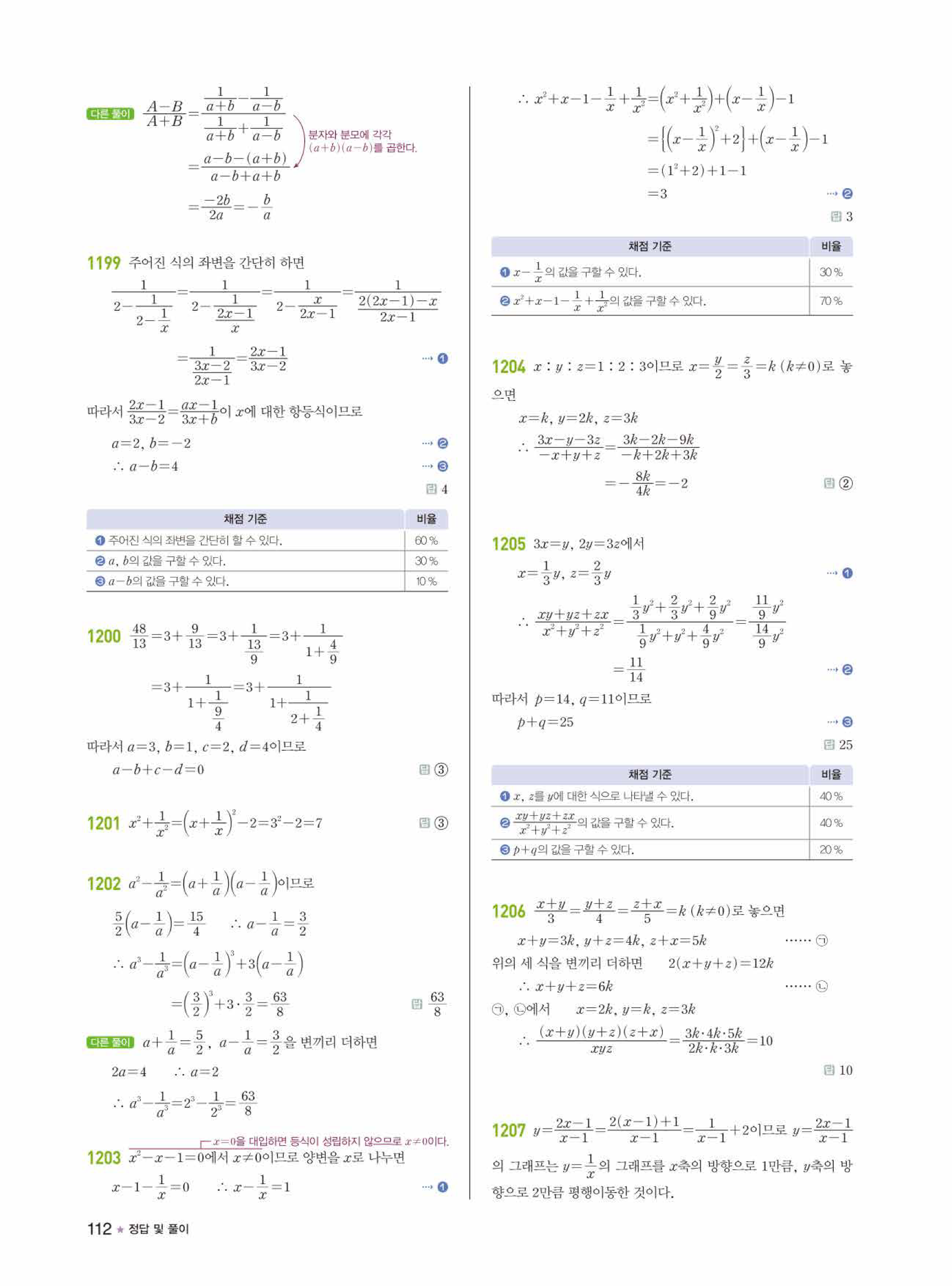 📌 라이트쎈 공통수학2 빠른답지 PDF 다운로드