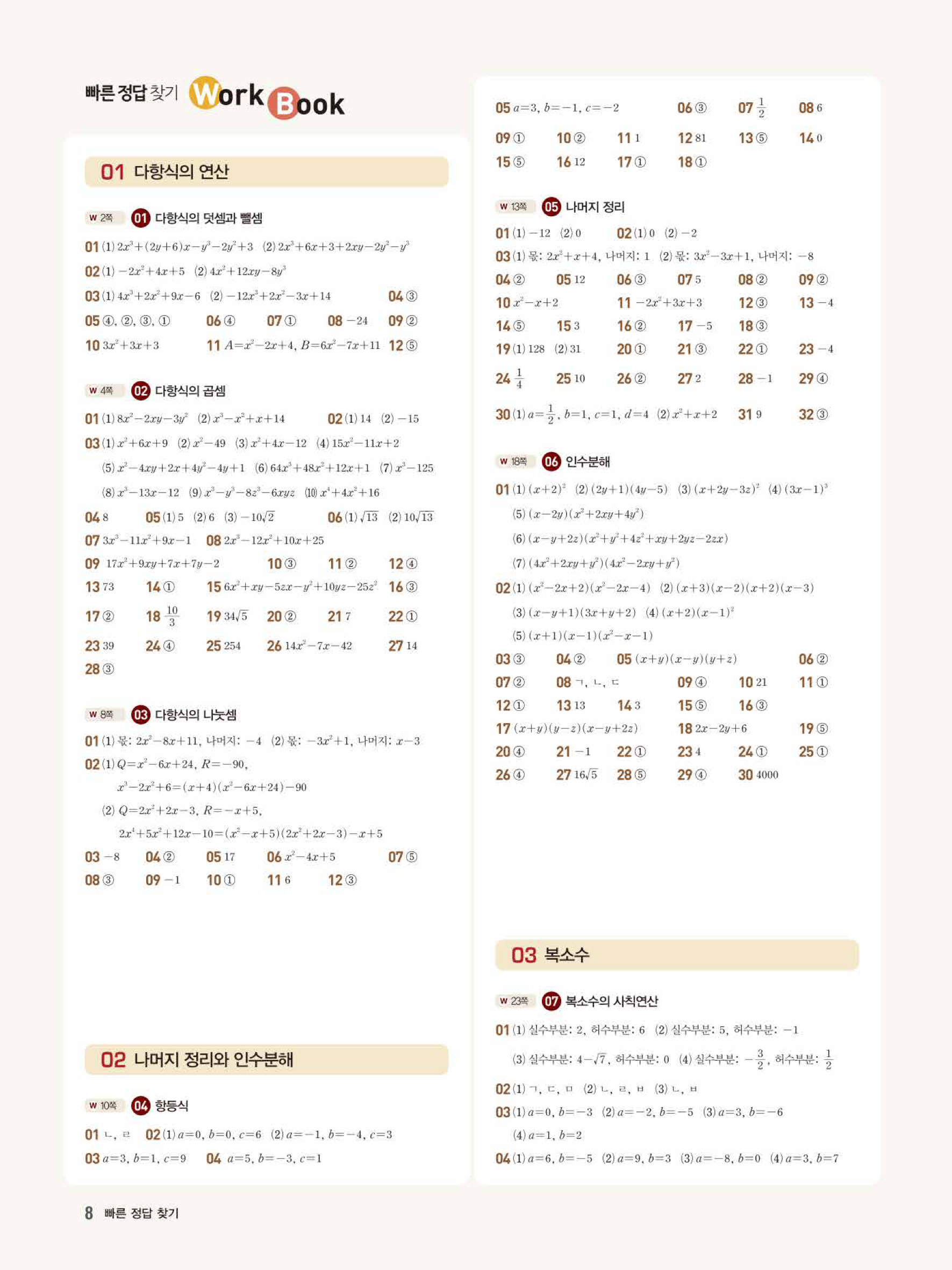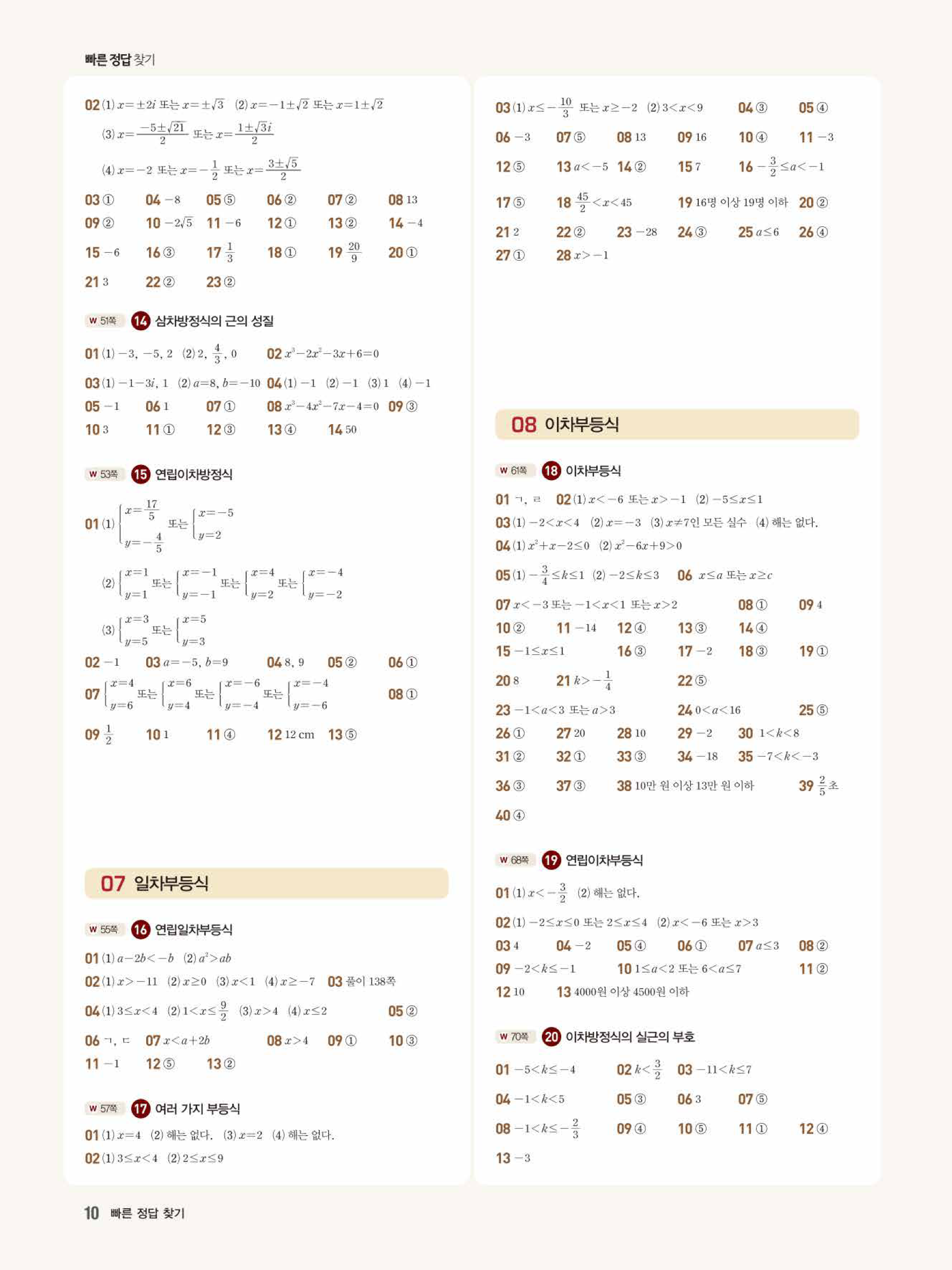 📌 우공비큐 Q+Q 공통수학1 빠른답지 PDF 다운로드