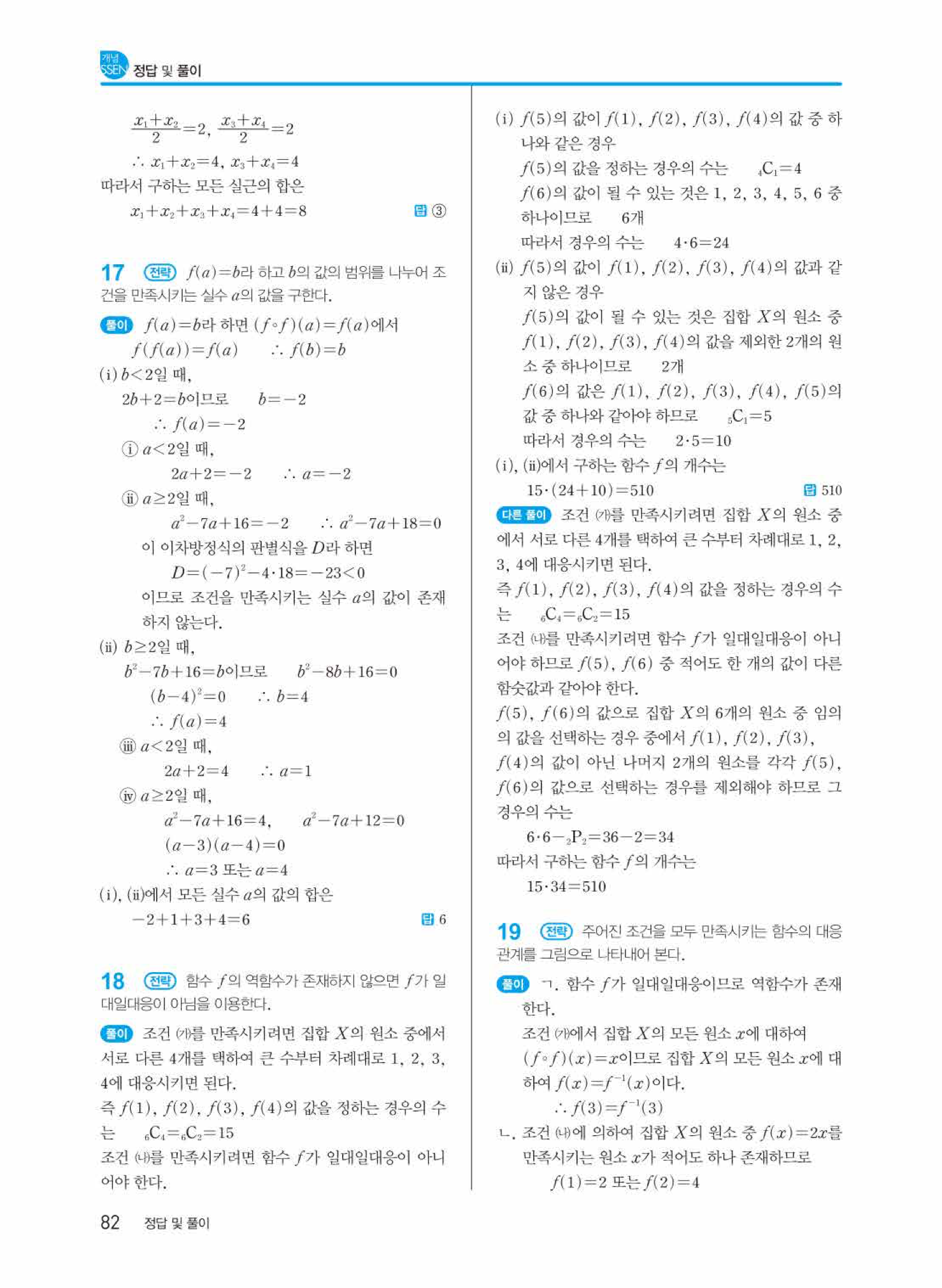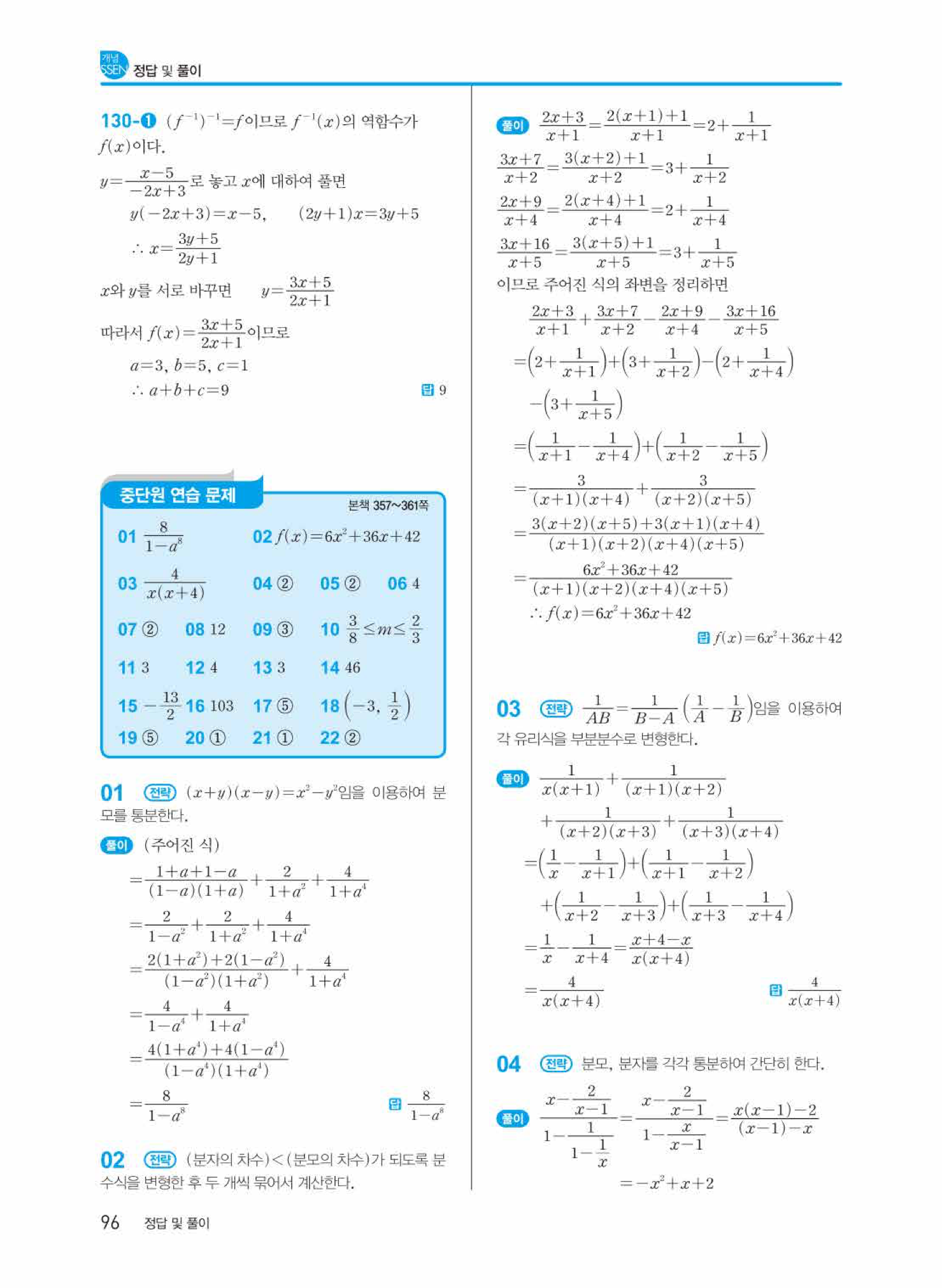 📌 개념쎈 공통수학2 빠른답지 PDF 다운로드