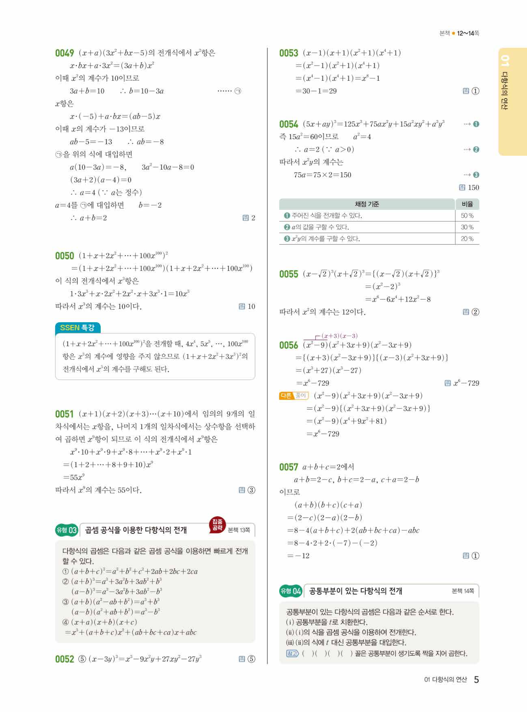 쎈 공통수학1 답지 고퀄 풀이해설 무료영상링크 제공