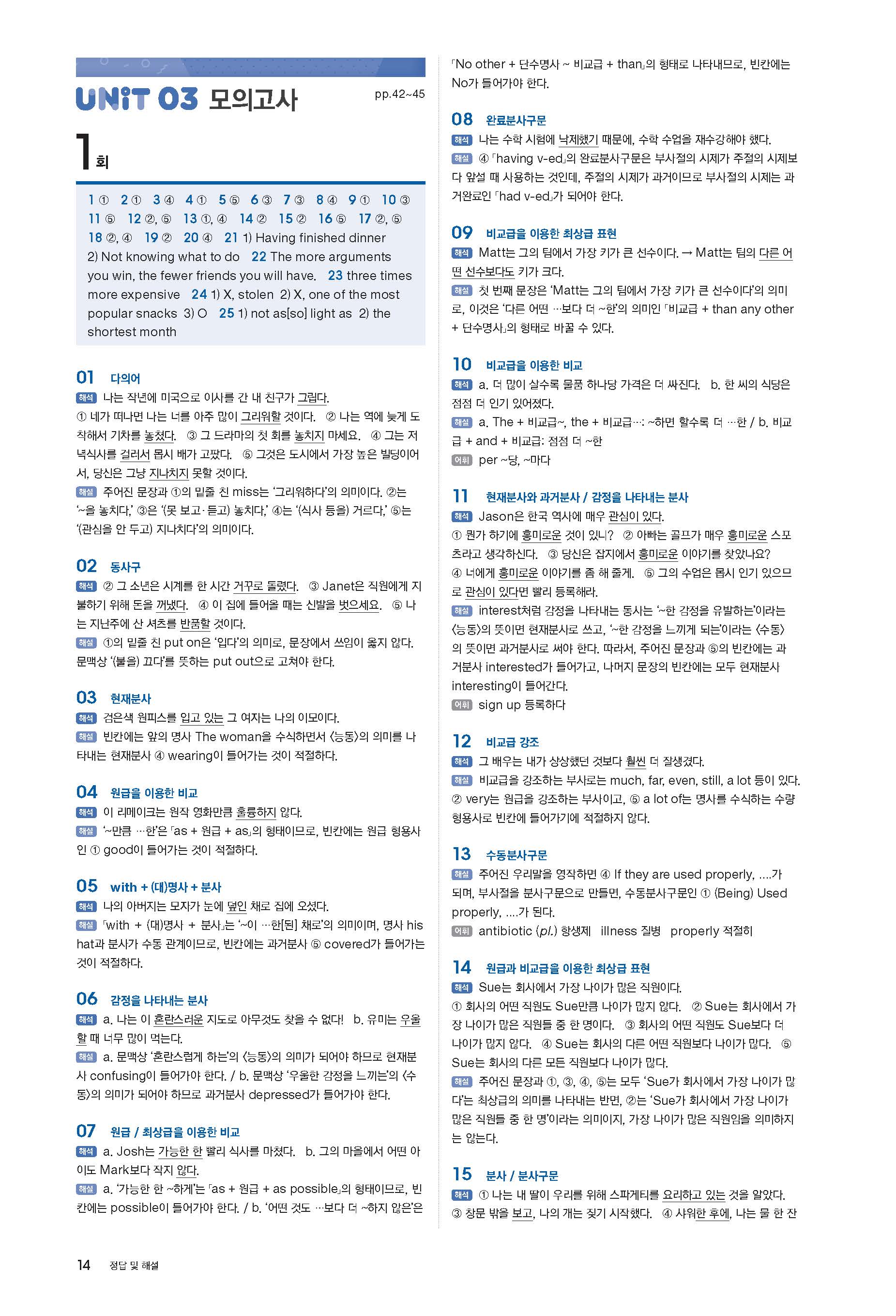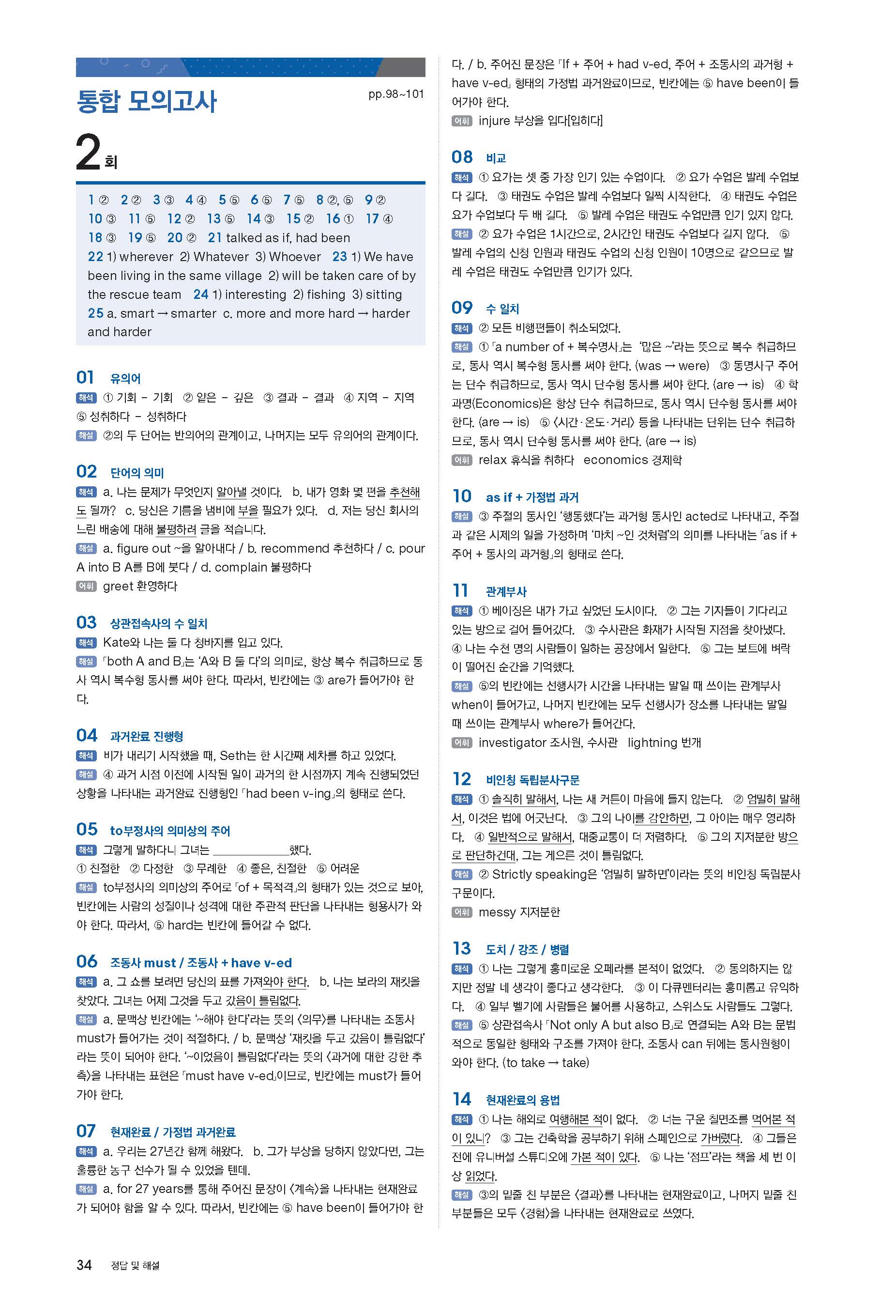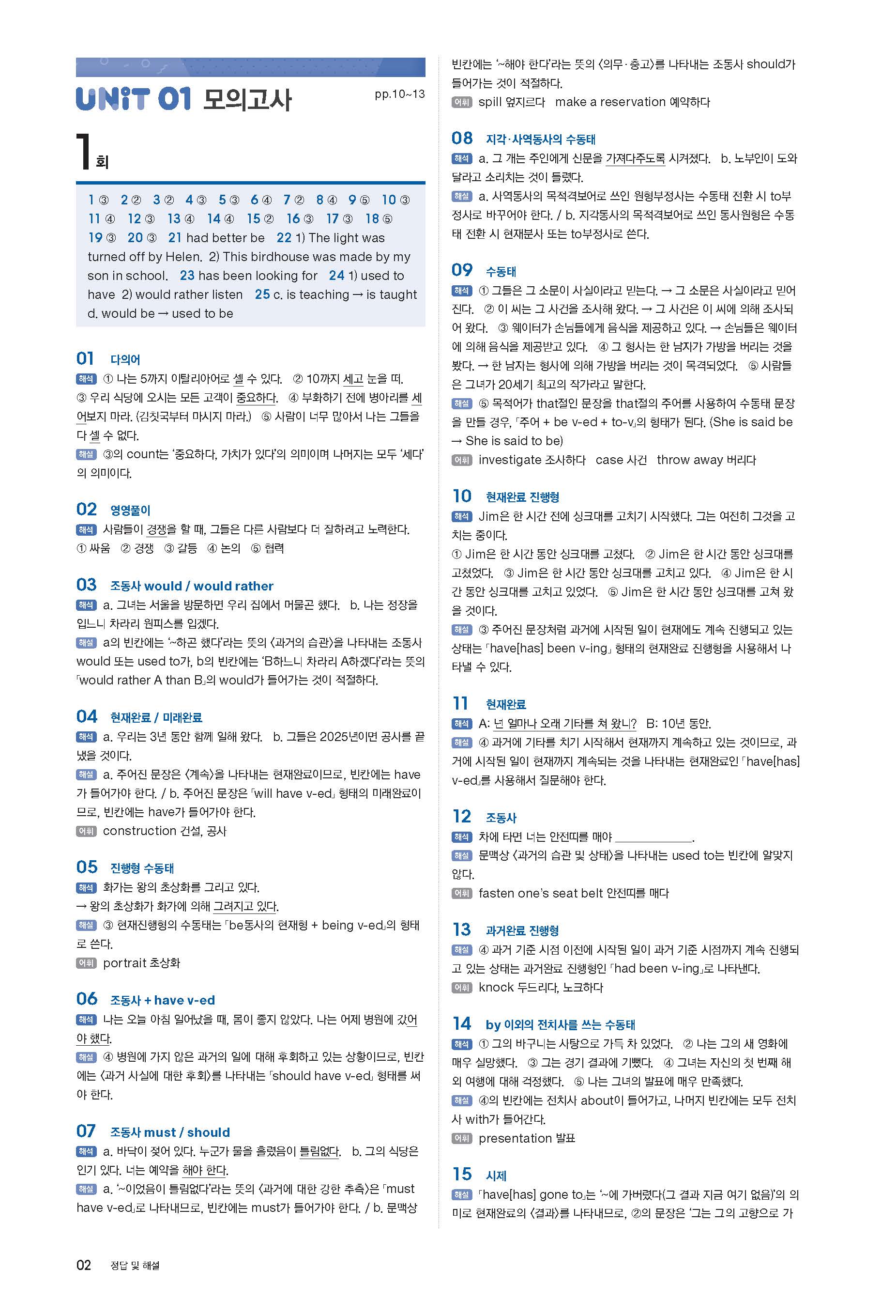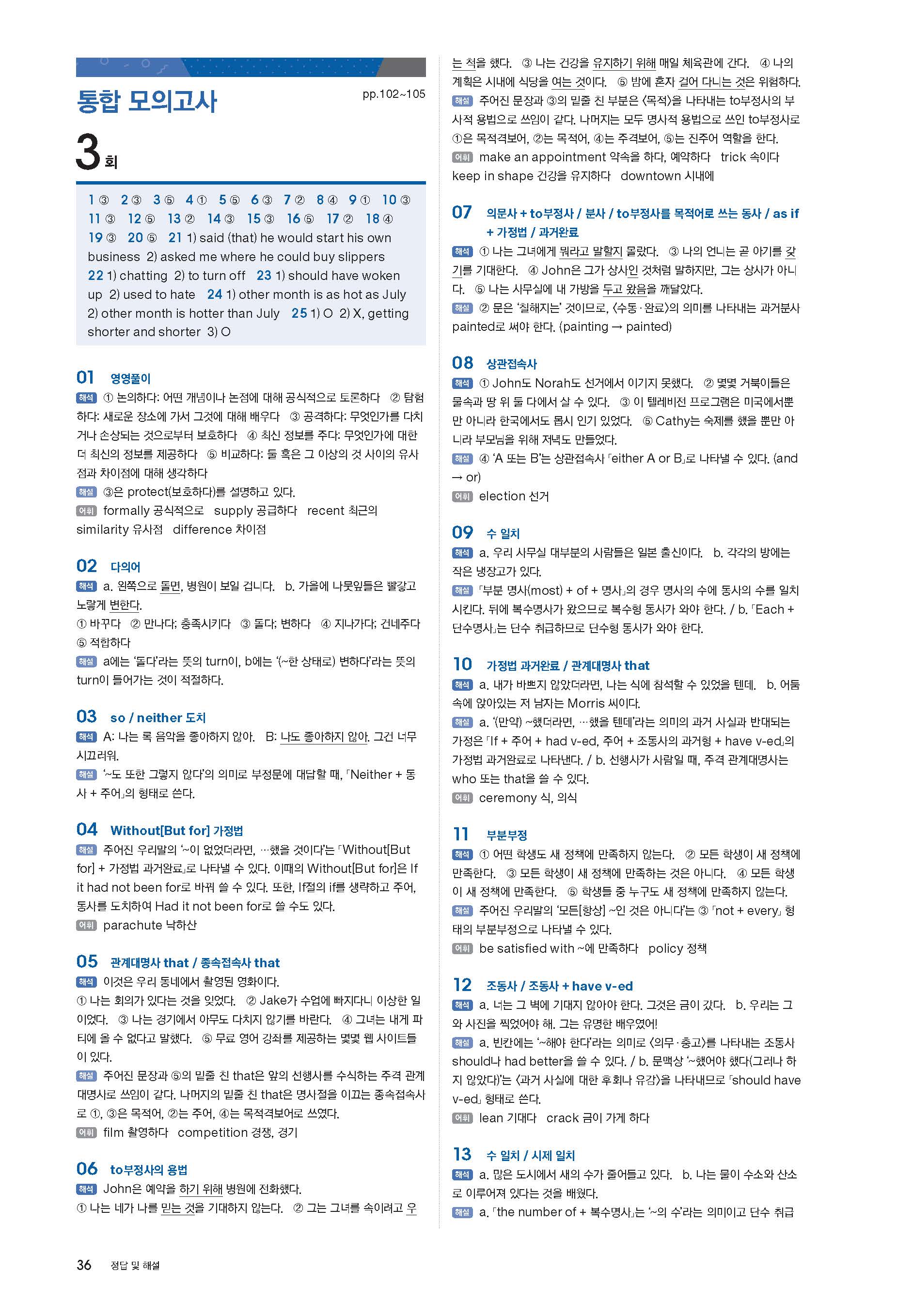 중학문법 총정리 모의고사 3학년 사진답지 빠른답지 모바일최적화