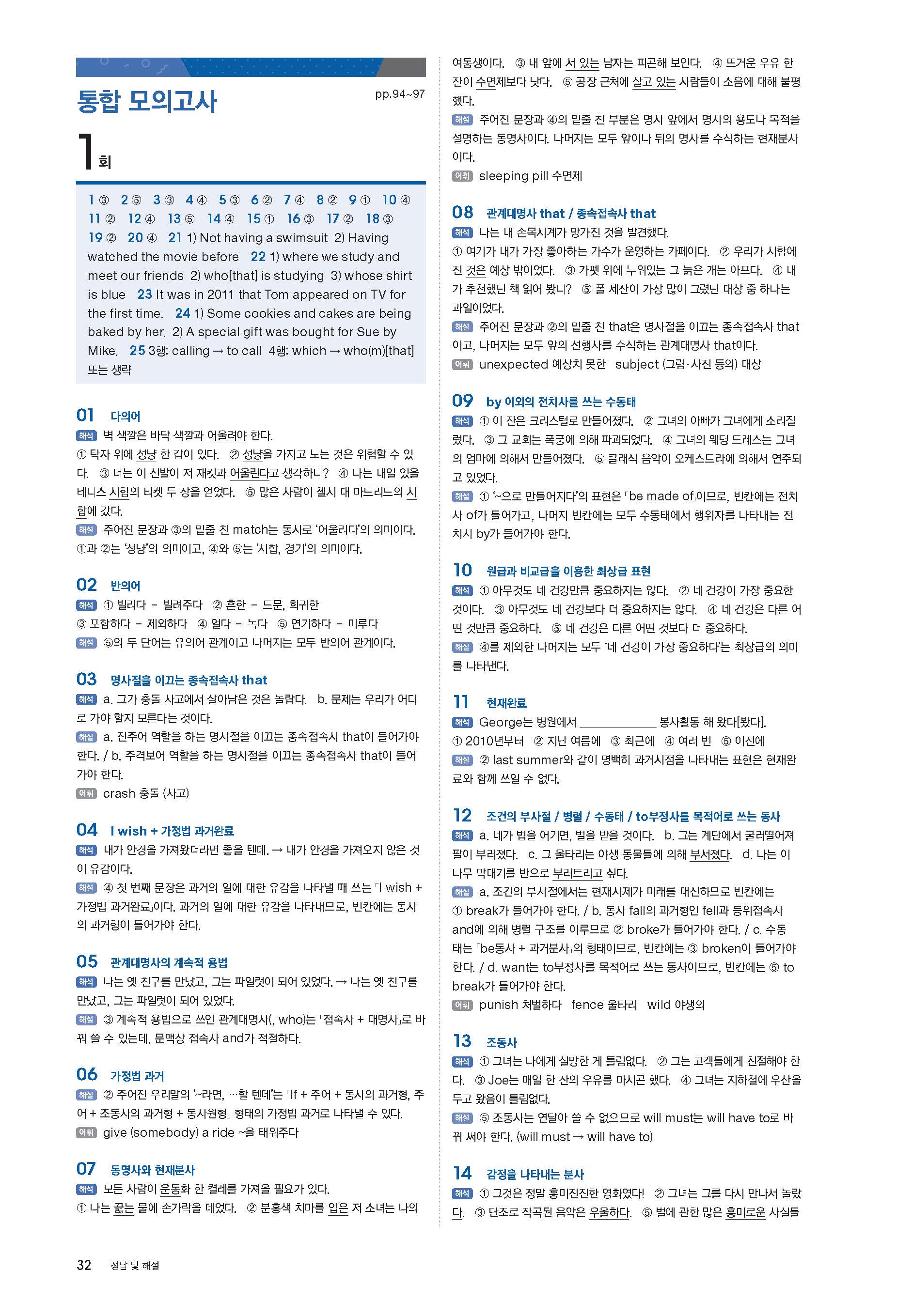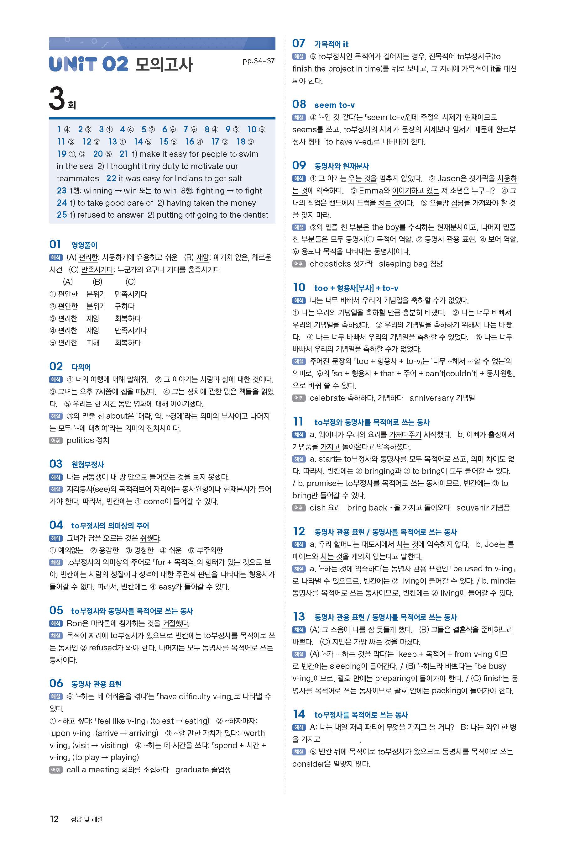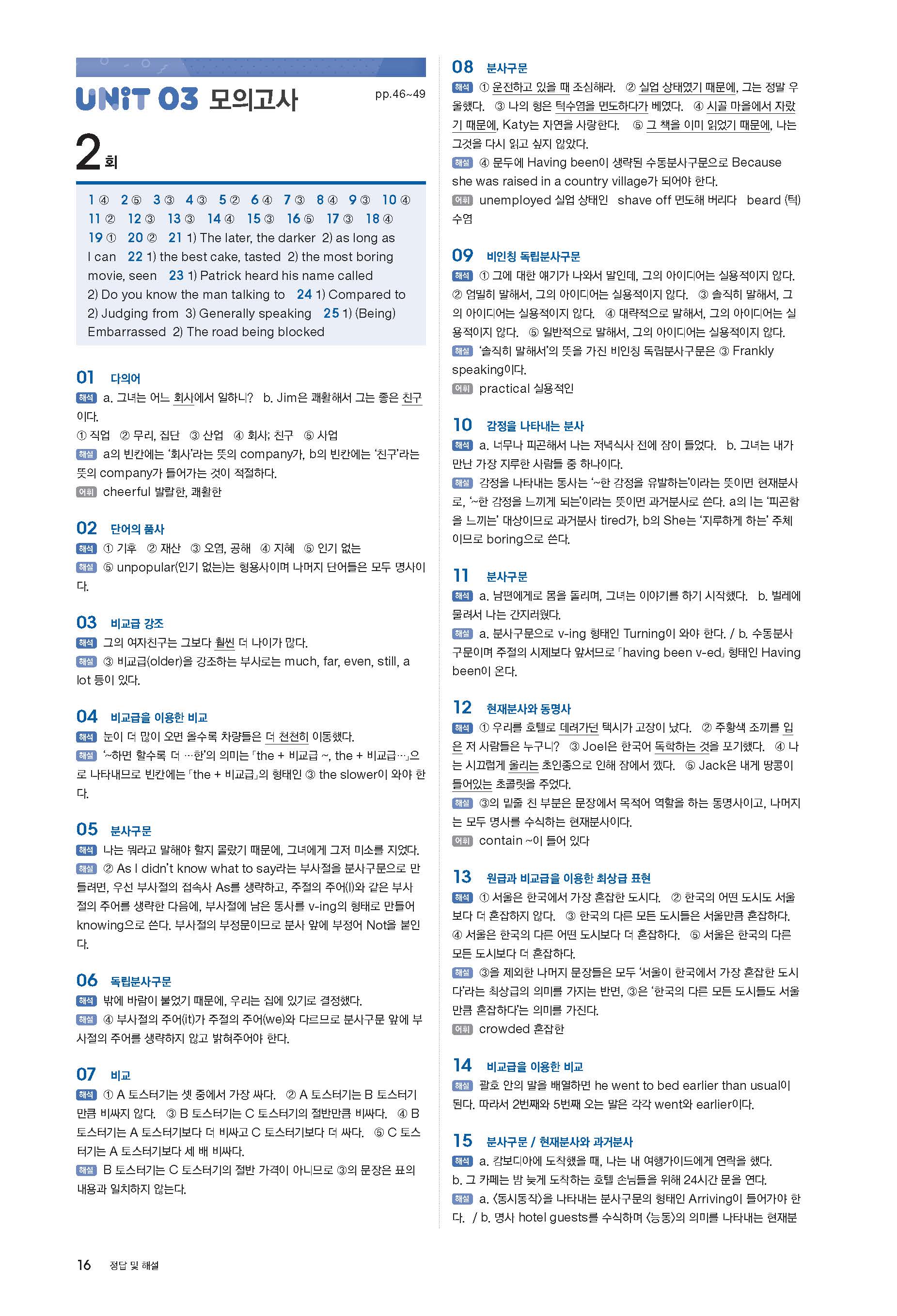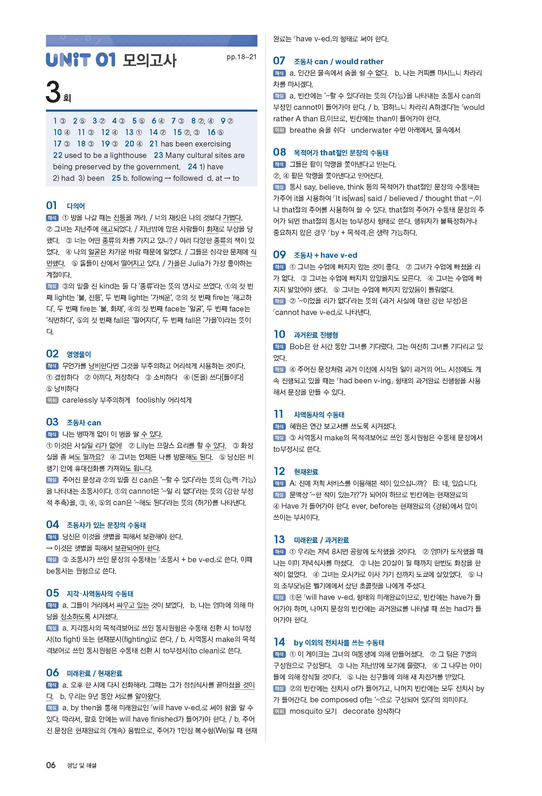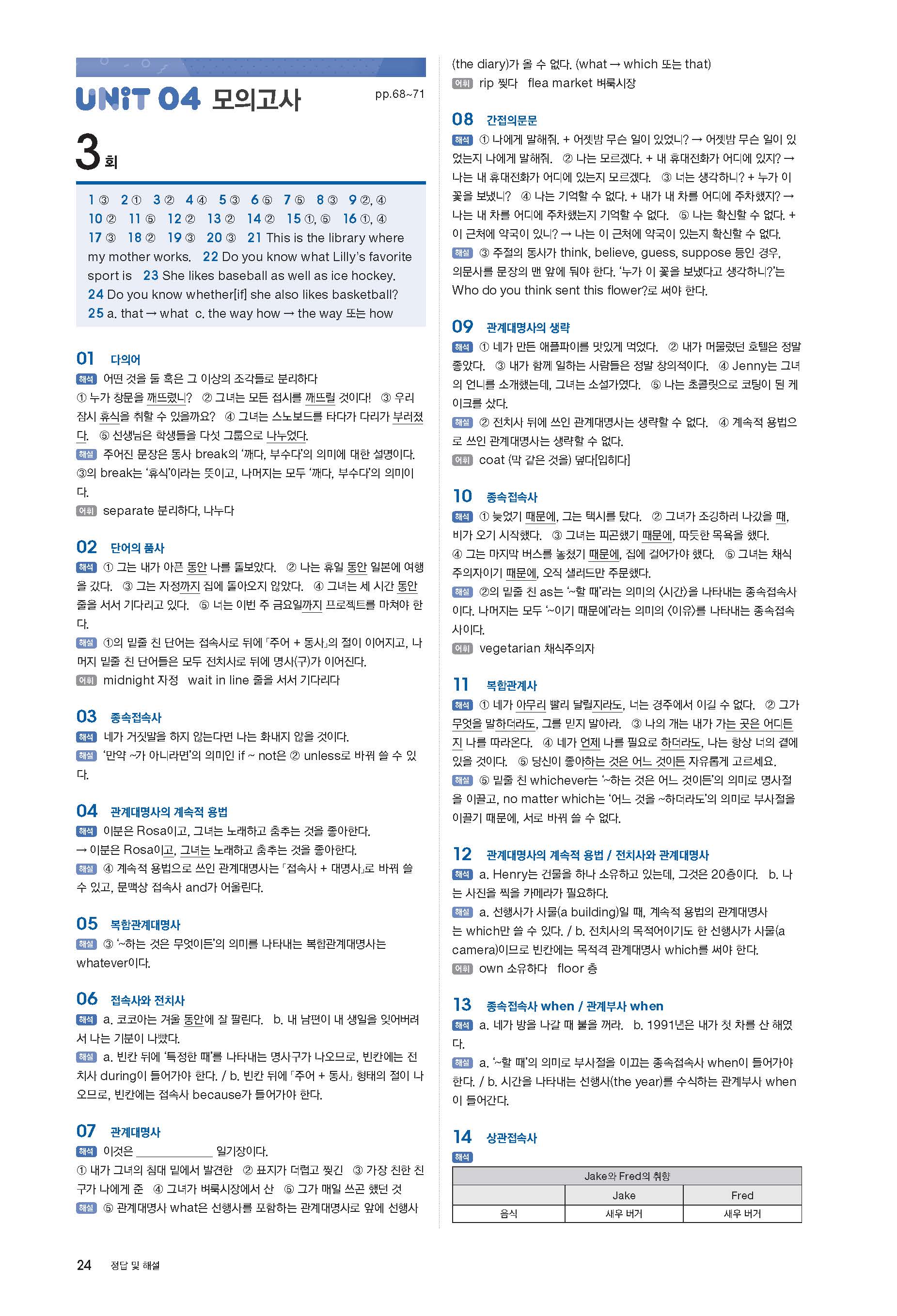 중학문법 총정리 모의고사 3학년 사진답지 빠른답지 모바일최적화