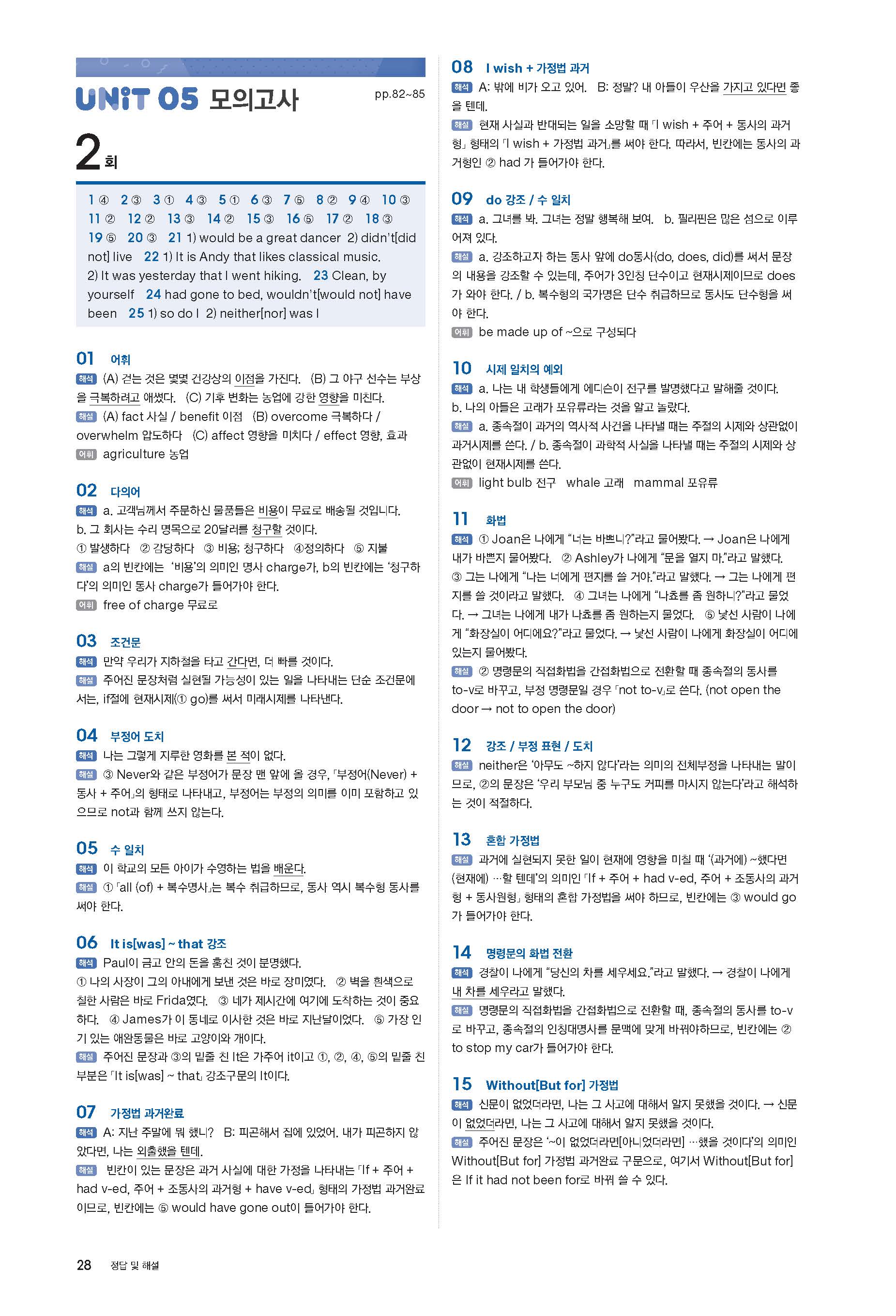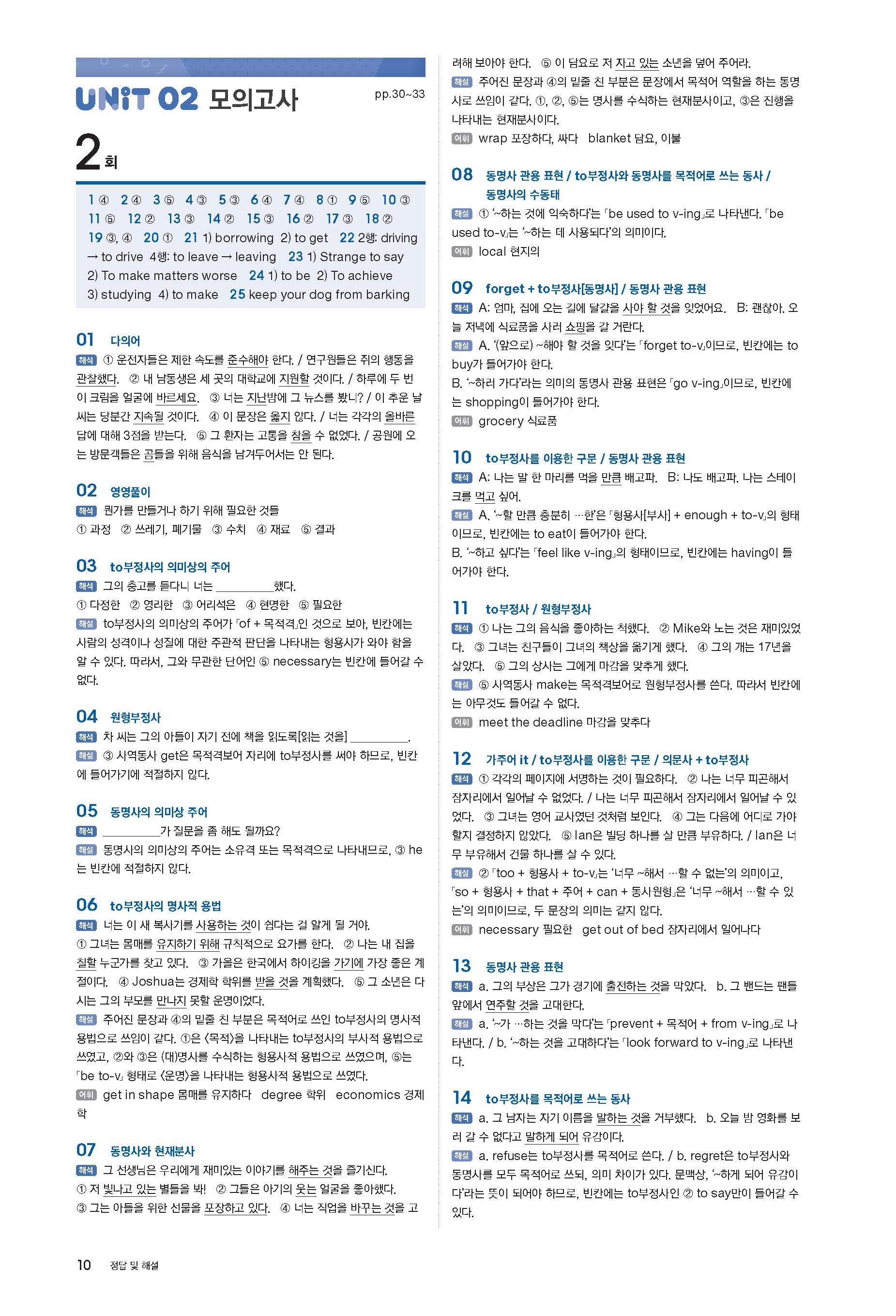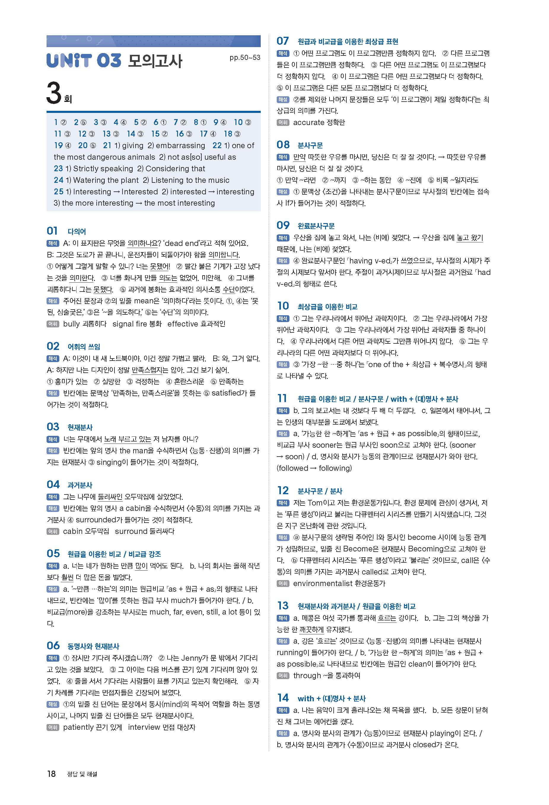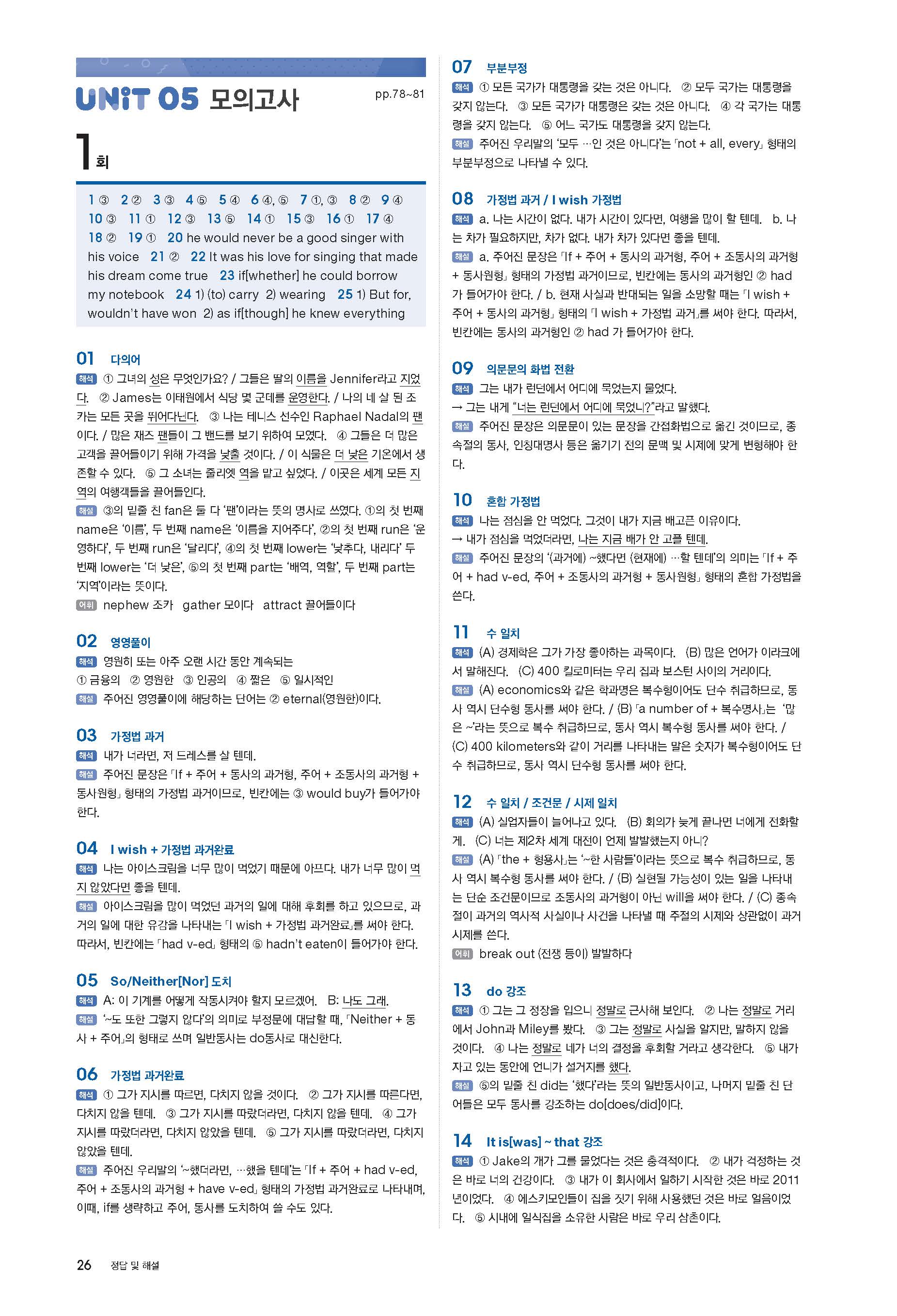 중학문법 총정리 모의고사 3학년 사진답지 빠른답지 모바일최적화