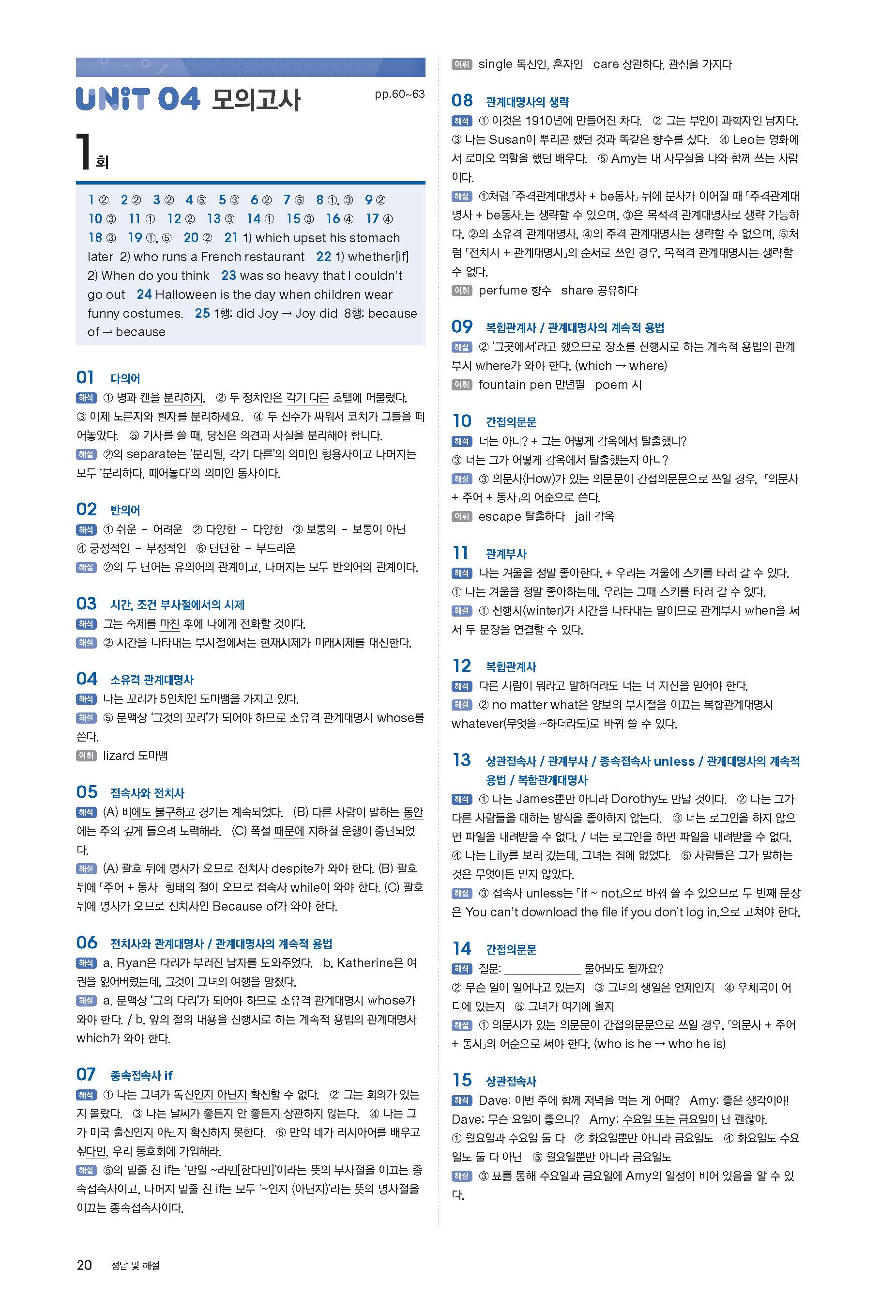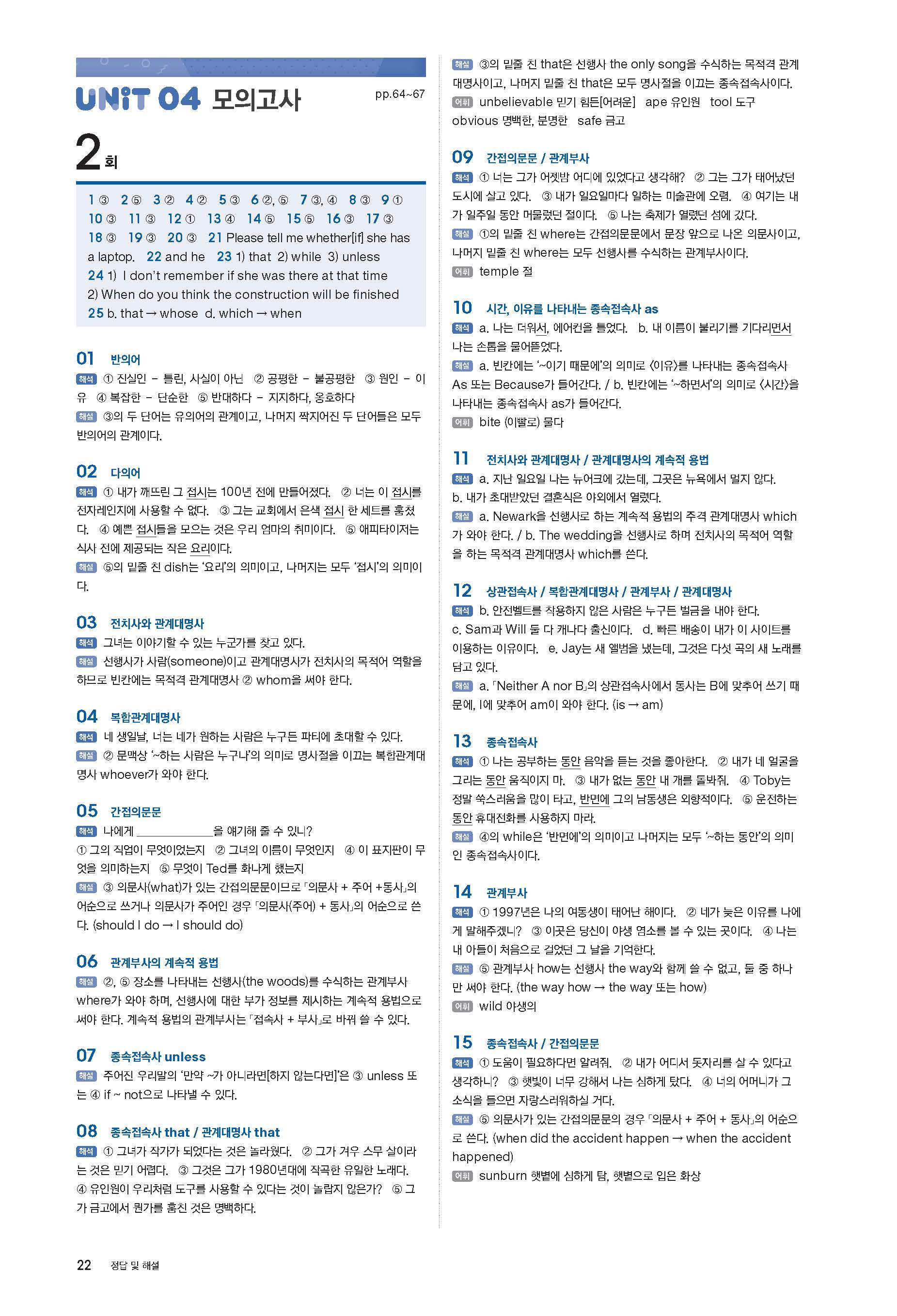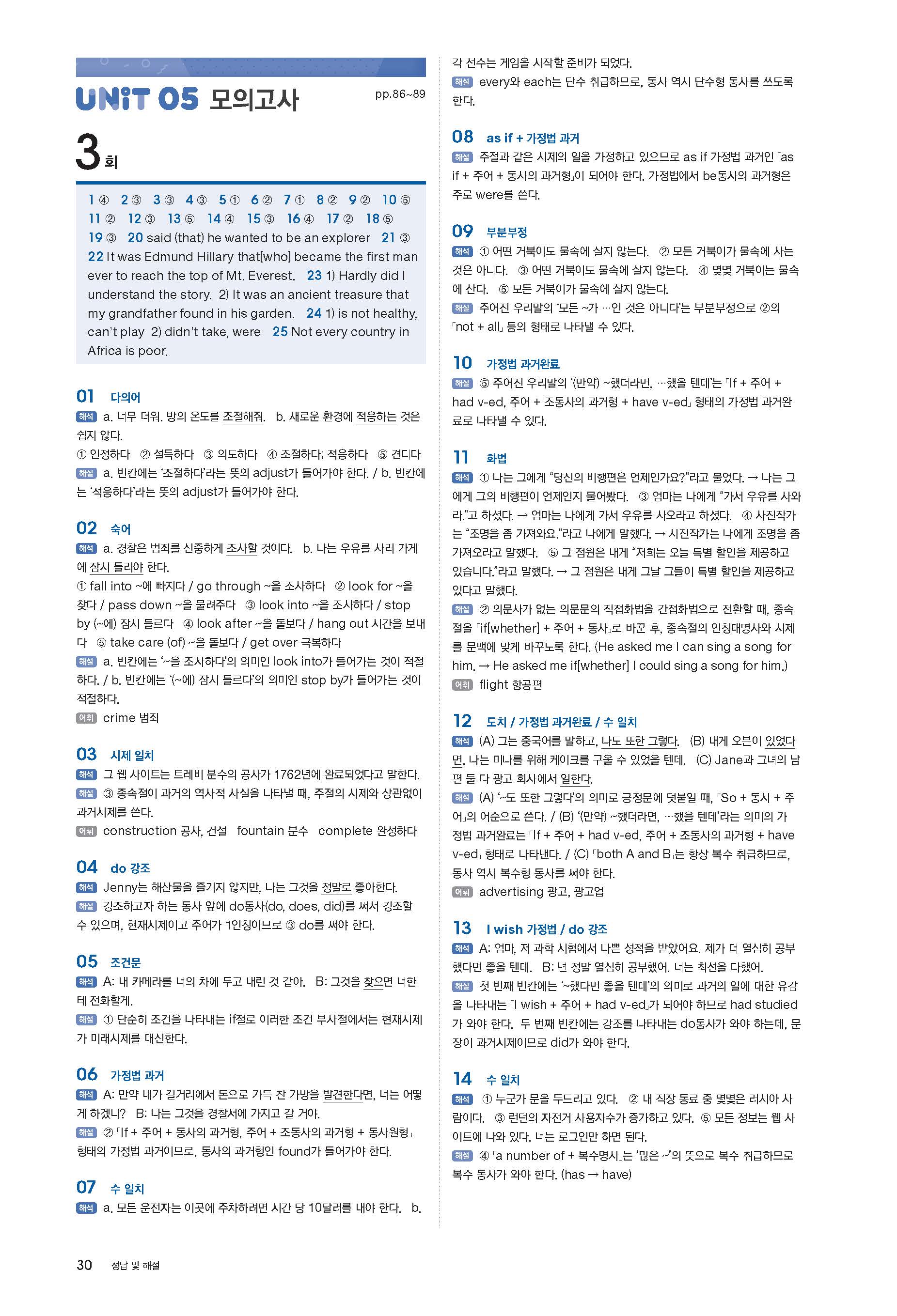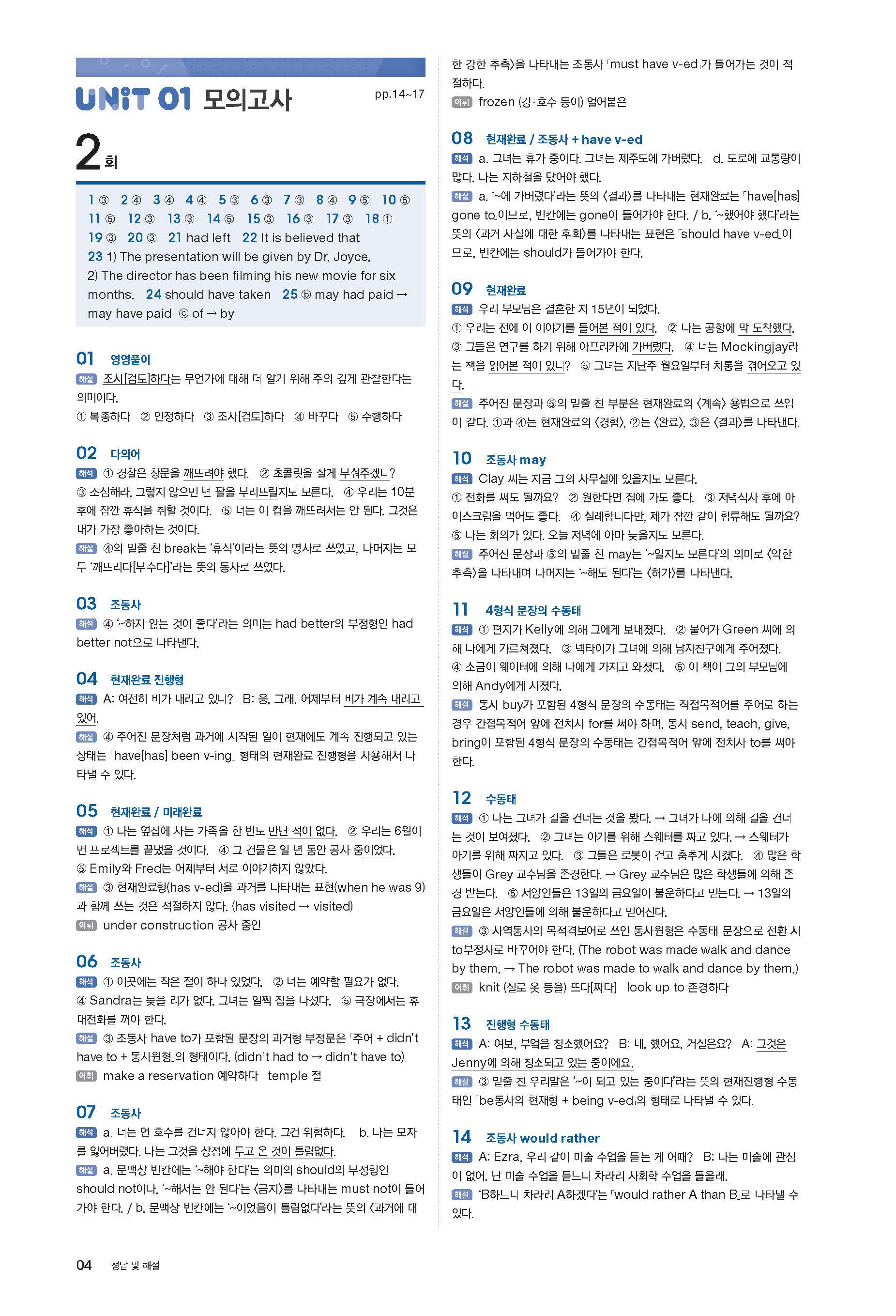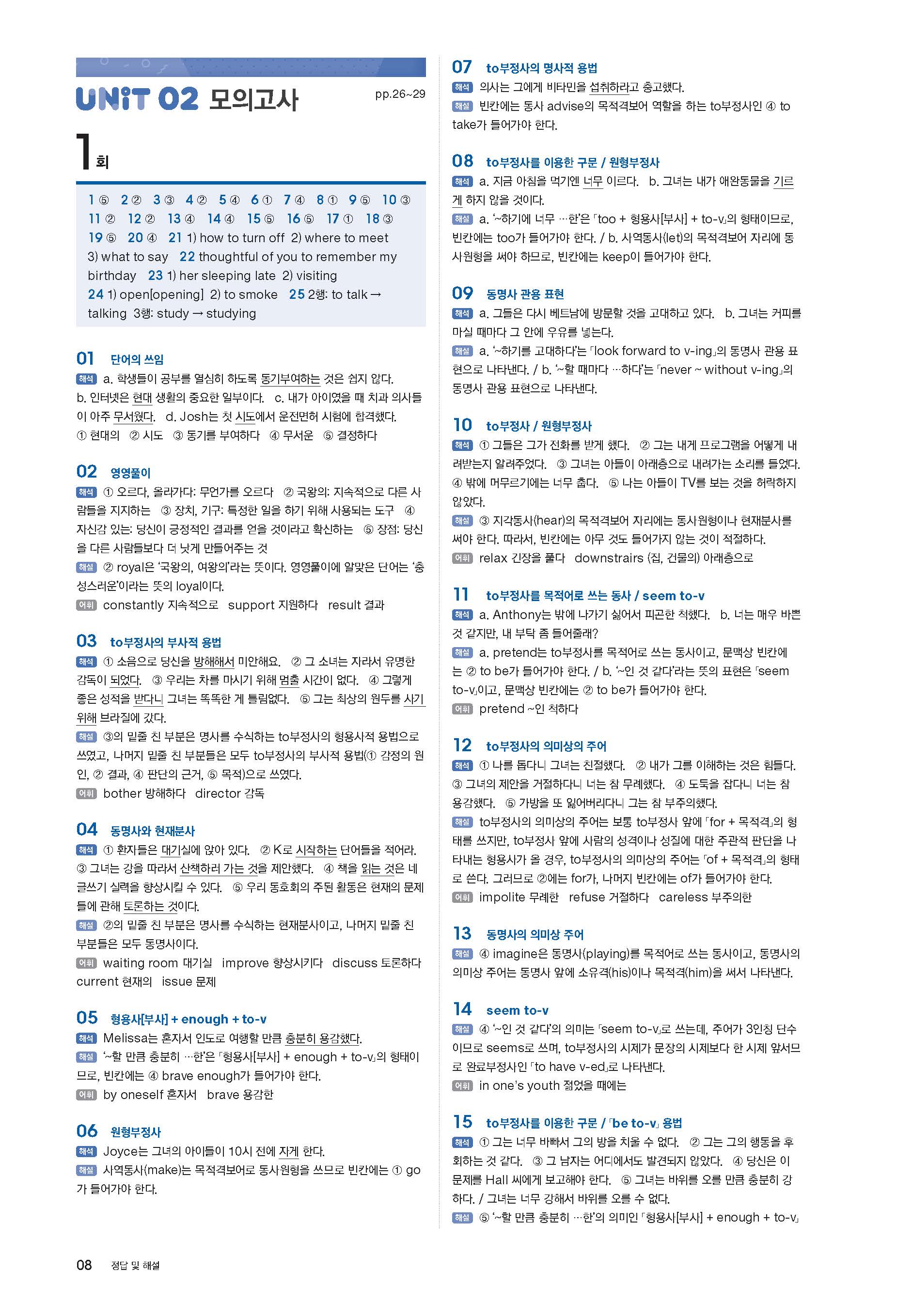 중학문법 총정리 모의고사 3학년 사진답지 빠른답지 모바일최적화