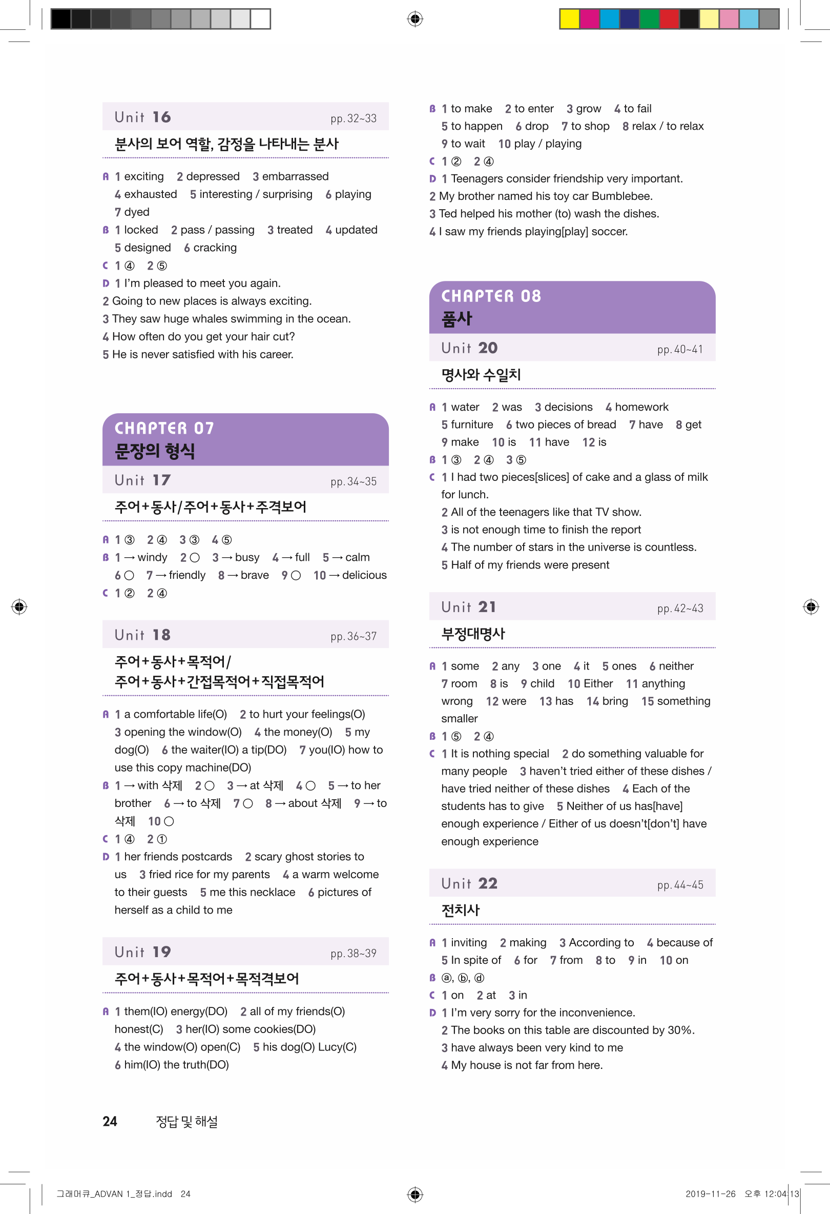 📌 세듀 그래머큐 어드밴스1 빠른답지 PDF 다운로드