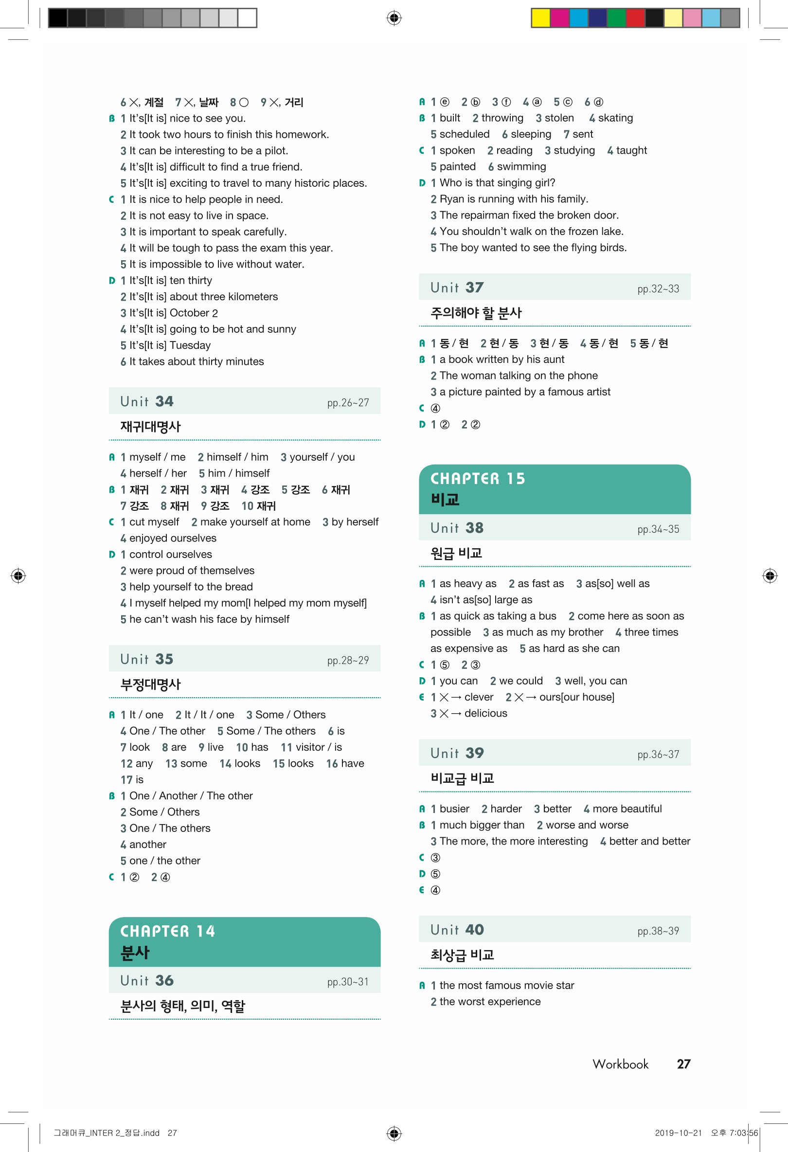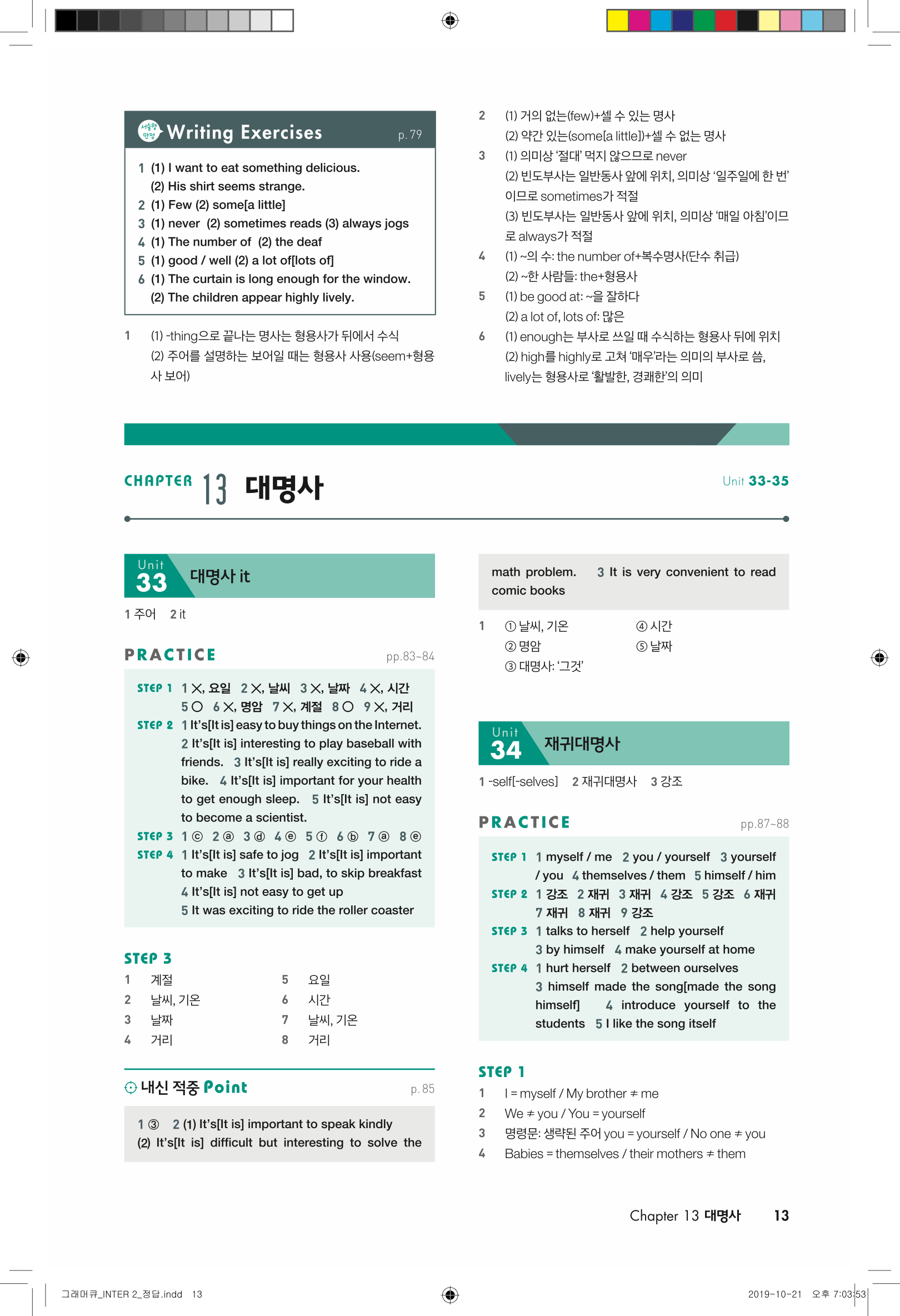 📢 세듀 그래머큐 인터2 답지 해설 풀이 빠른답지 PDF 다운로드