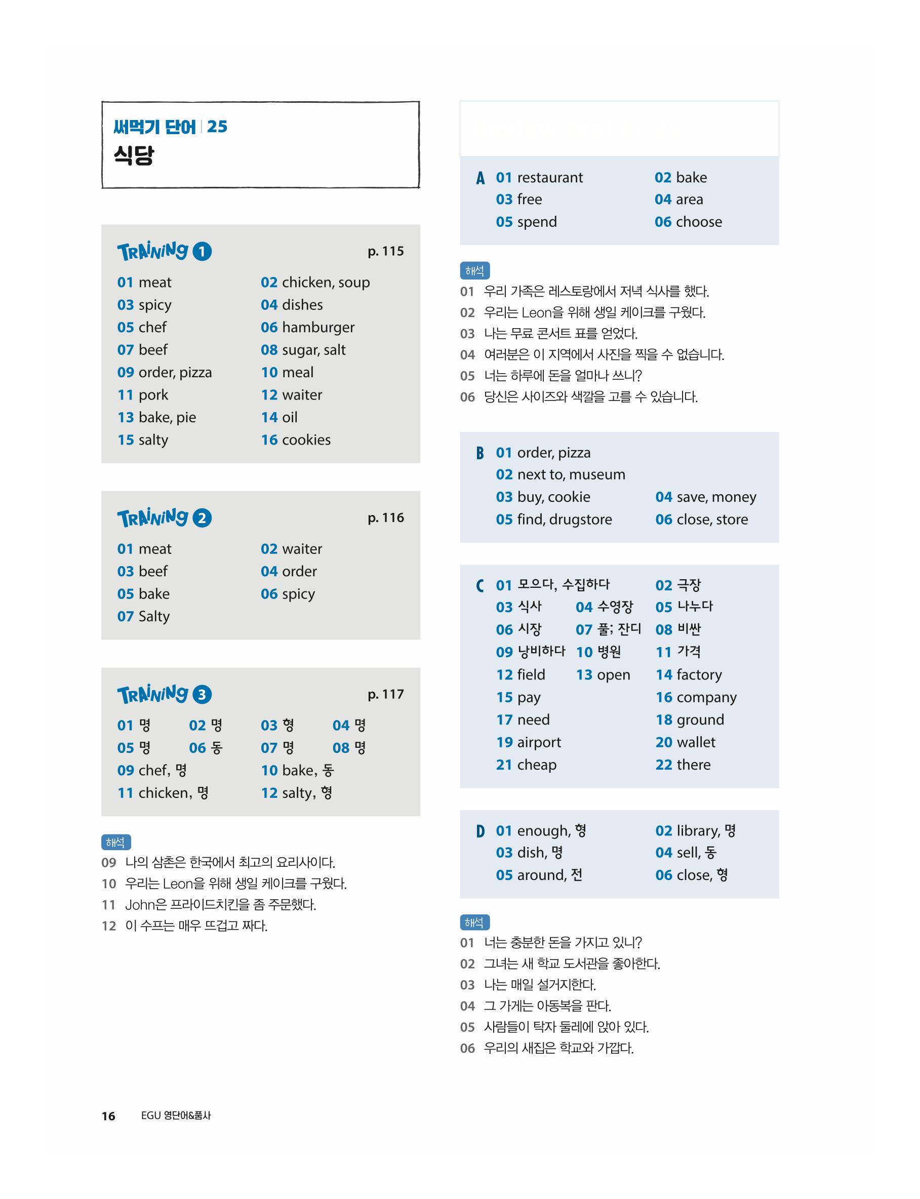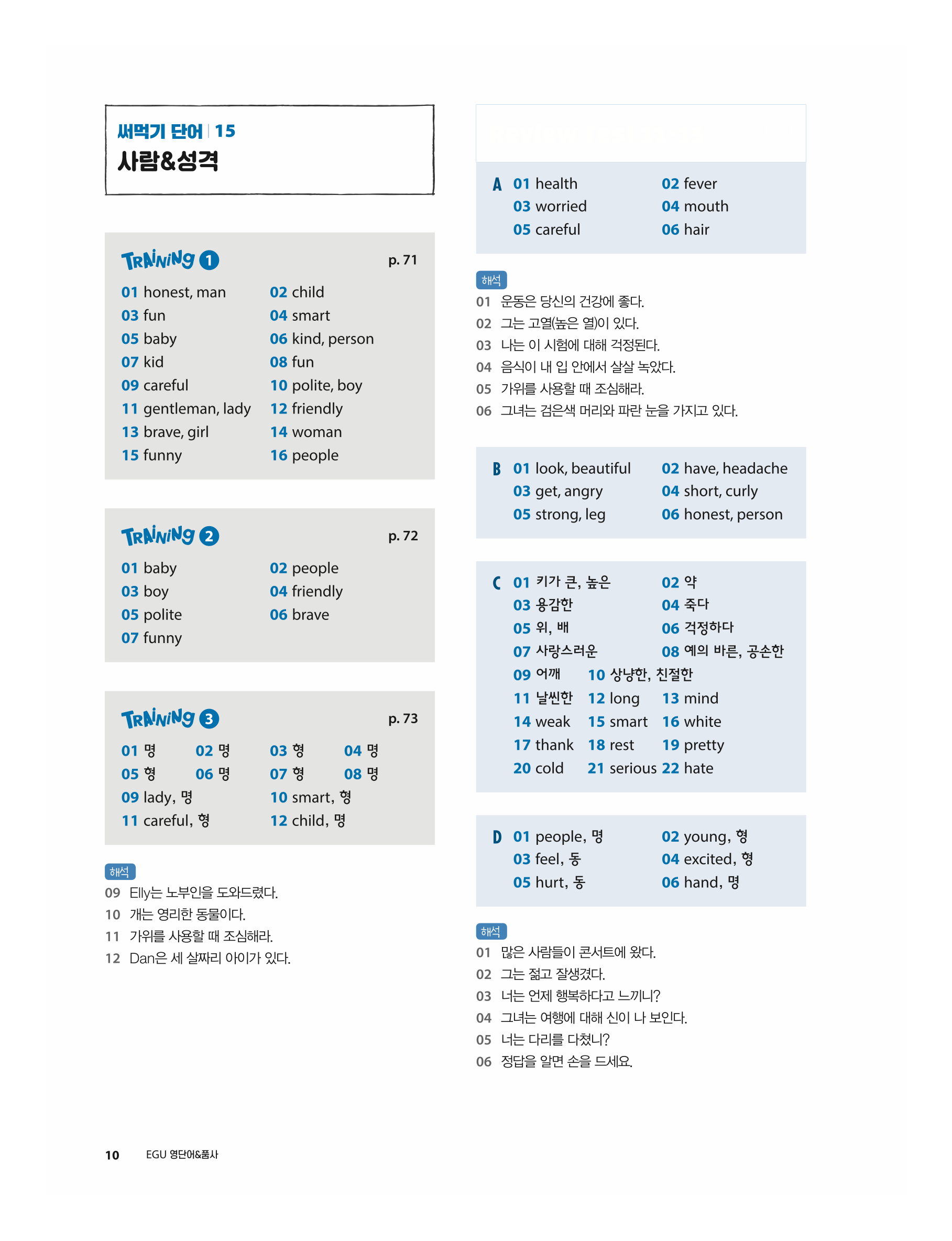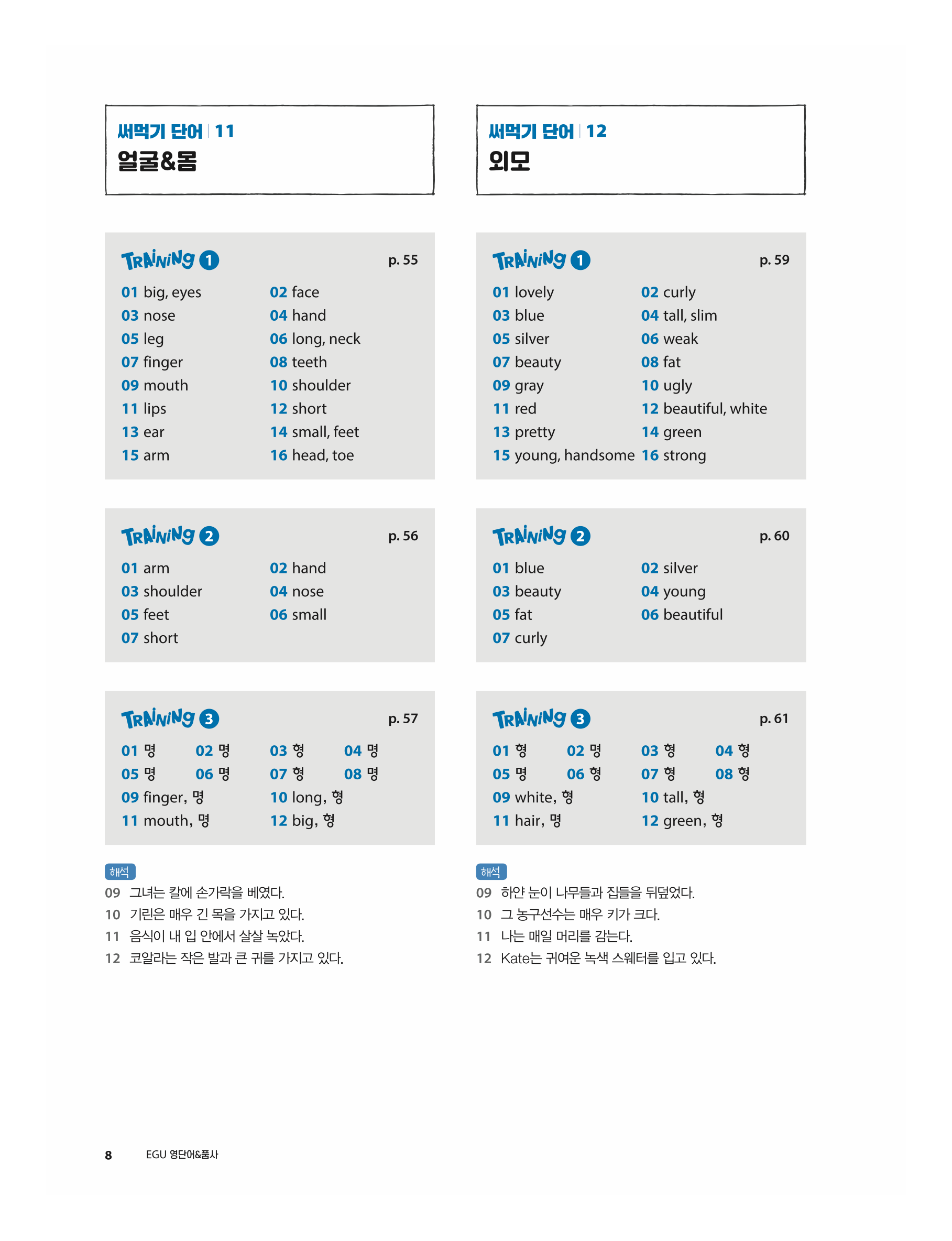 📢 세듀 EGU 구문써먹기1 영단어품사 답지 해설 풀이 빠른답지 PDF 다운로드