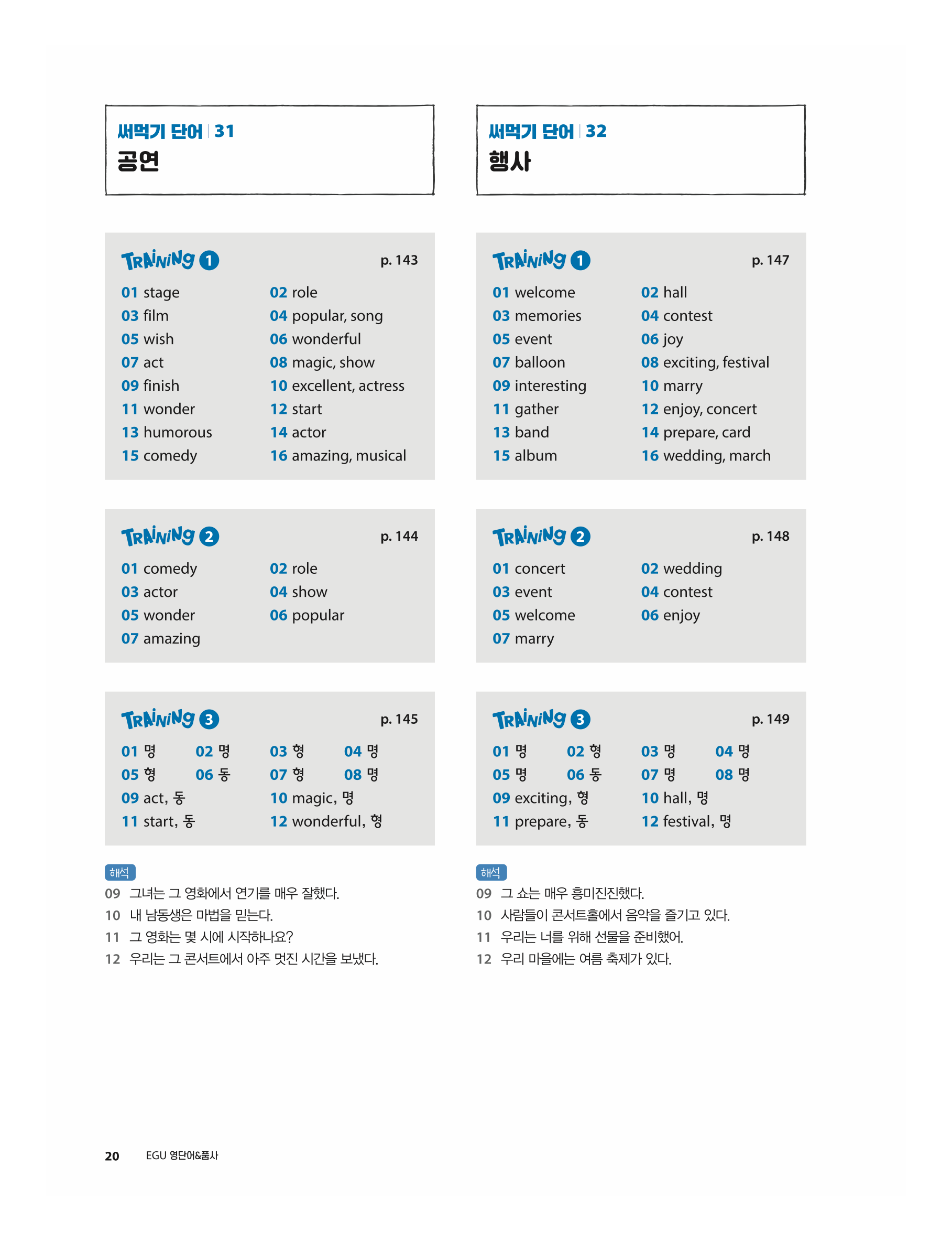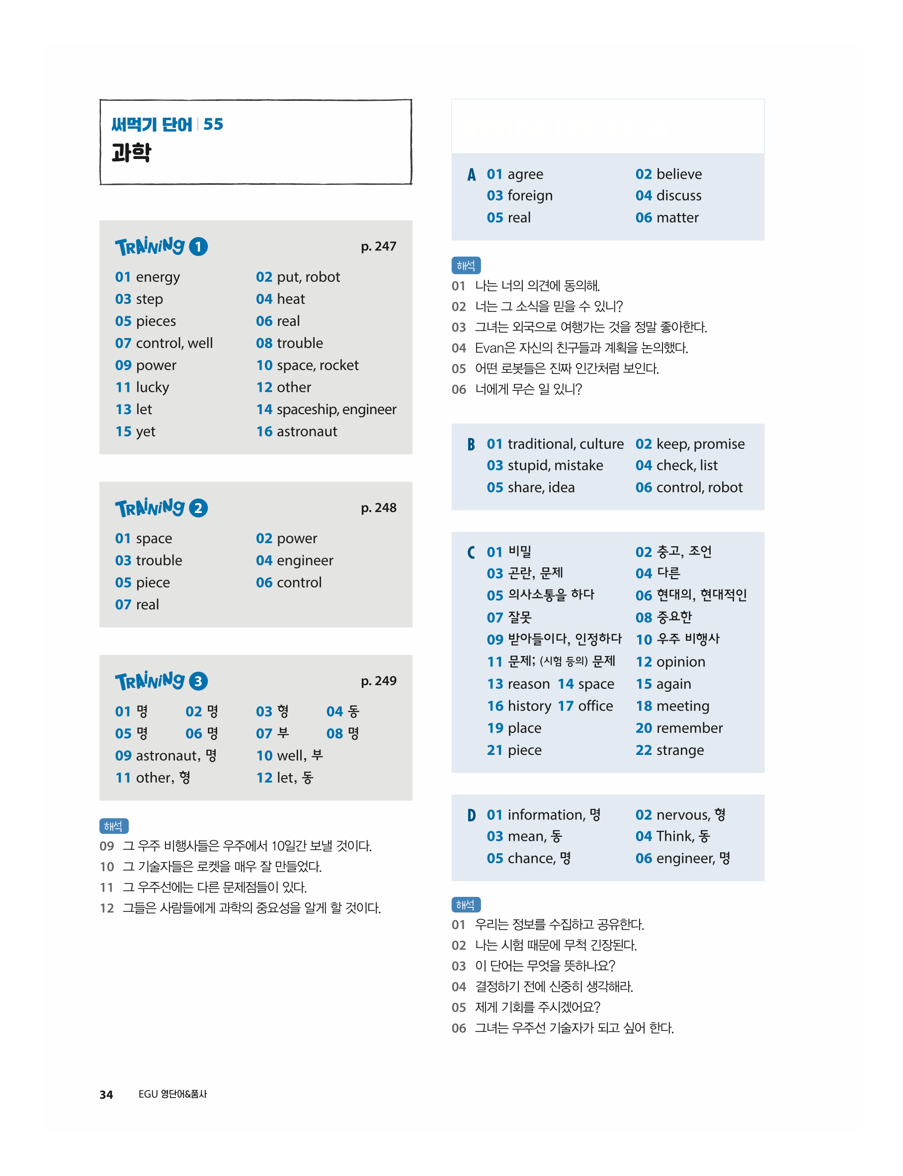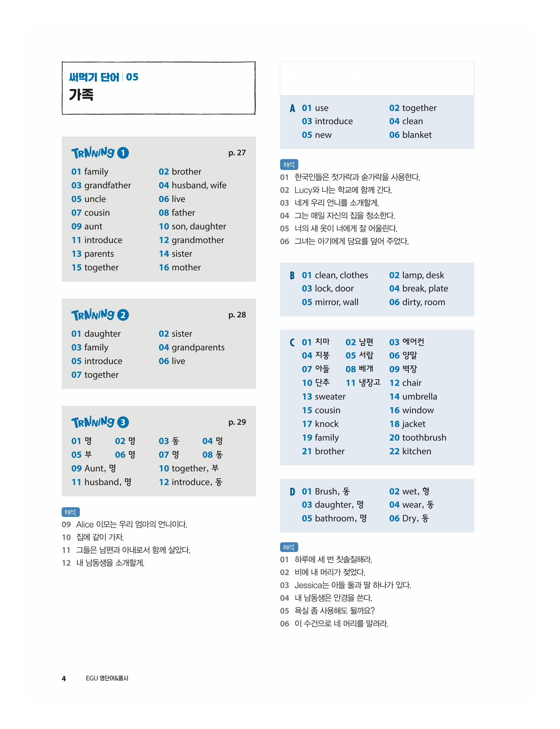 📢 세듀 EGU 구문써먹기1 영단어품사 답지 해설 풀이 빠른답지 PDF 다운로드