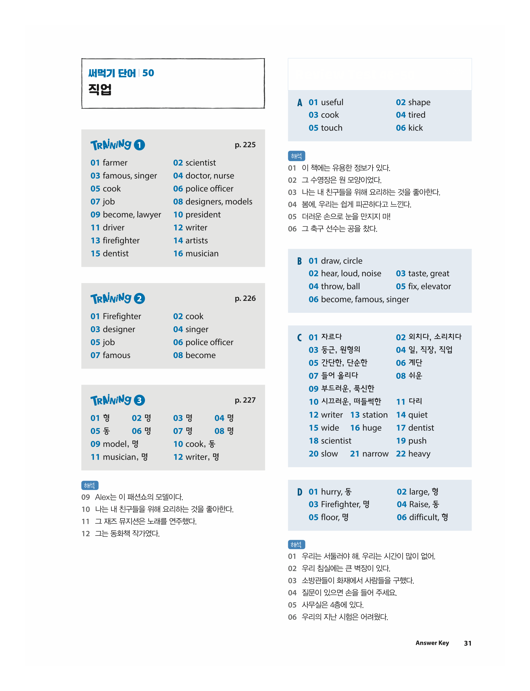 ✔ 문제 유형별 구성 – 문장 완성, 빈칸 채우기, 어법 문제 등 다양한 문제 제공