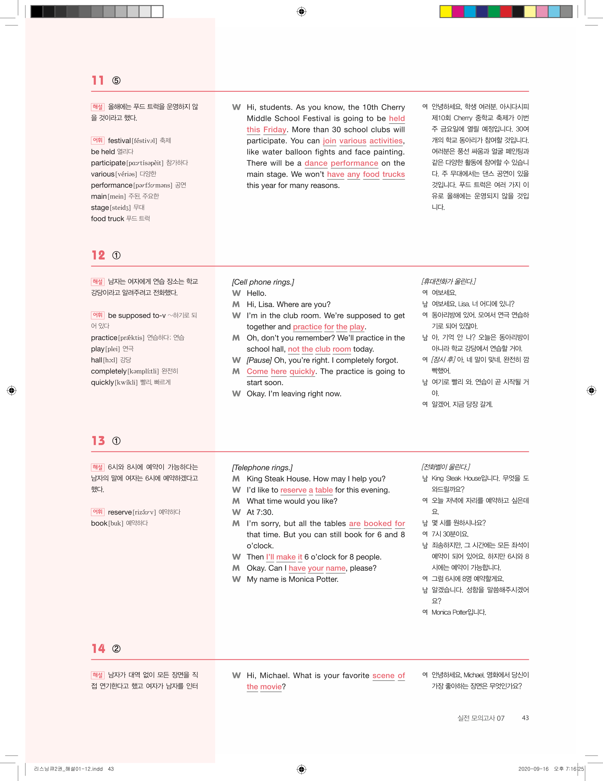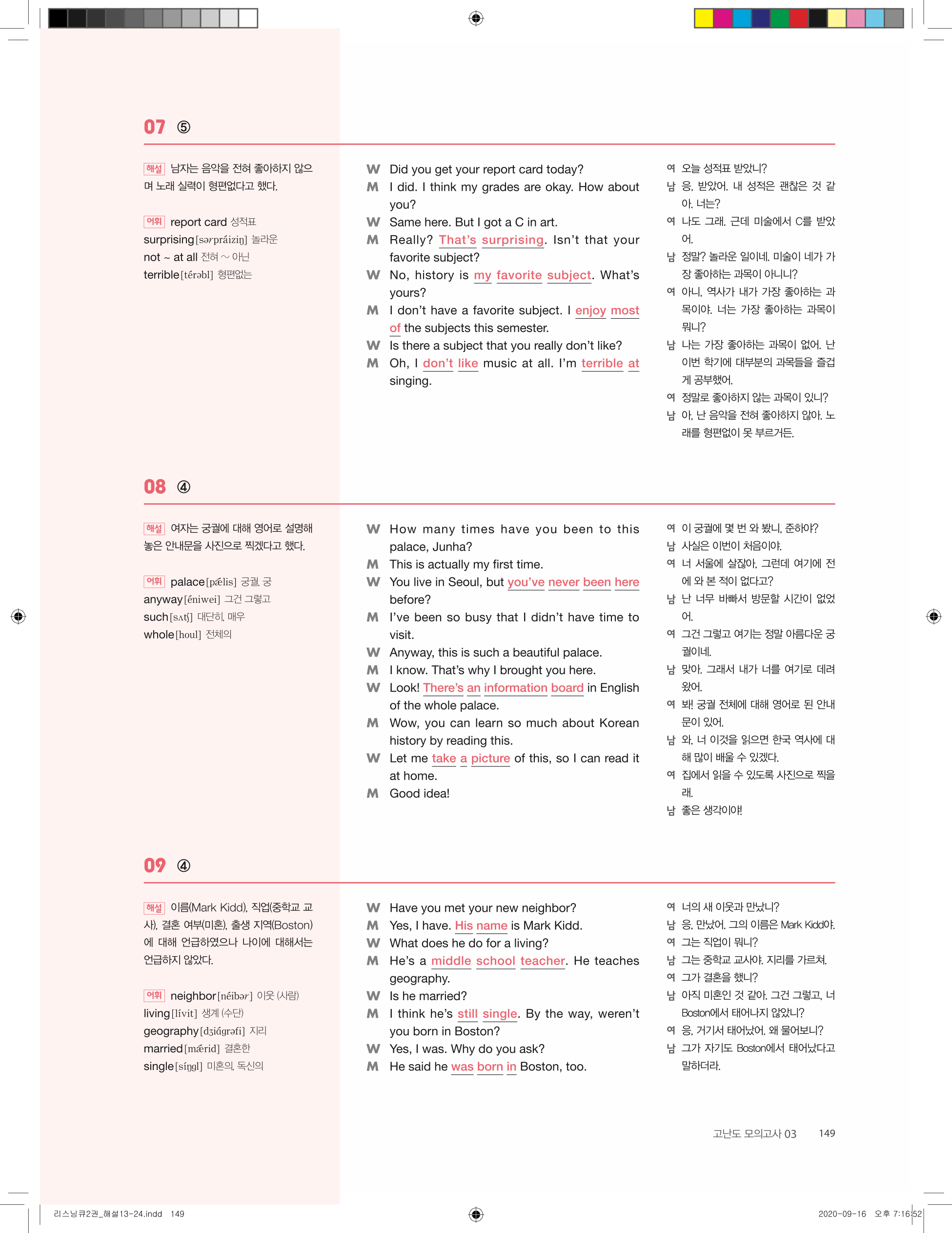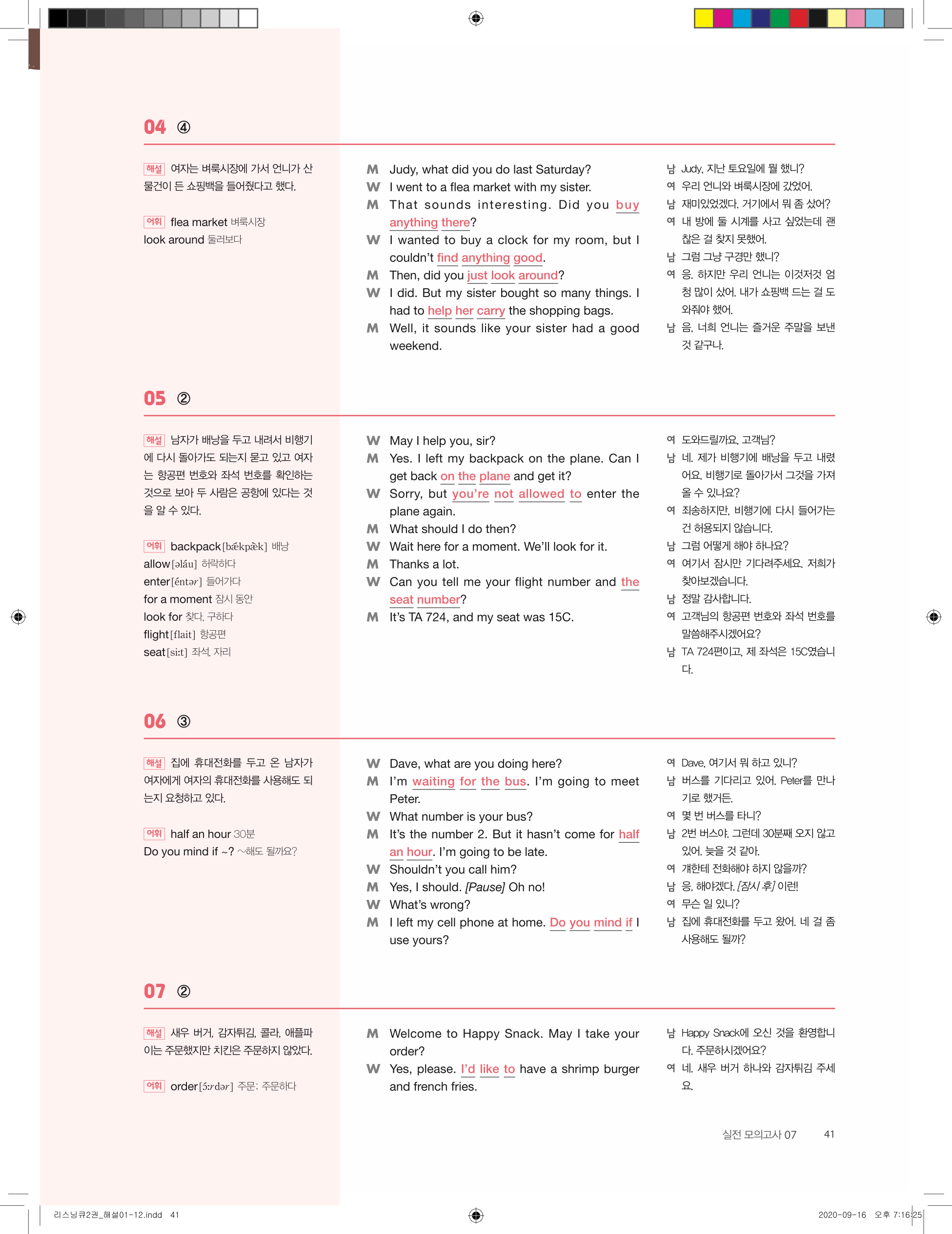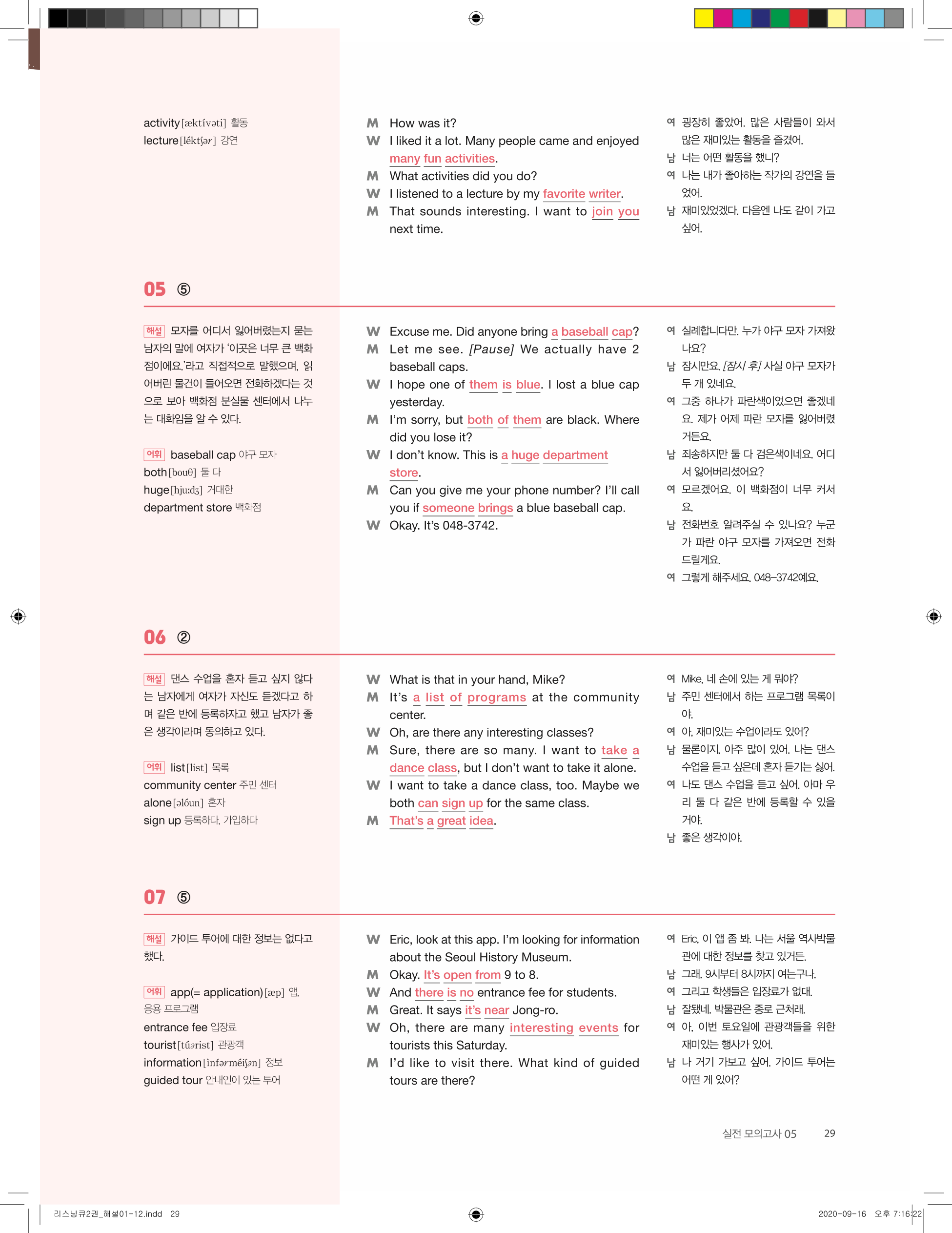 ✔ 문제 유형별 구성 – 핵심 정보 파악, 빈칸 채우기, 대화 이해 등 다양한 문제 수록