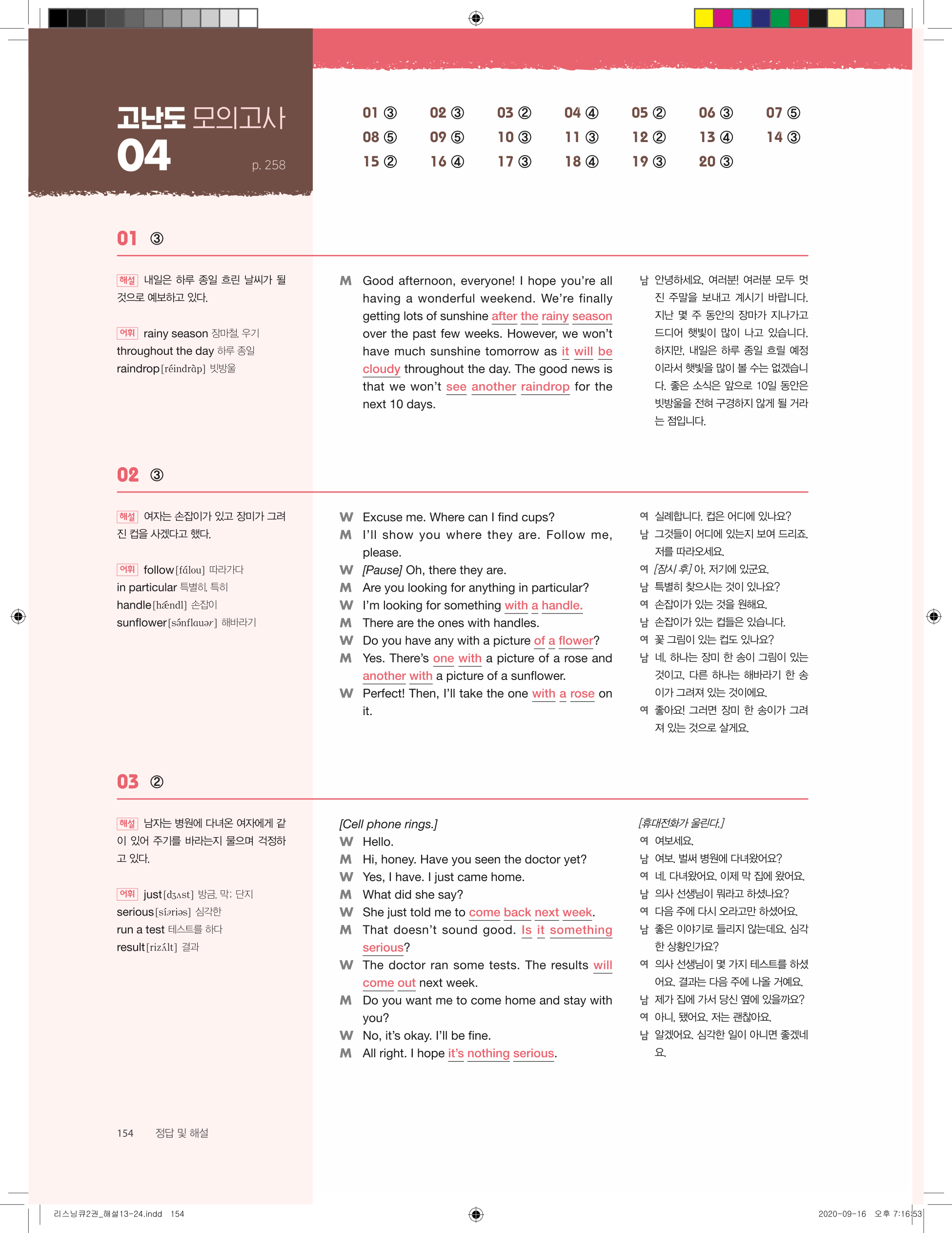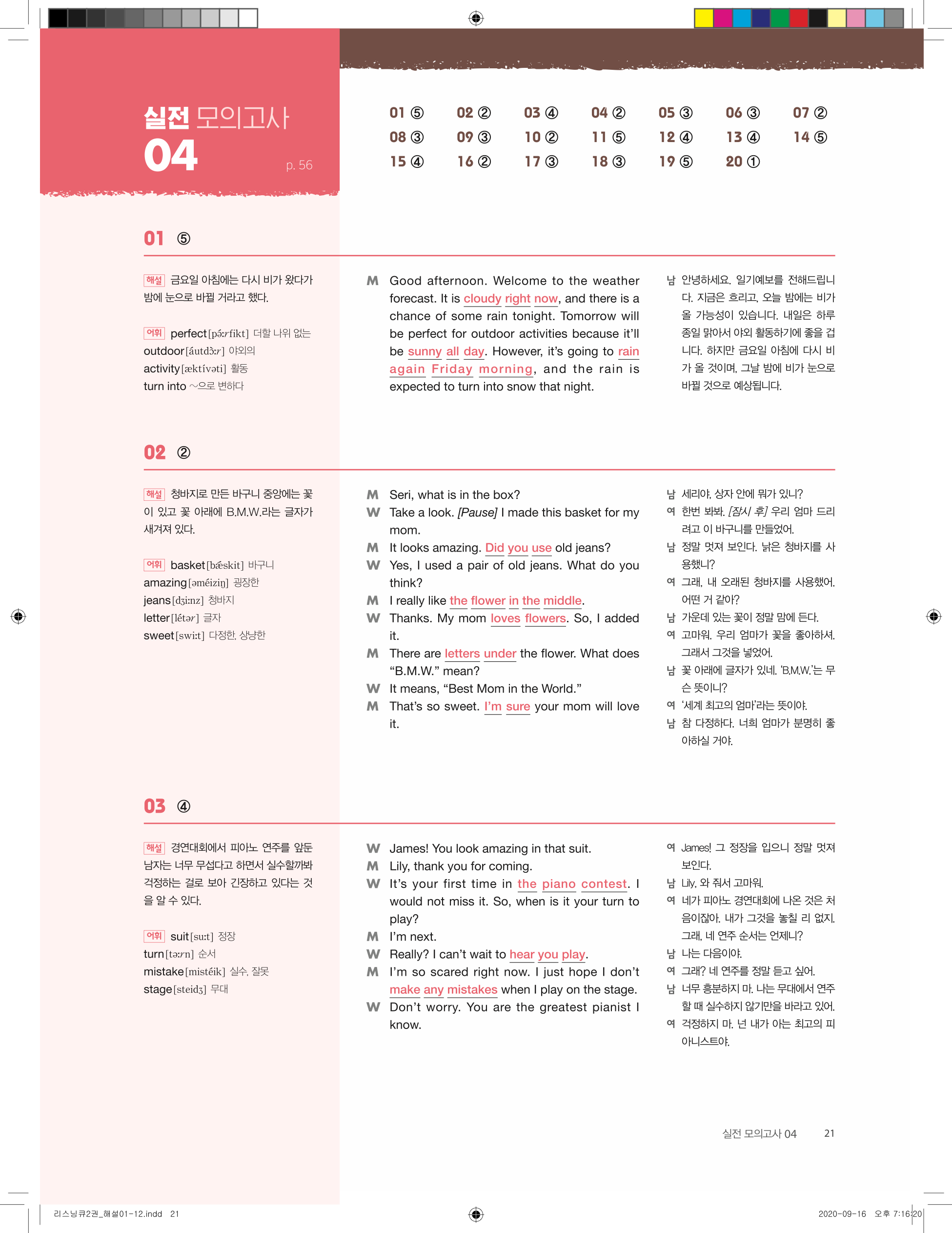 세듀 리스닝큐2 중학영어듣기 모의고사 24회 빠른답지 PDF는 빠르게 정답을 확인하고, 학습 시간을 효율적으로 관리할 수 있는 필수 자료입니다.